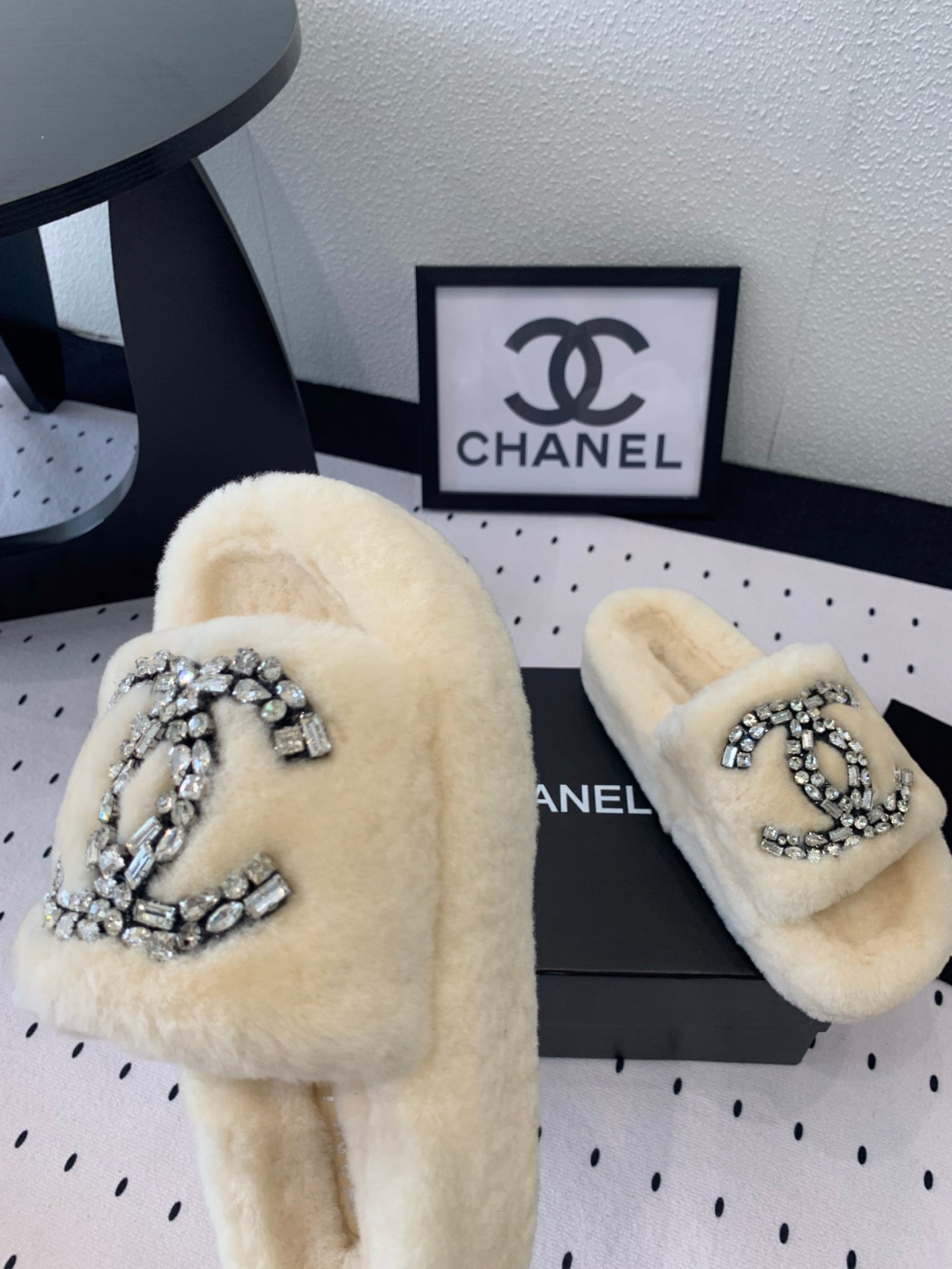 THICK-SOLED SLIPPERS IN WHITE SHEEP WOOL