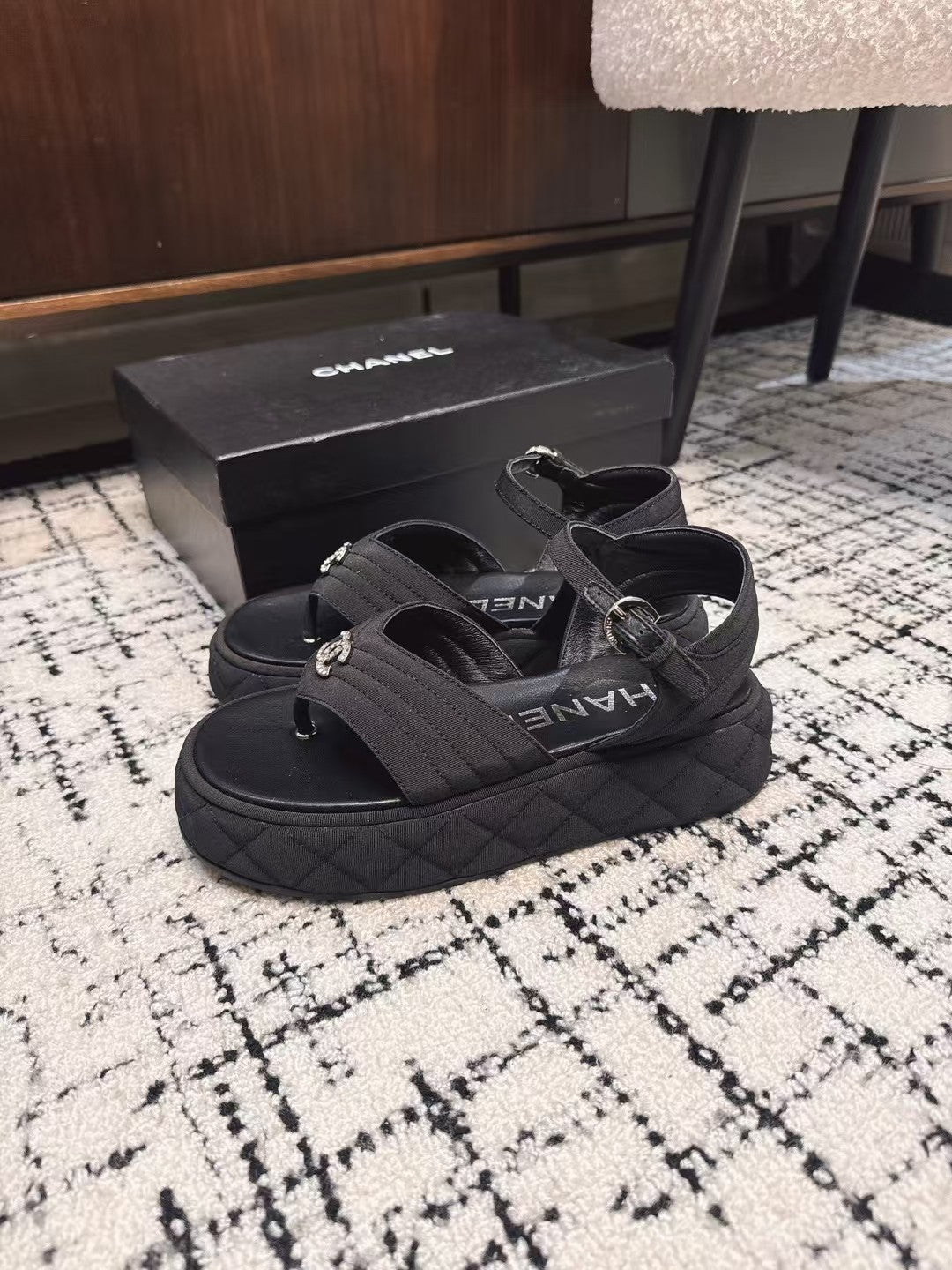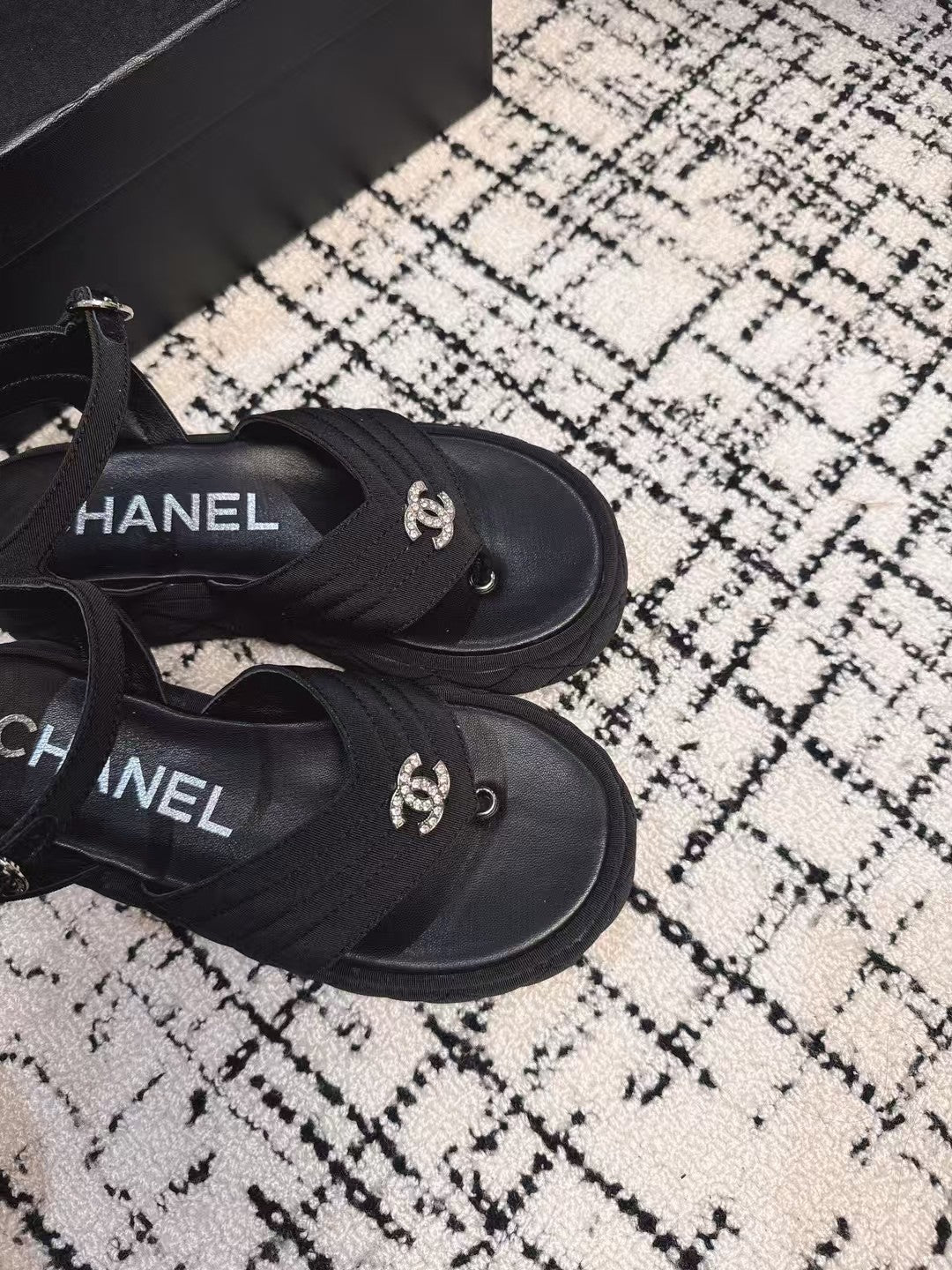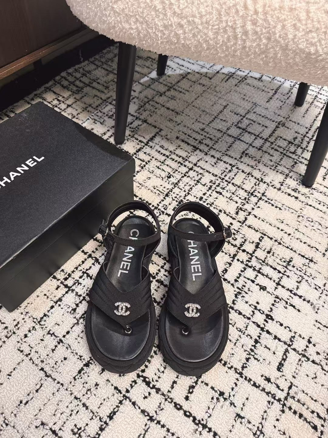 THICK-SOLED THONG SANDAL IN BLACK DENIM