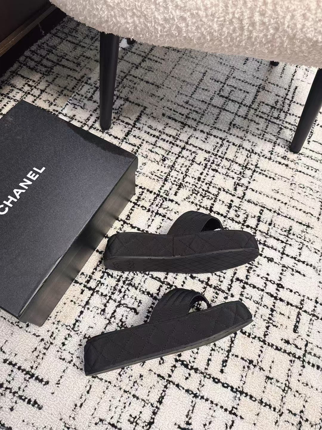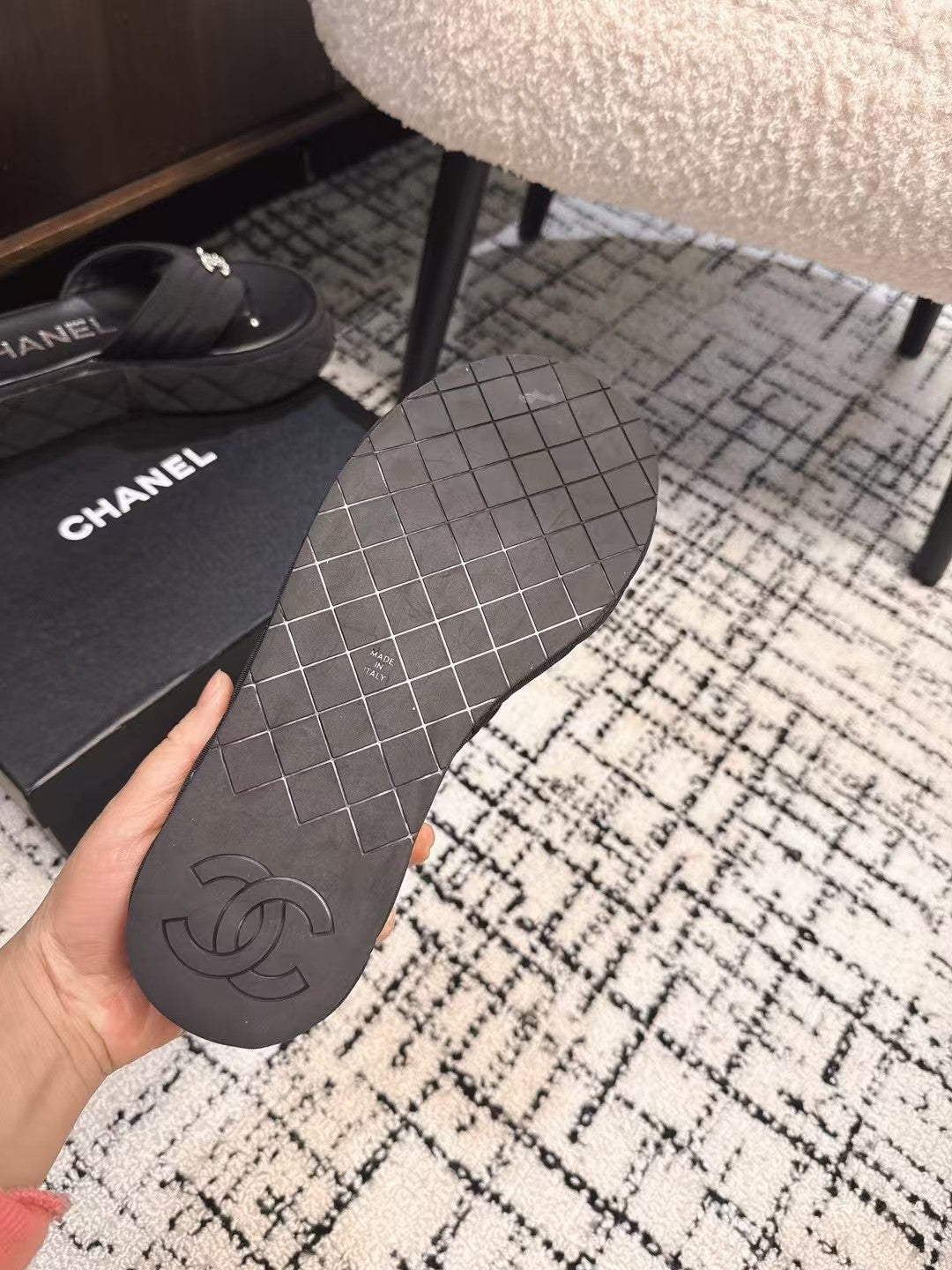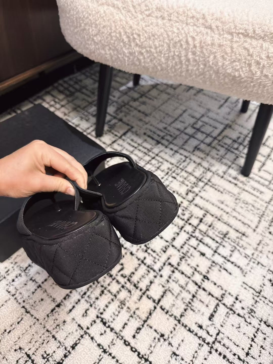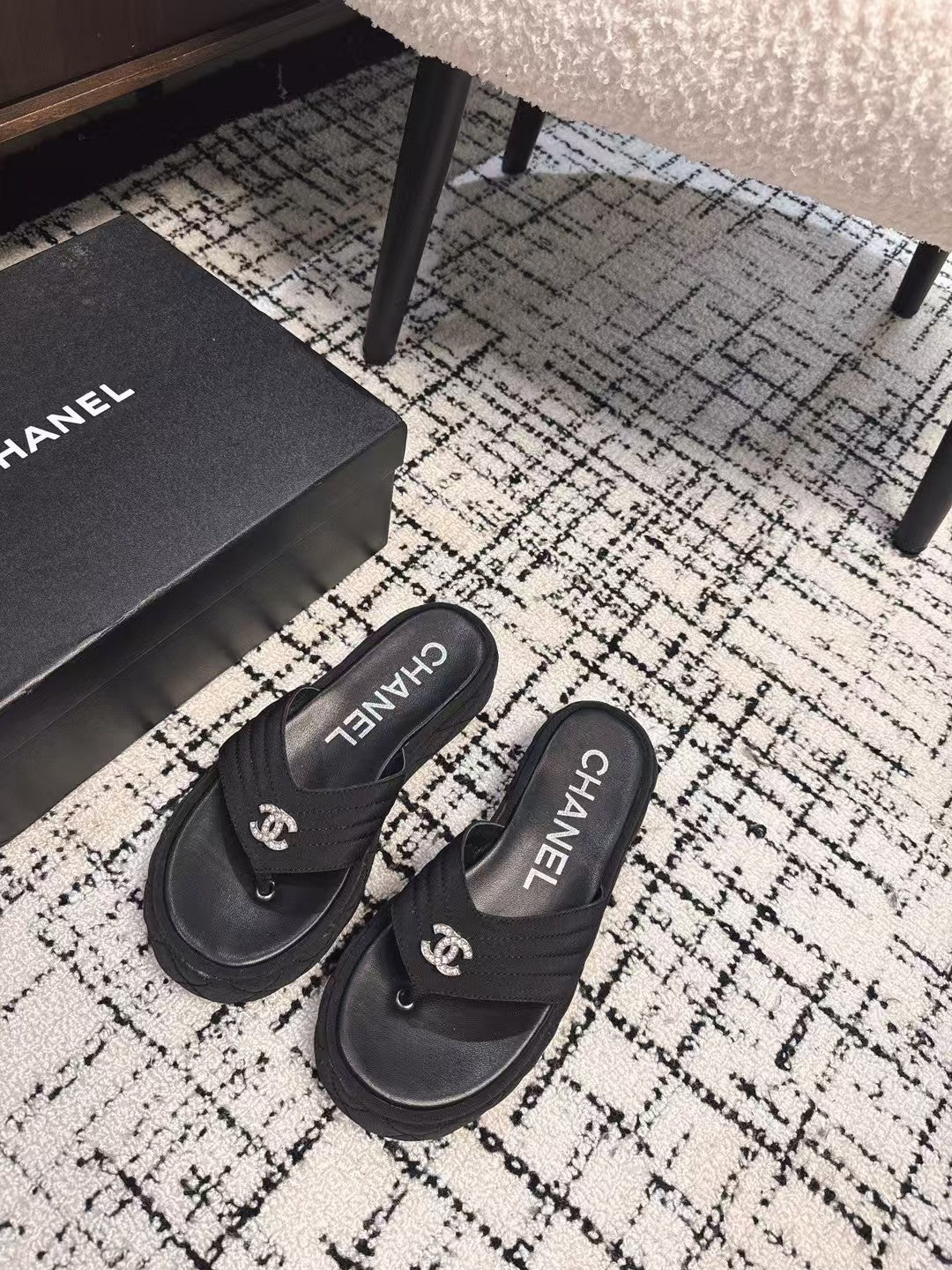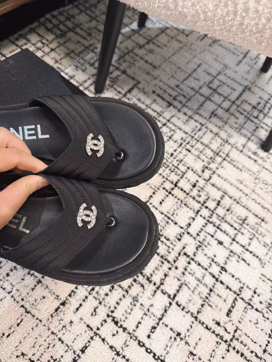 THICK-SOLED THONG SLIPPERS IN BLACK DENIM