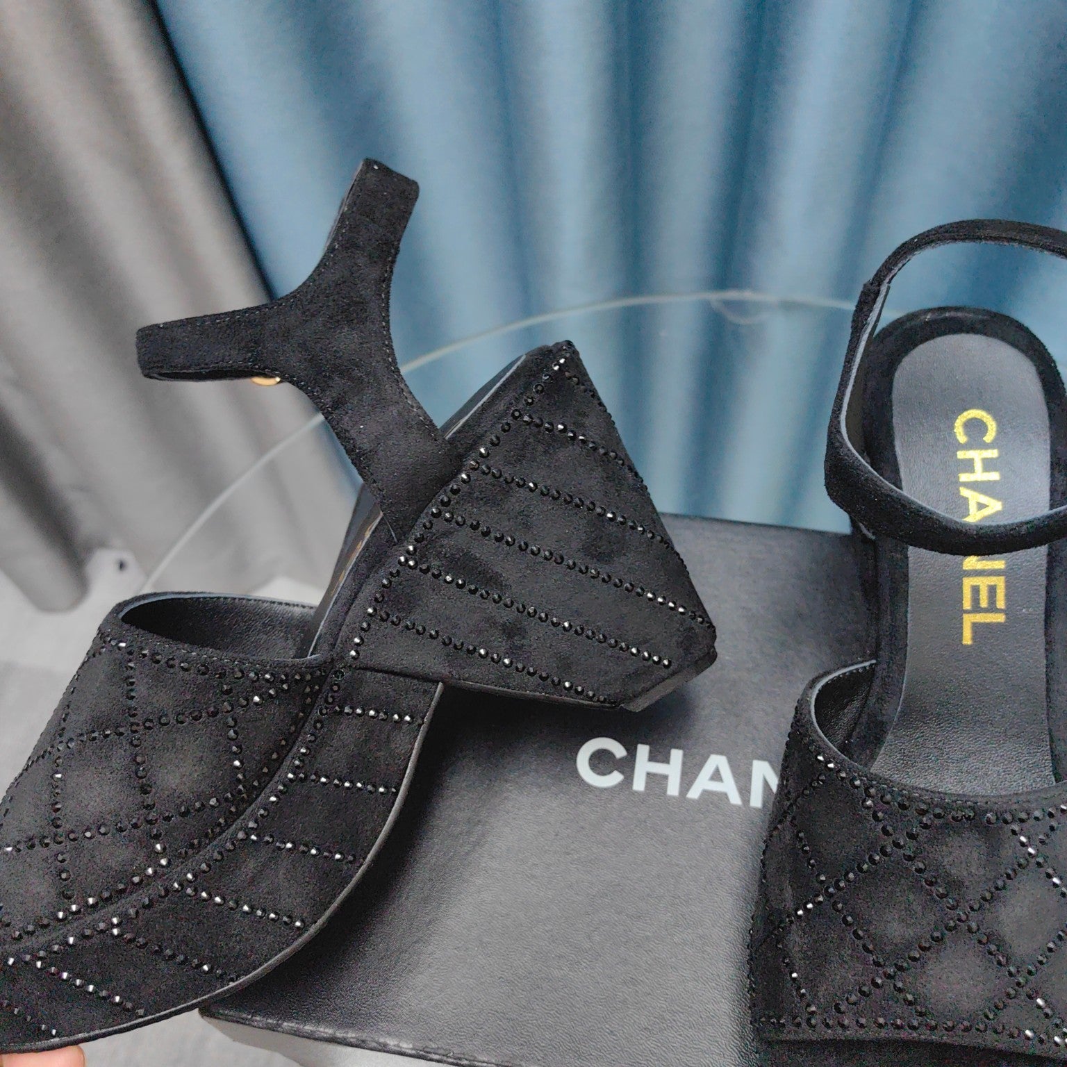 THICK-SOLED WEDGE SANDALS IN BLACK SUEDE