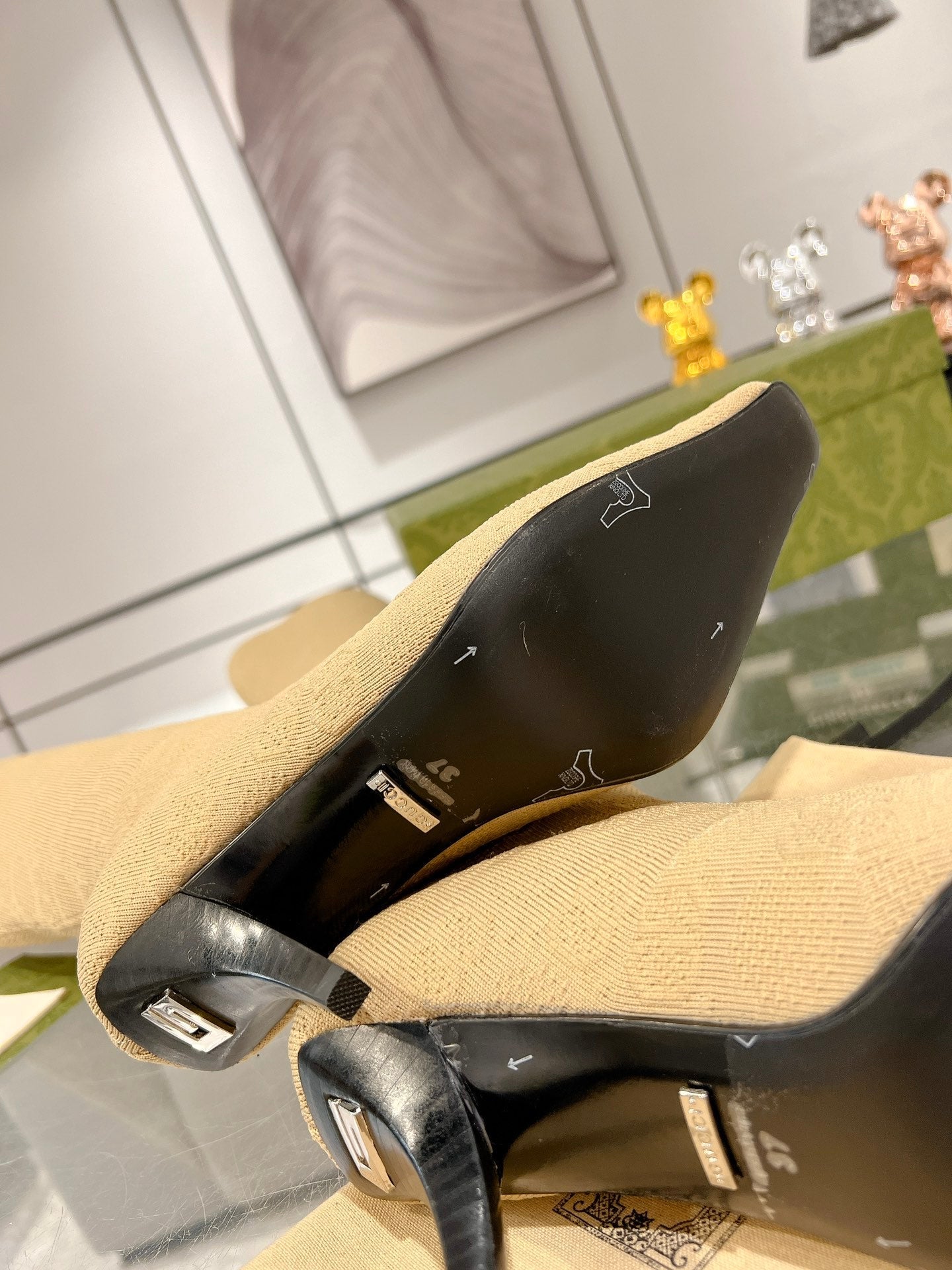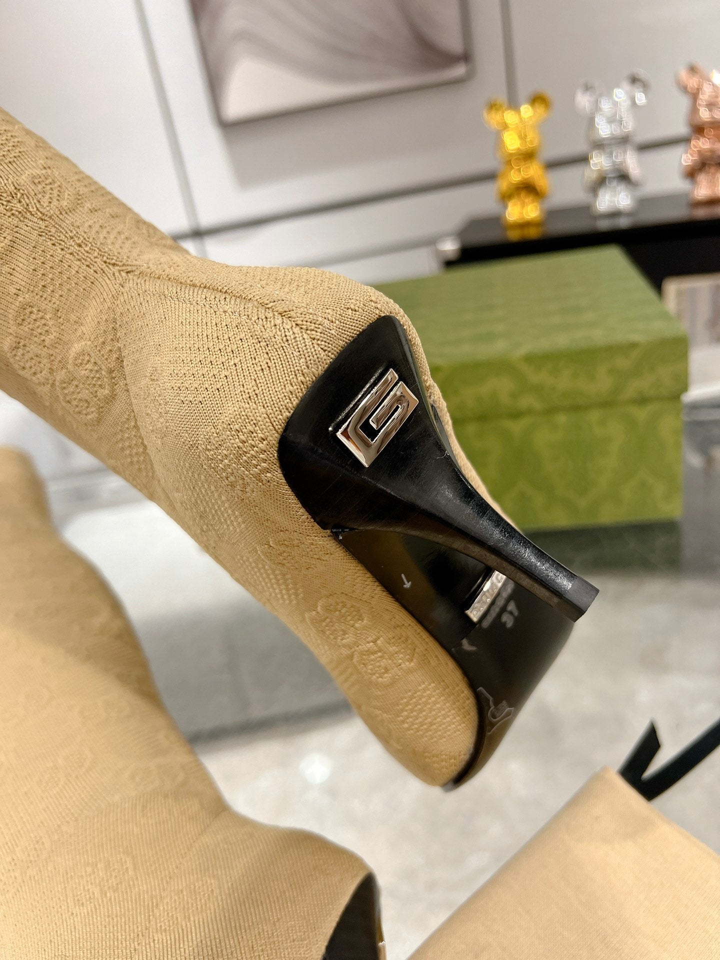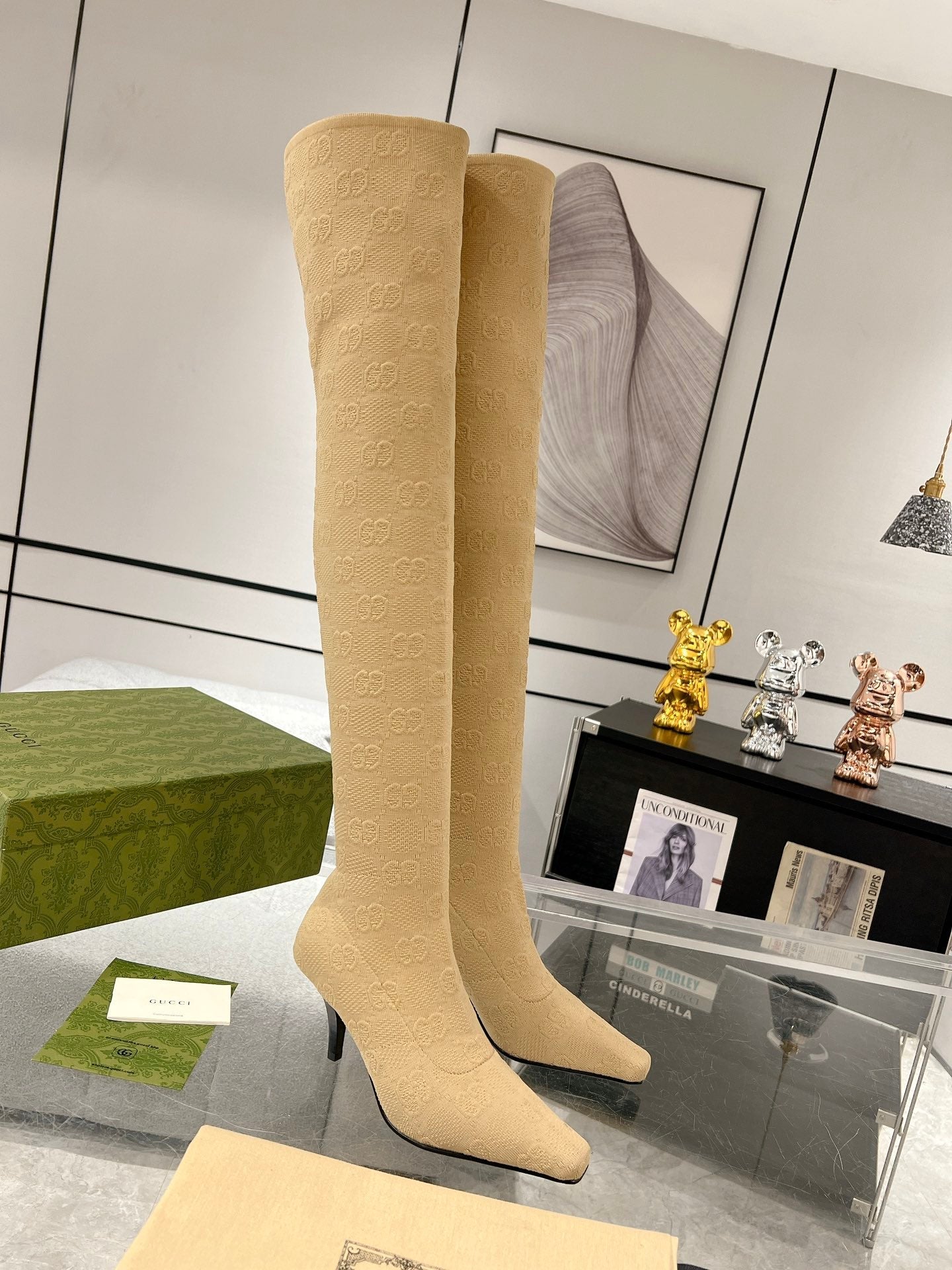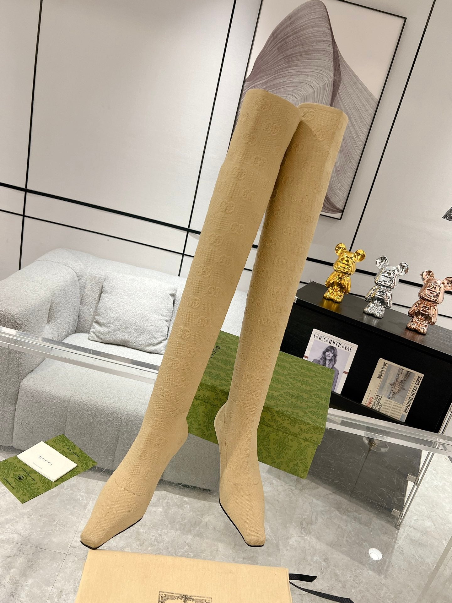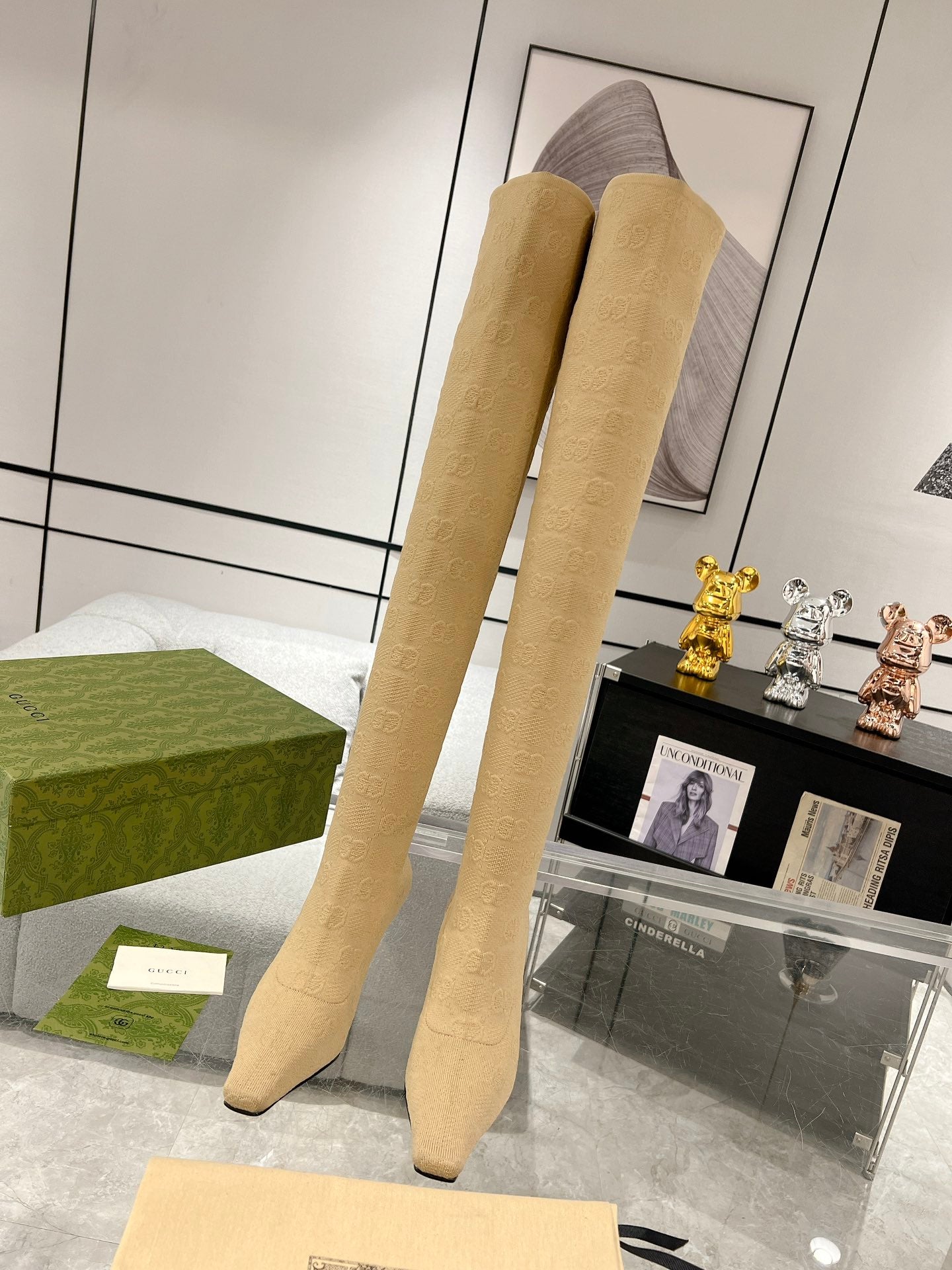 THIGH HIGH BOOTS IN BEIGE KNITTED FABRIC