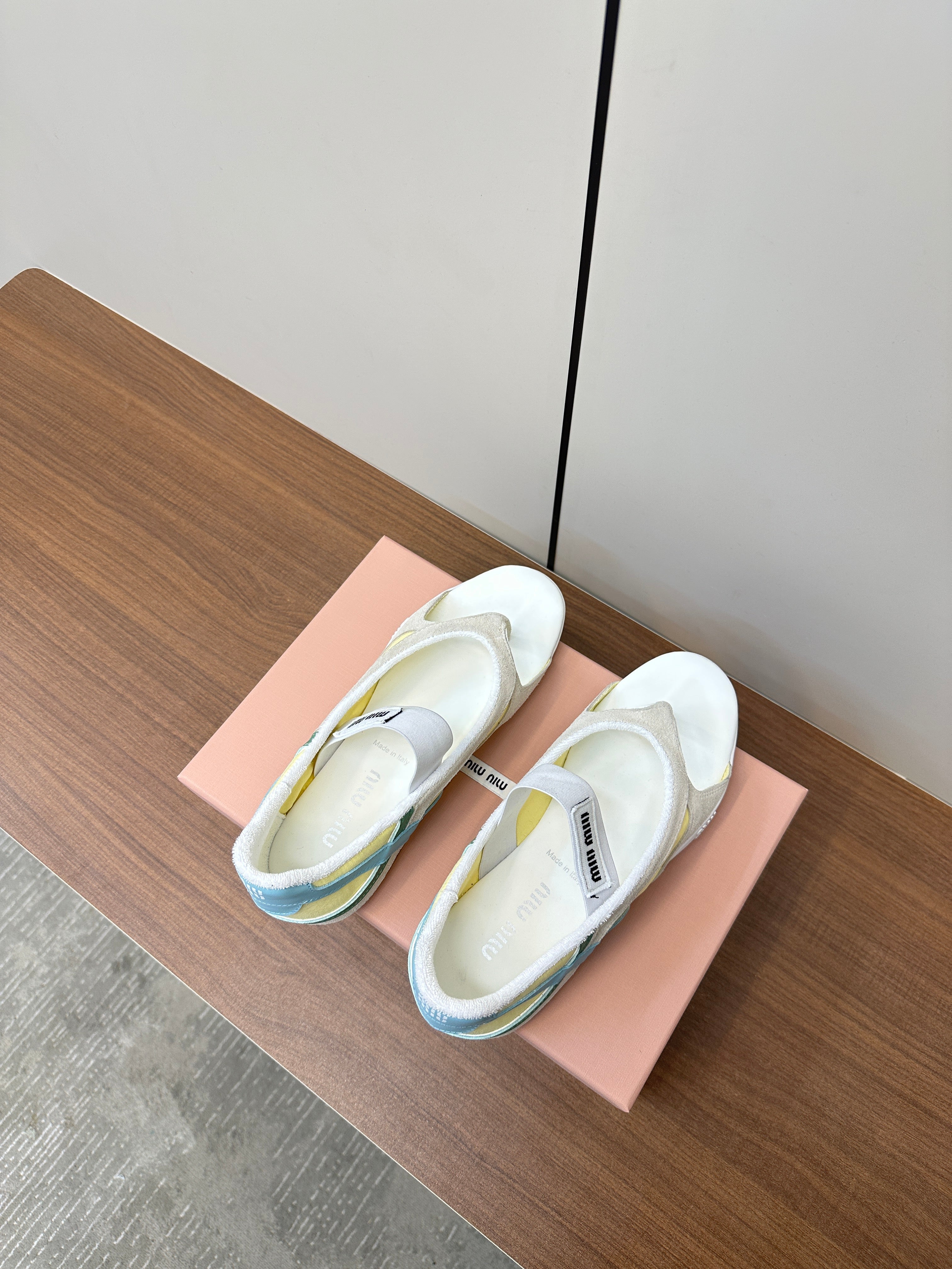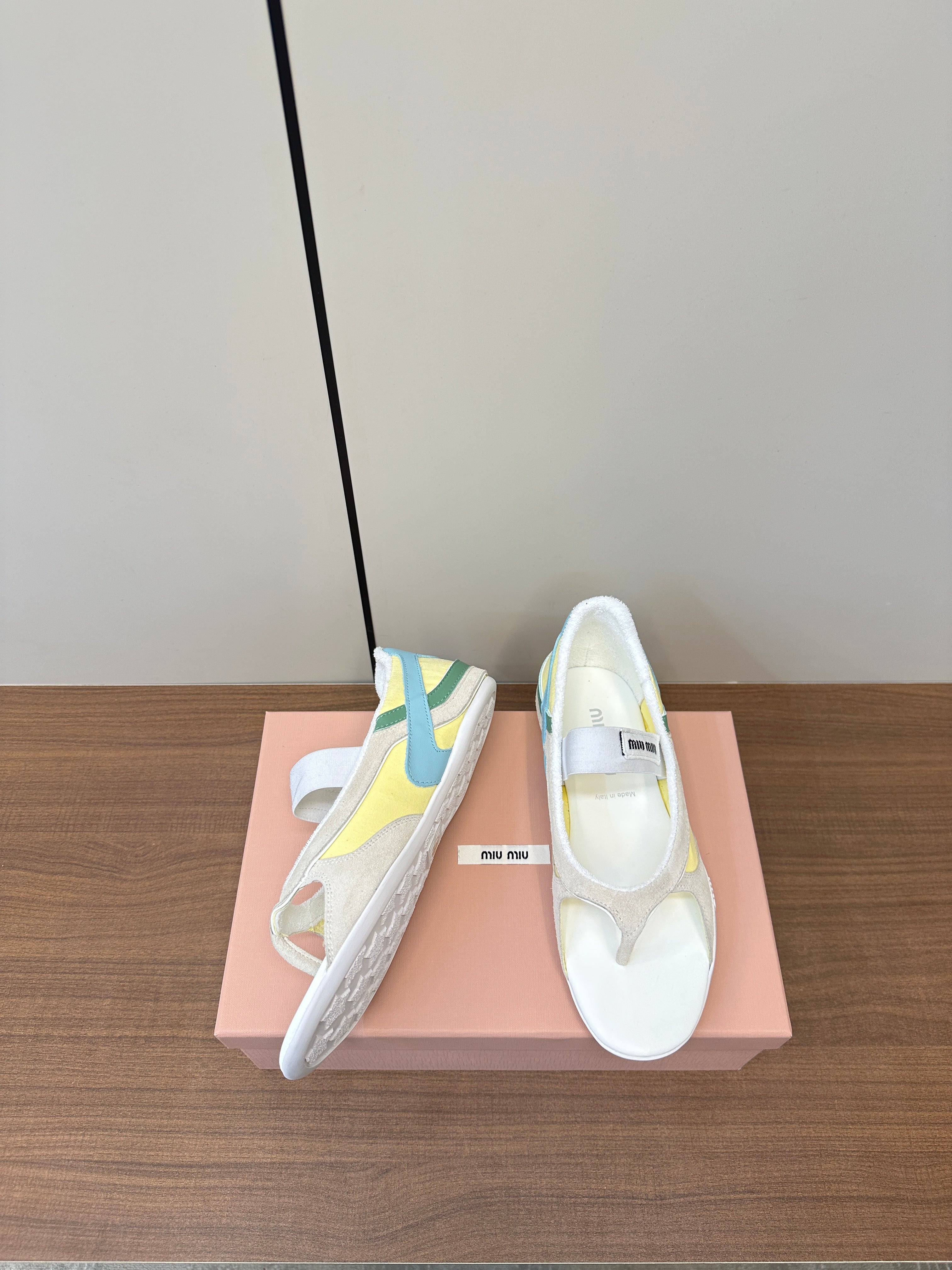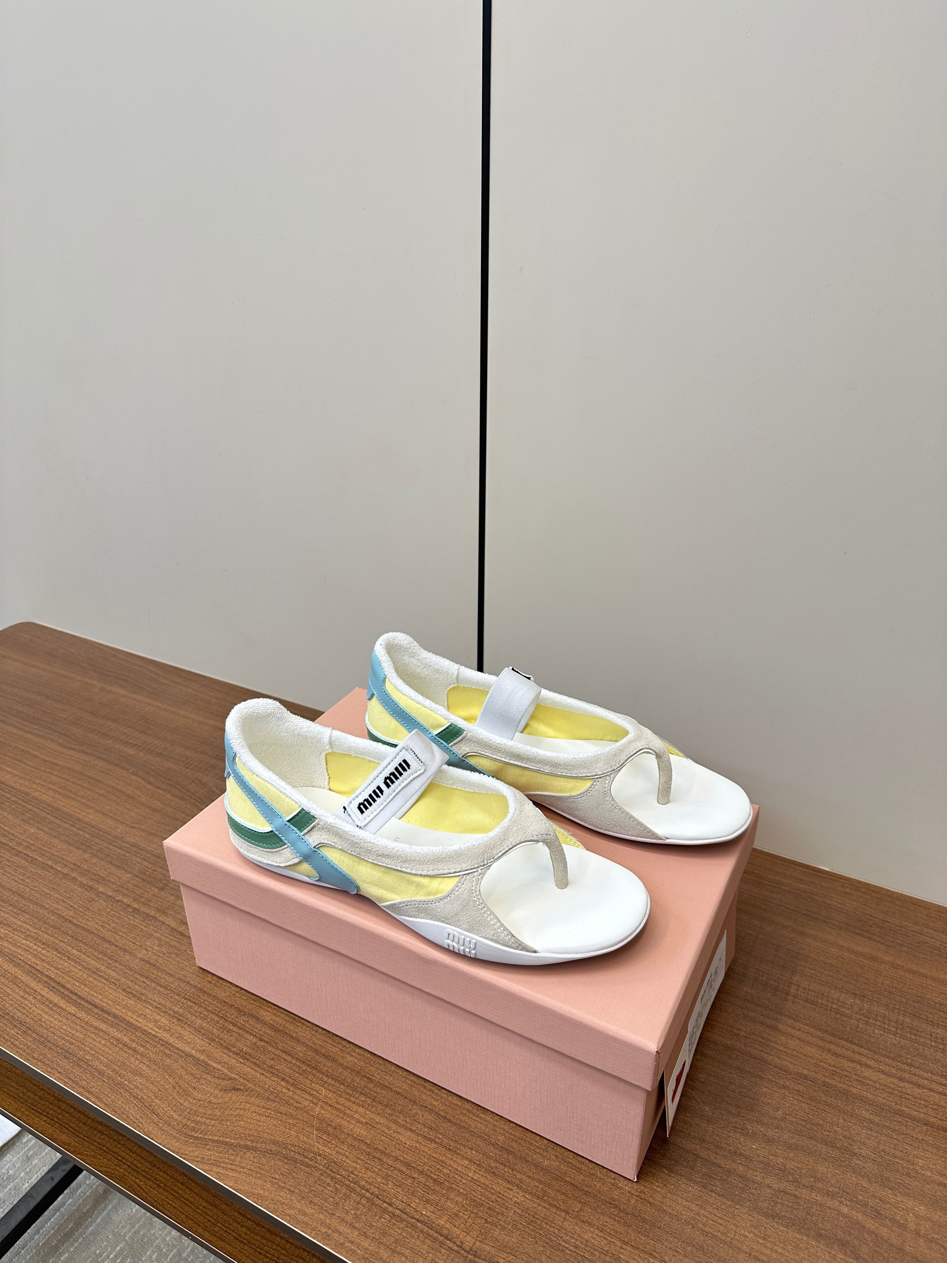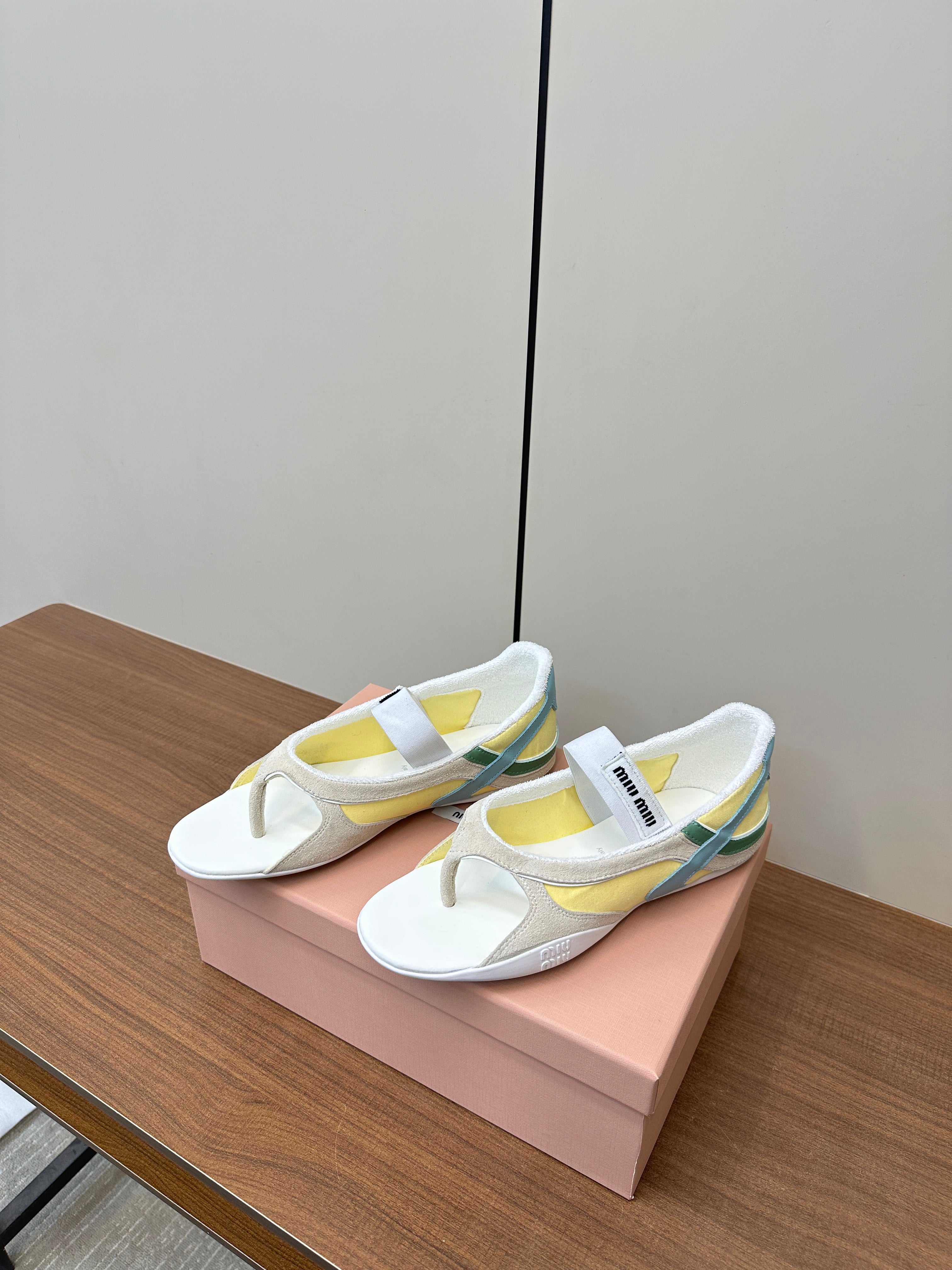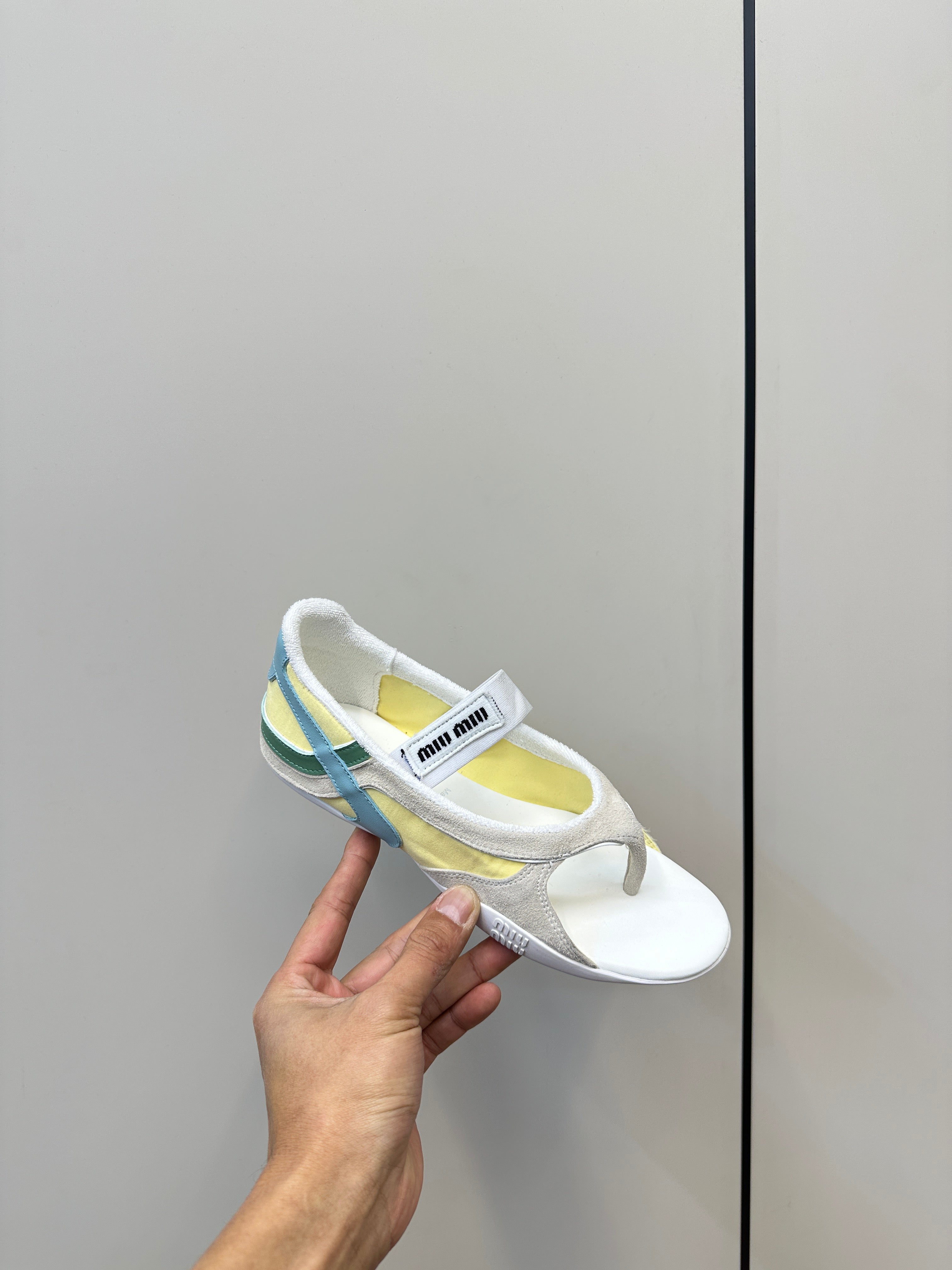 THONG SANDALS IN BEIGE SUEDE MIX YELLOW TECH FABRIC