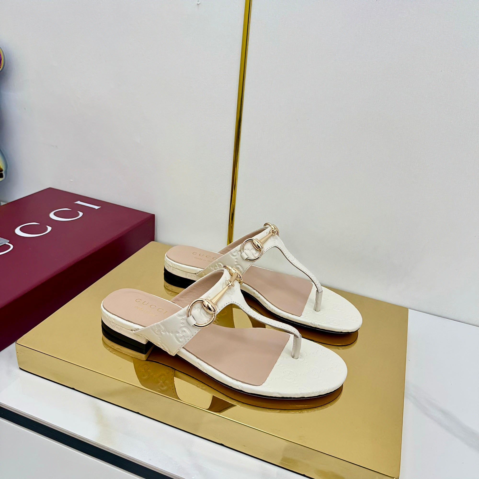 THONG SANDALS IN CREAM WHITE LAMBSKIN PRINTED LOGO WITH GOLD HARDWARE