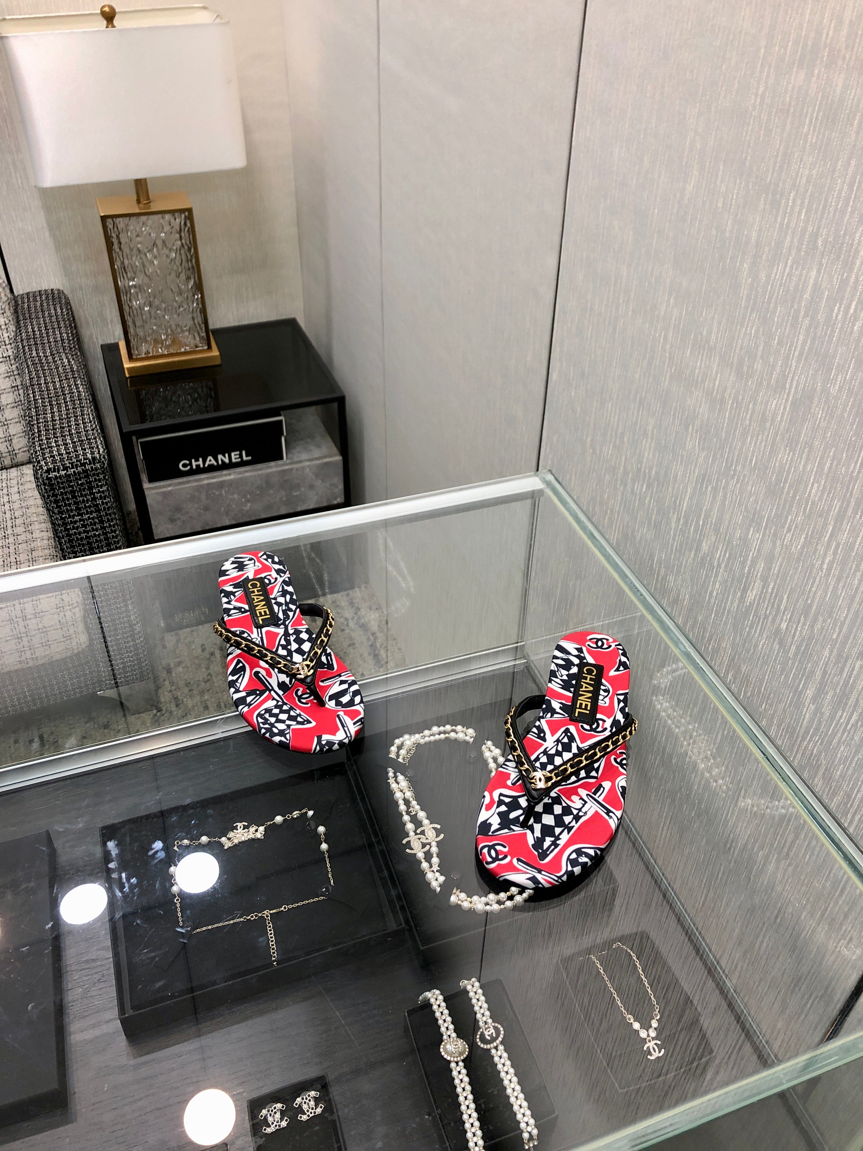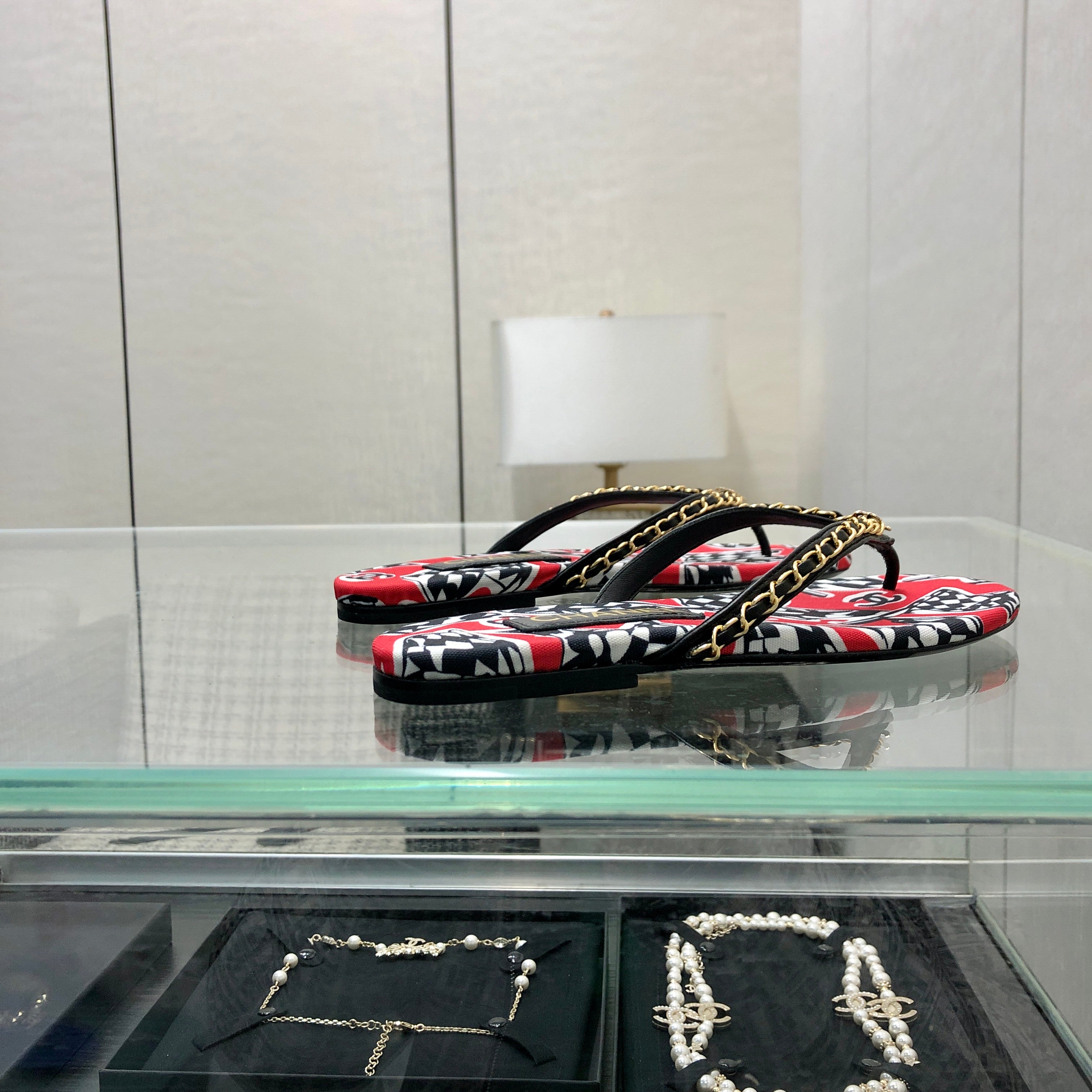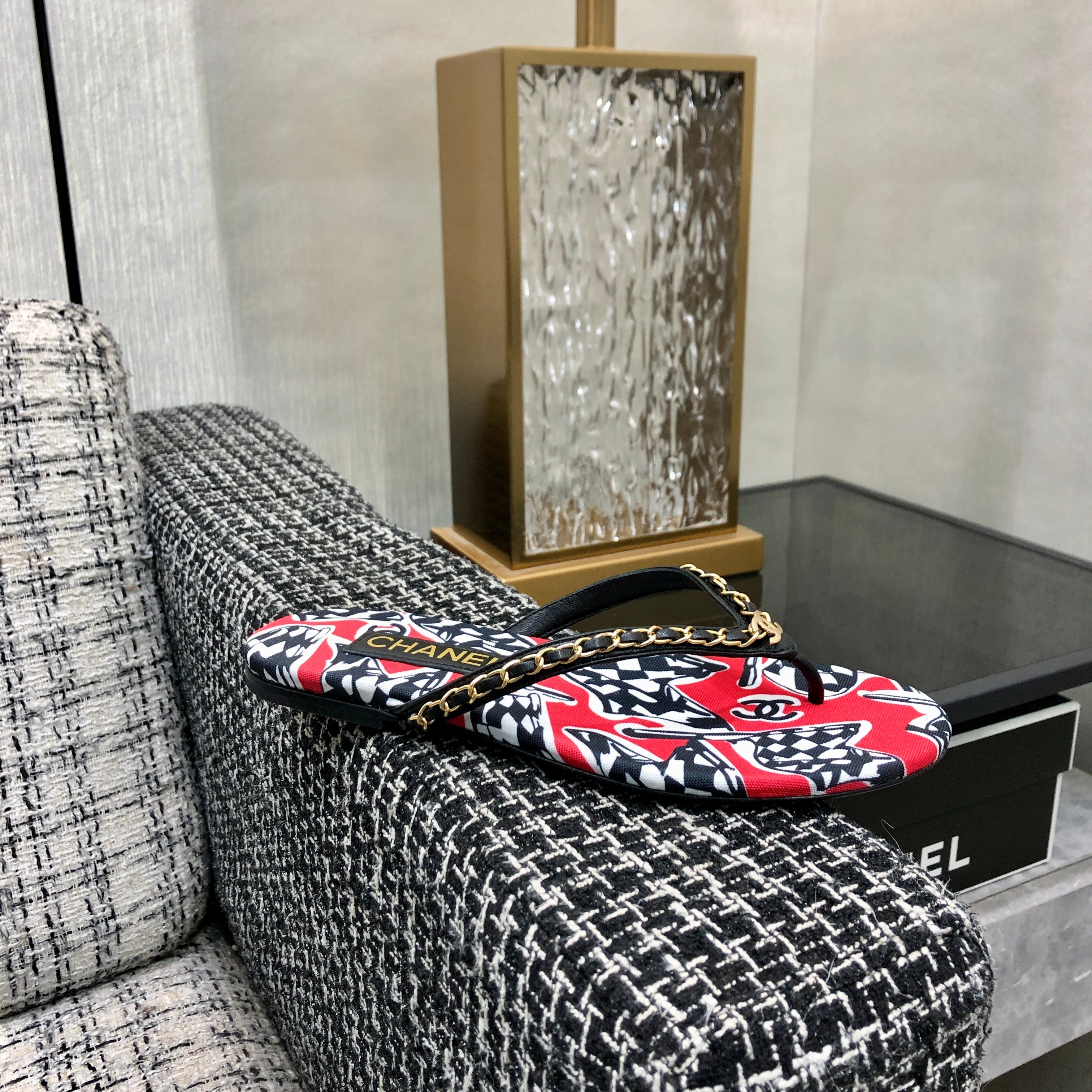 THONG SLIDE IN CHERRY RED MIX COLORFUL FLORAL FABRIC