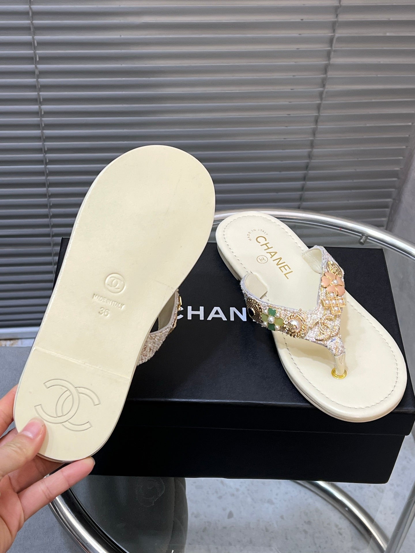 THONG SLIPPERS IN CREAM WHITE SOFT LEATHER WITH LOGO STICKER DETAIL