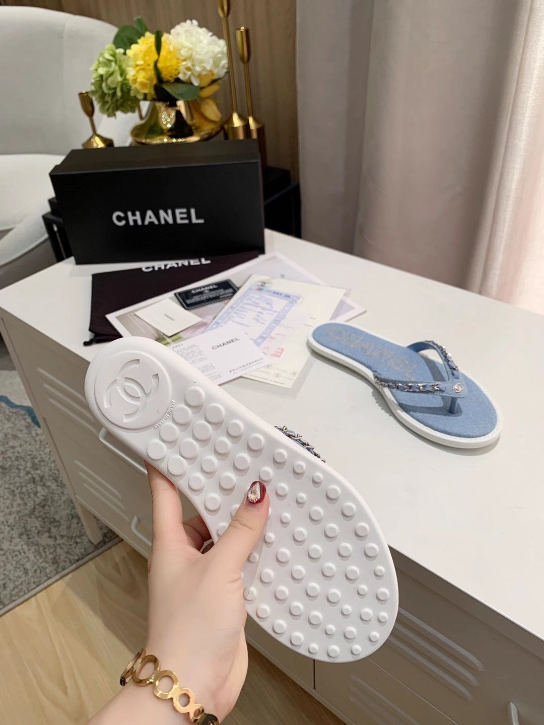 THONG SLIPPERS IN LIGHT BLUE DENIM