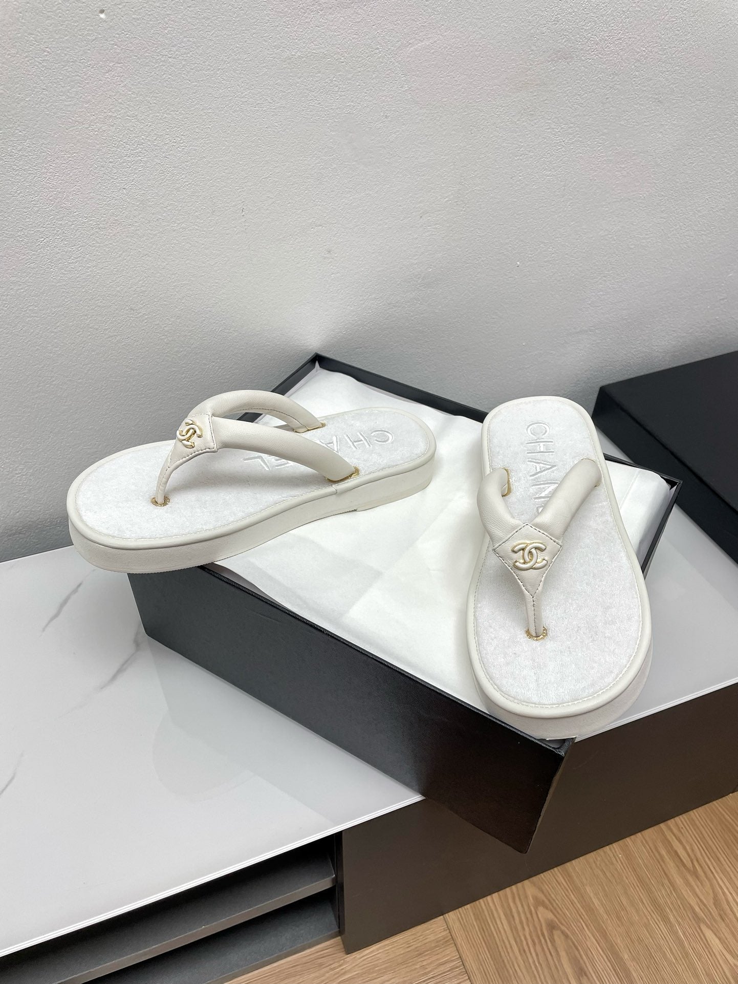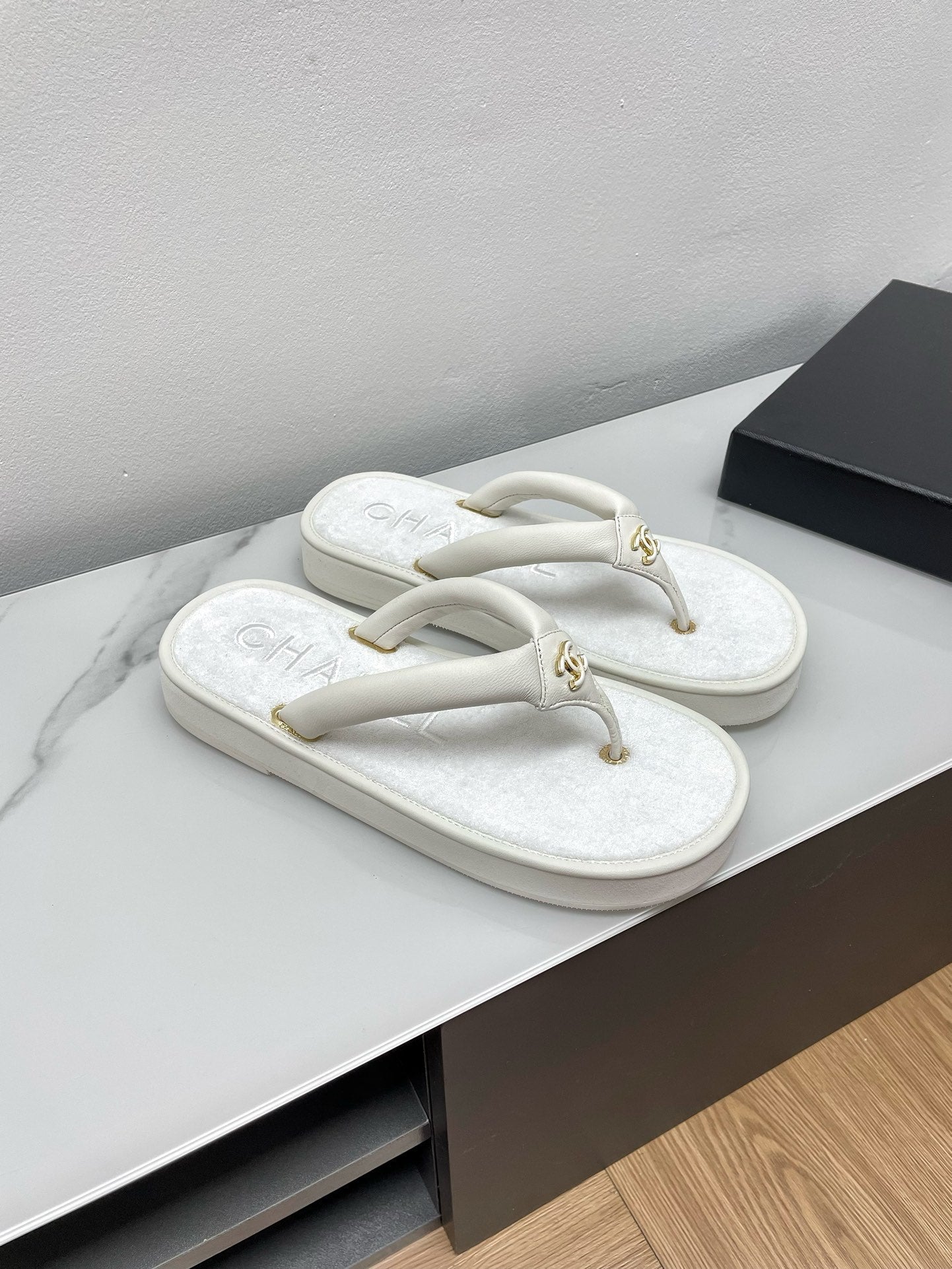 THONG SLIPPERS IN WHITE LAMBSKIN