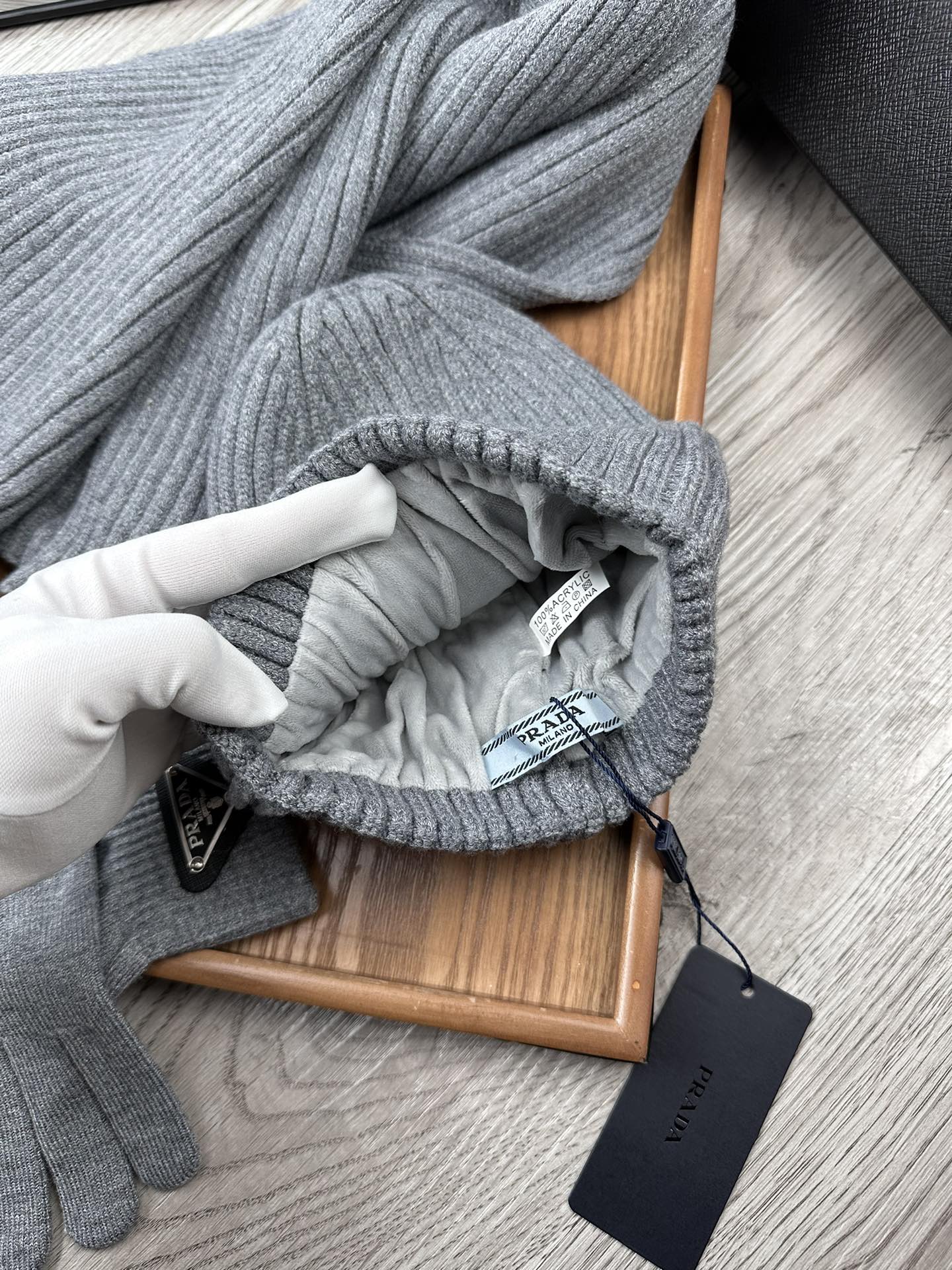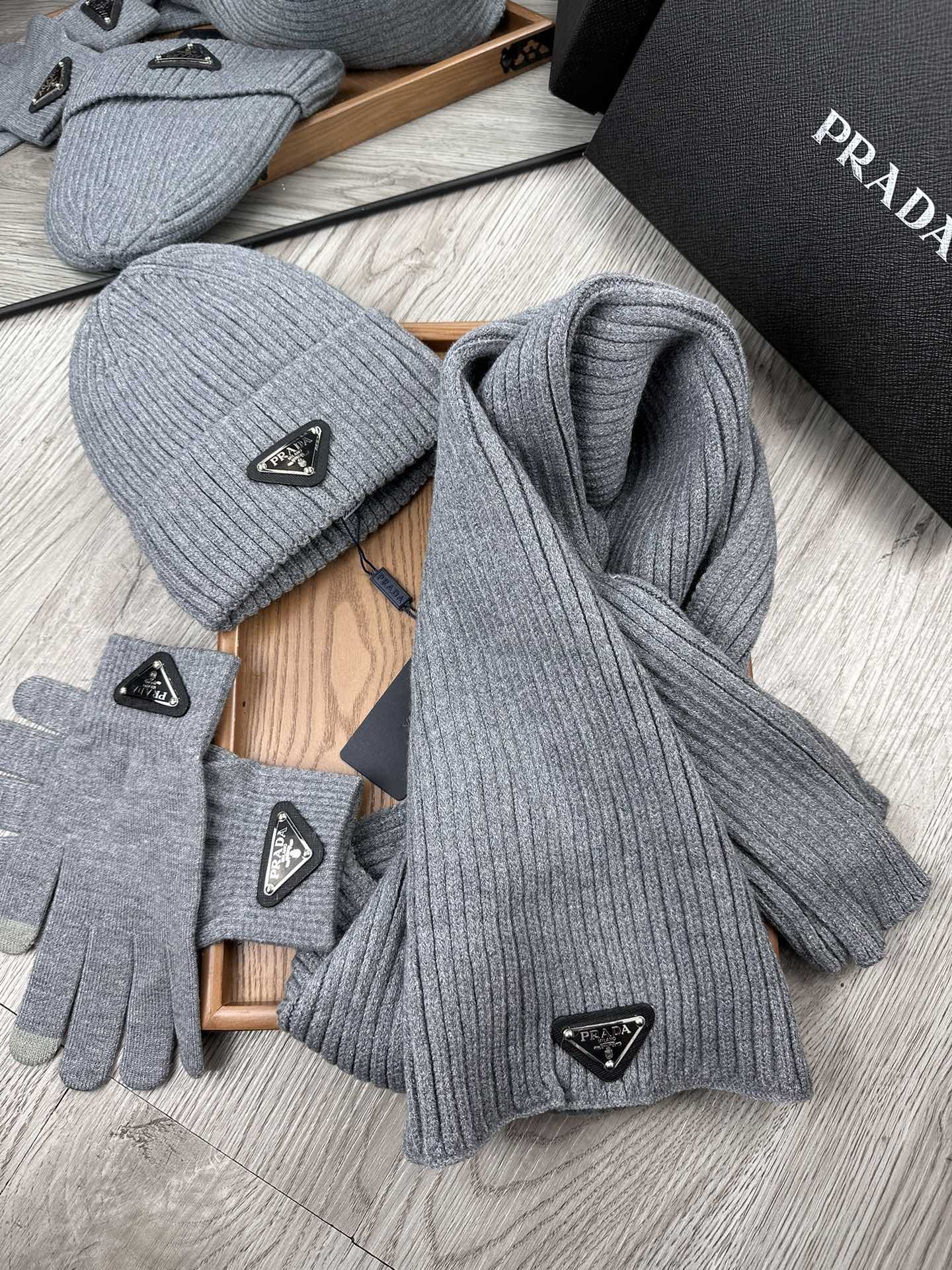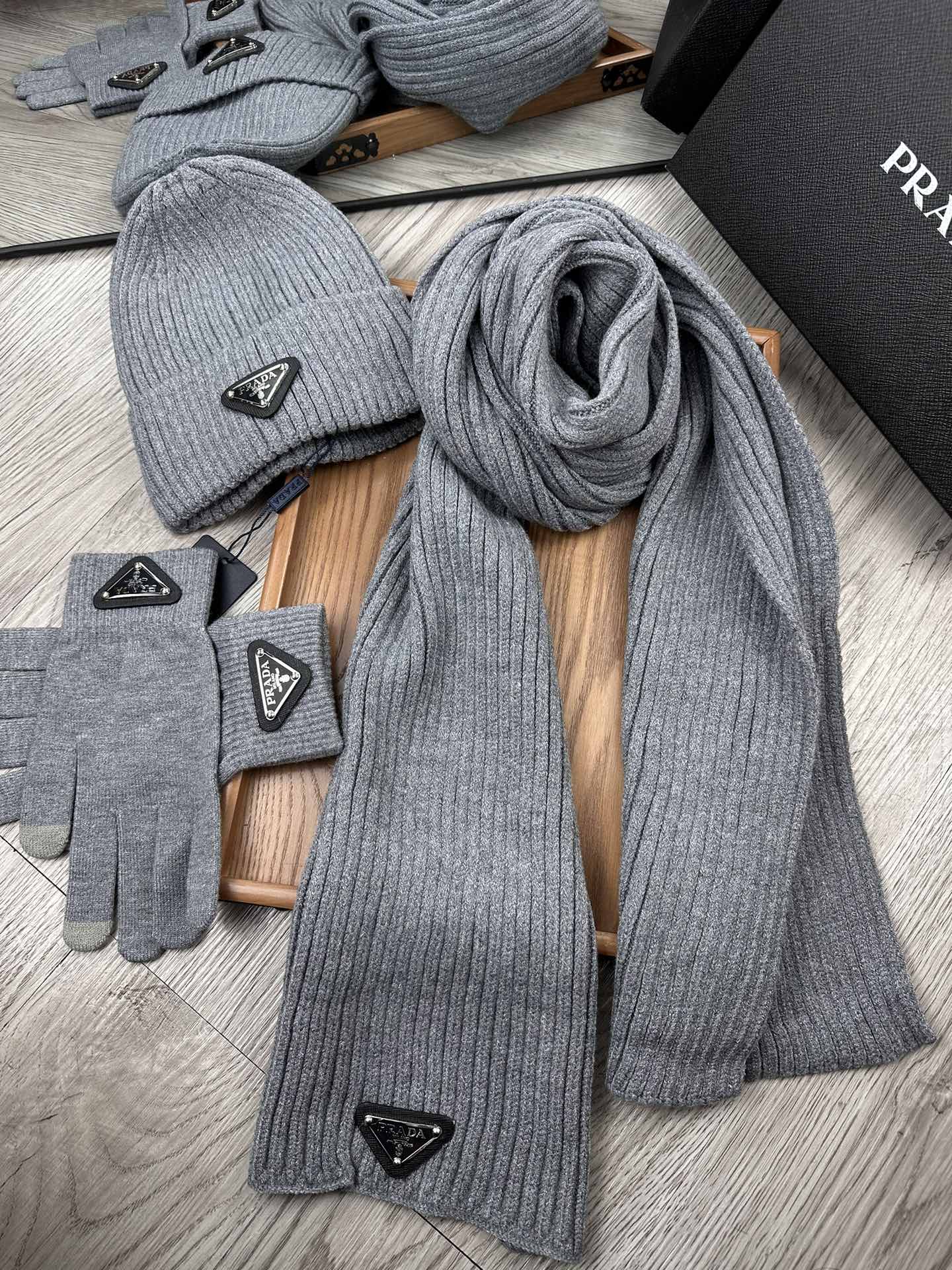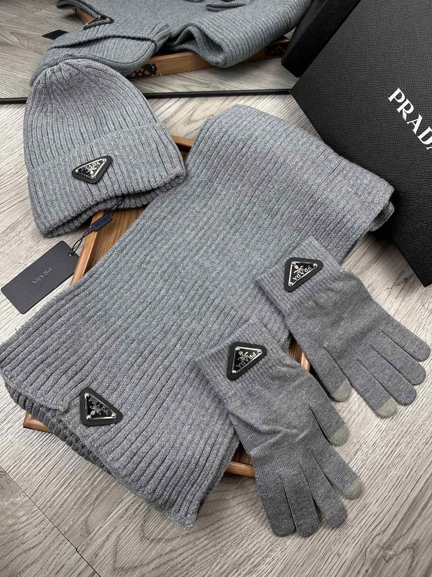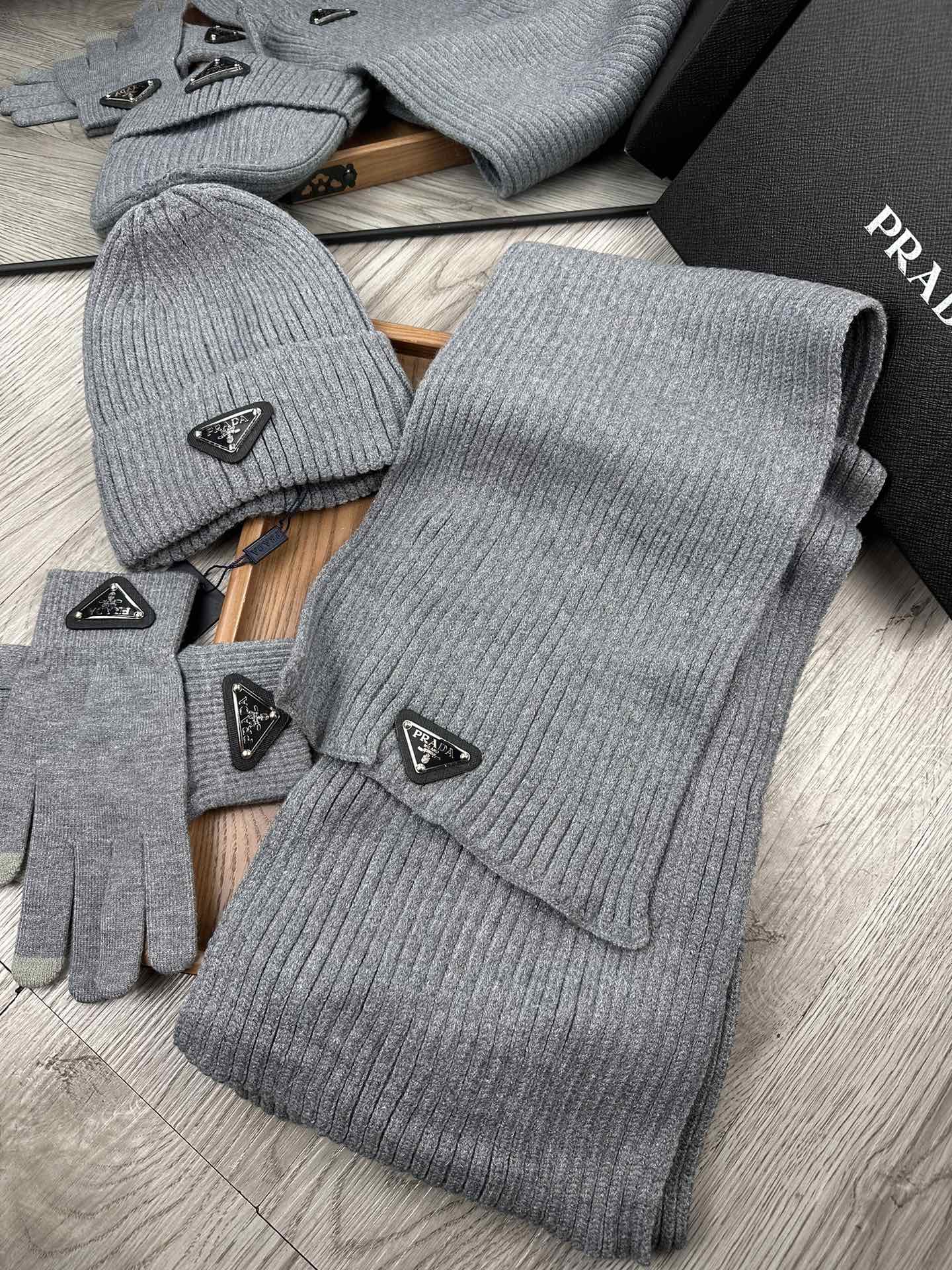 THREE-PIECES SET IN SMOKE GRAY WOOL AND ACRYLIC 406559