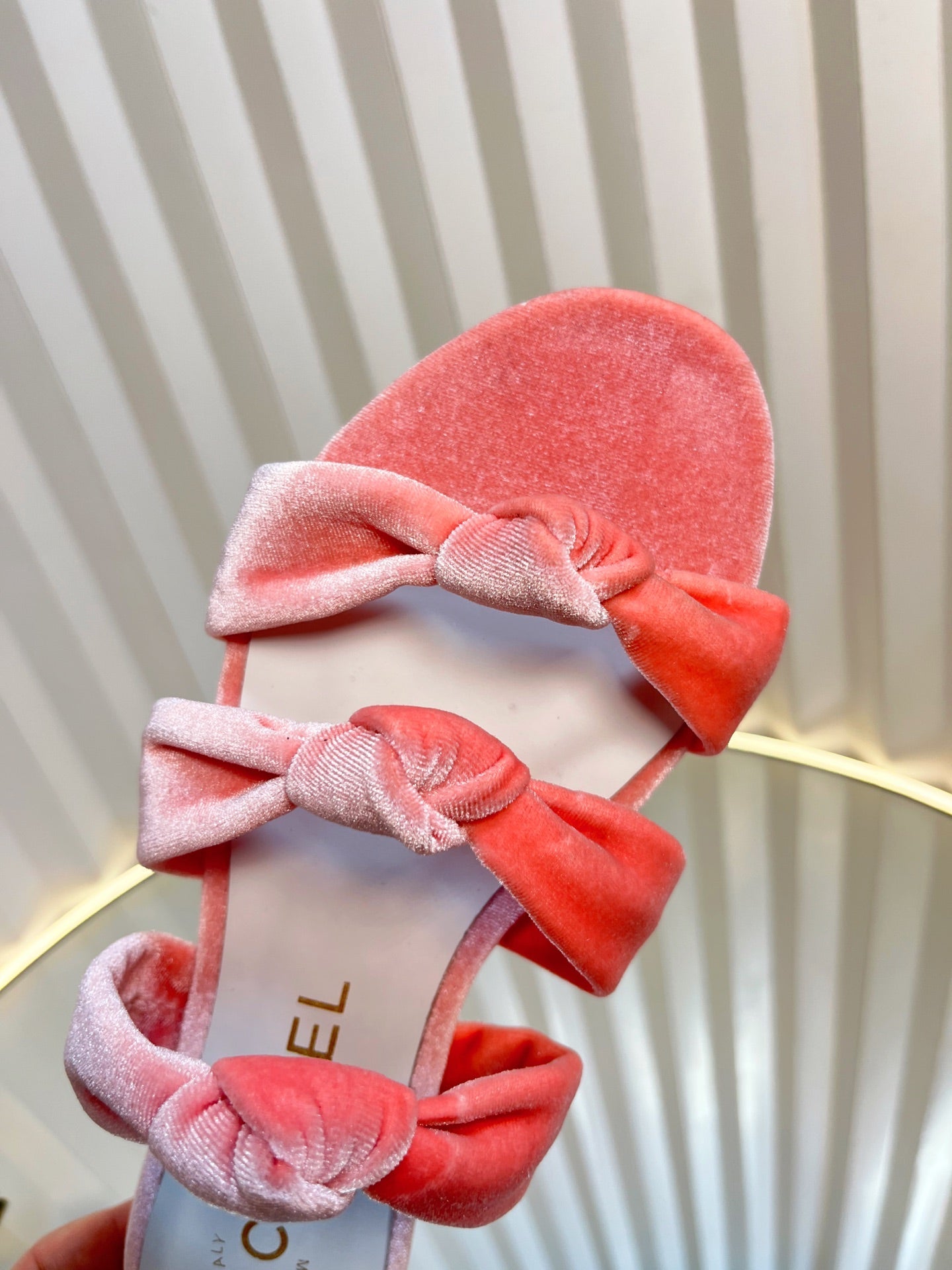 THREE STRAPS MULE IN BRIGHT PINK VELVET