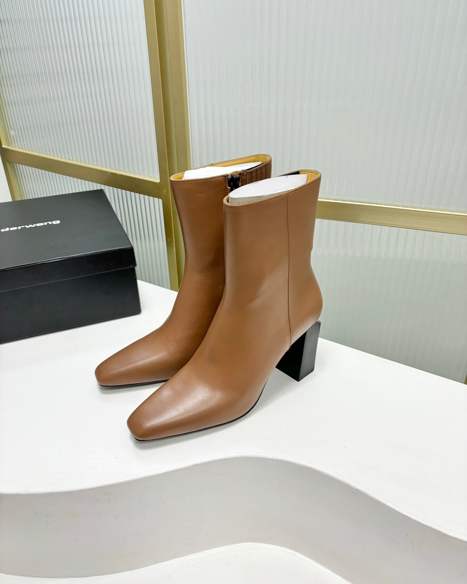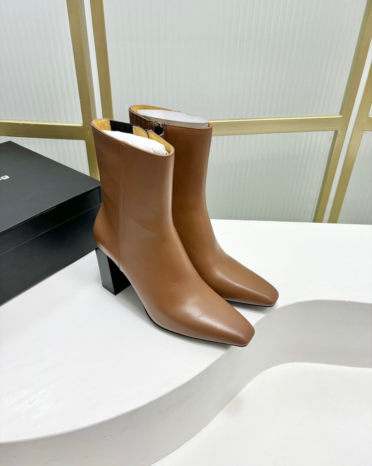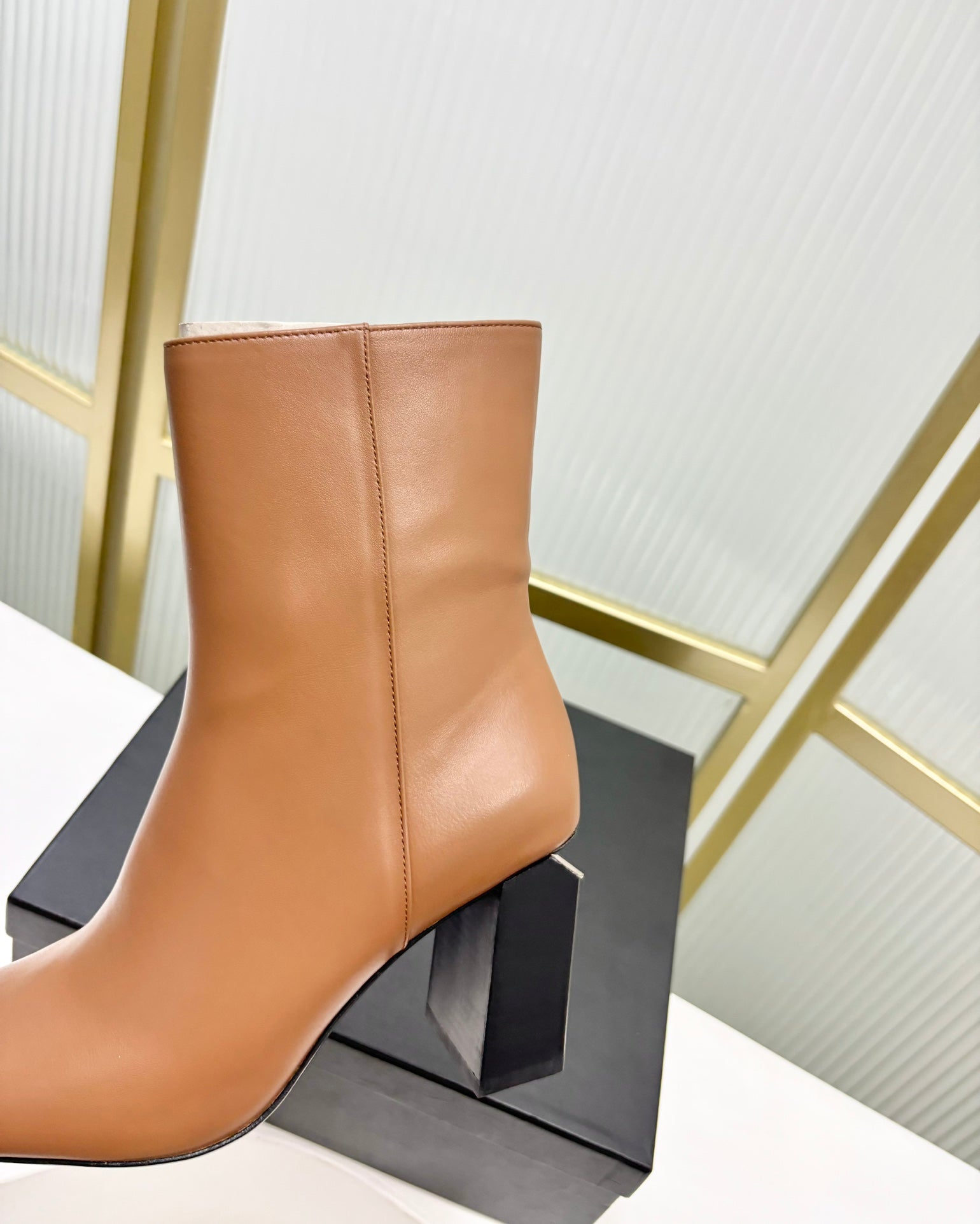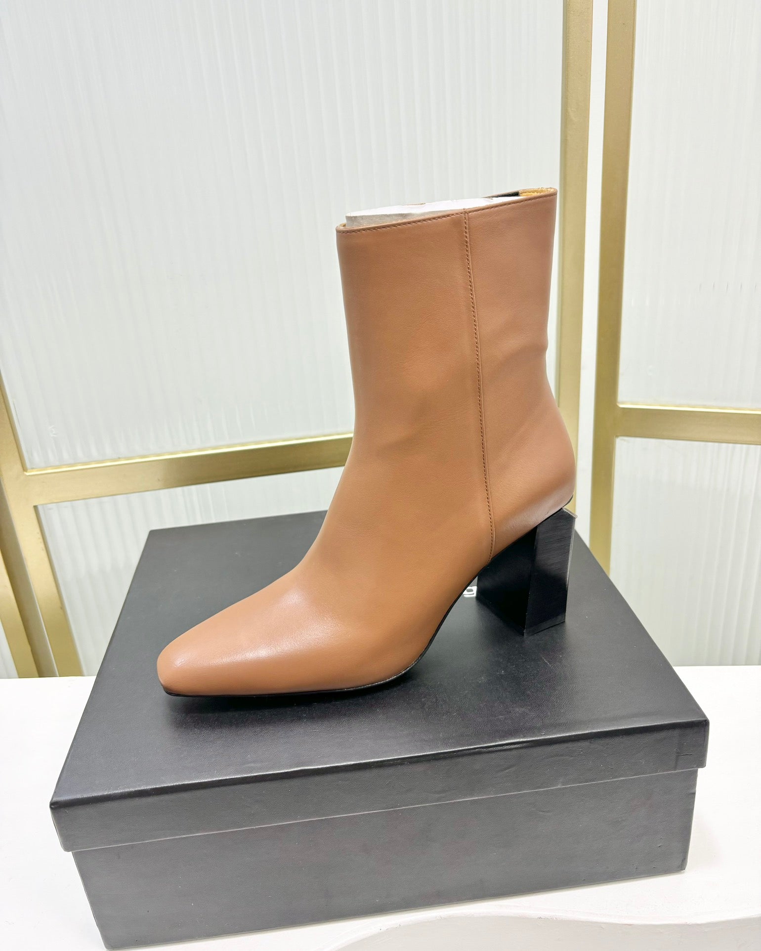 TONI 85MM ANKLE BOOT IN TAWNY BROWN CALFSKIN
