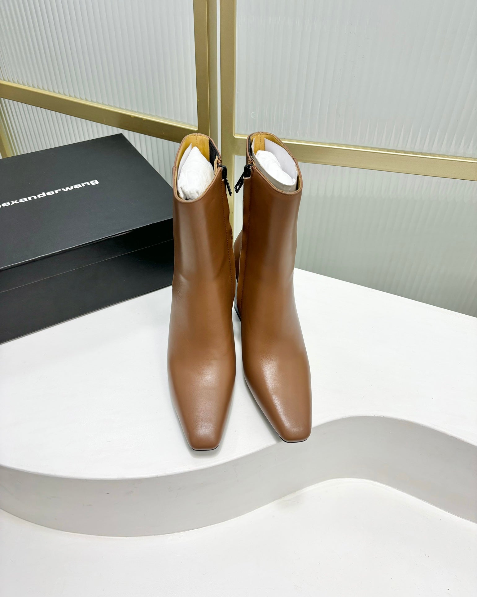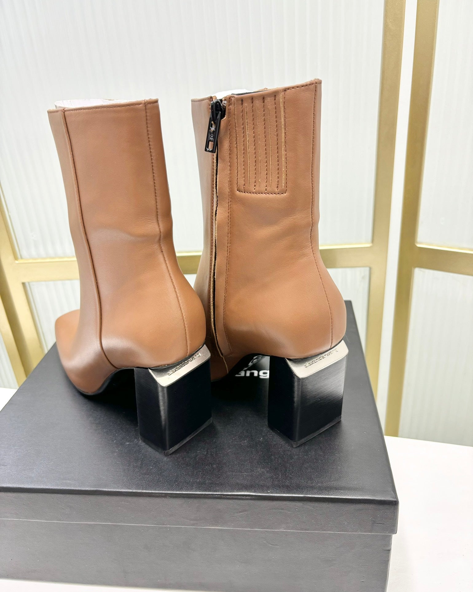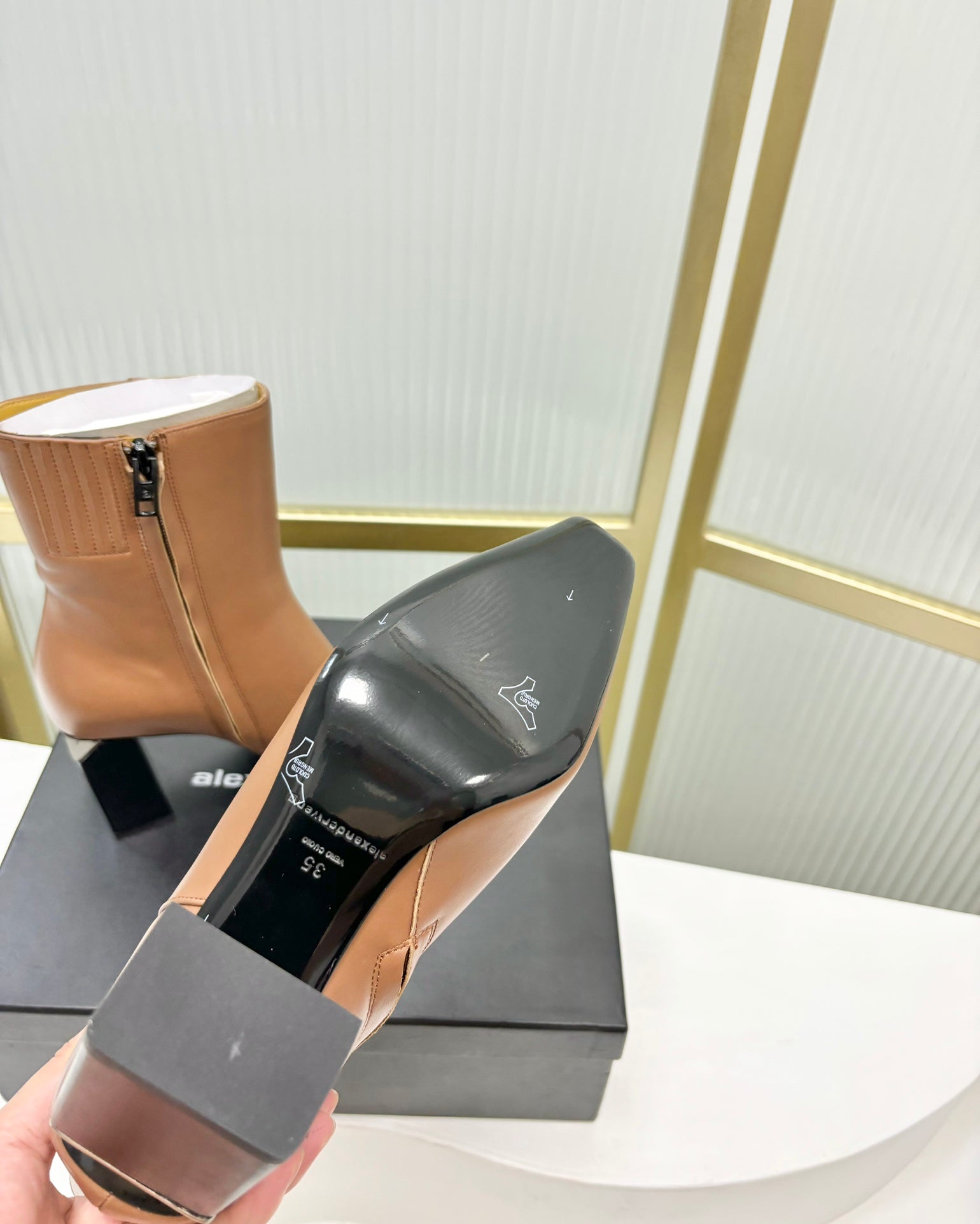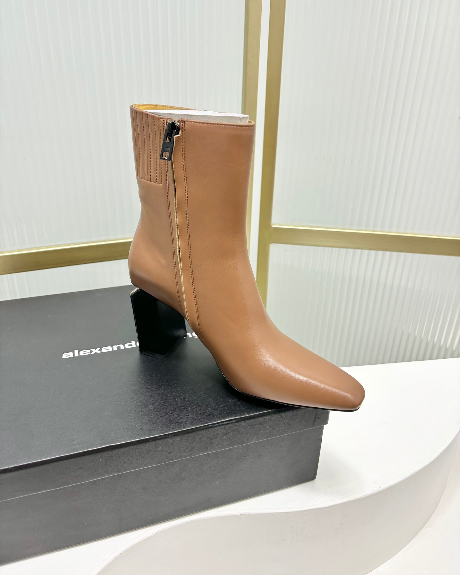 TONI 85MM ANKLE BOOT IN TAWNY BROWN CALFSKIN