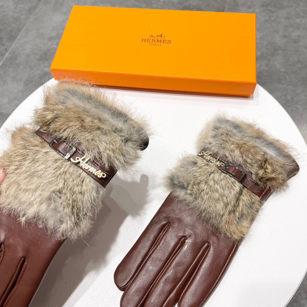 TOUCHSCREEN GLOVES IN CHESTNUT BROWN LAMBSKIN MIX FOX FUR 103797
