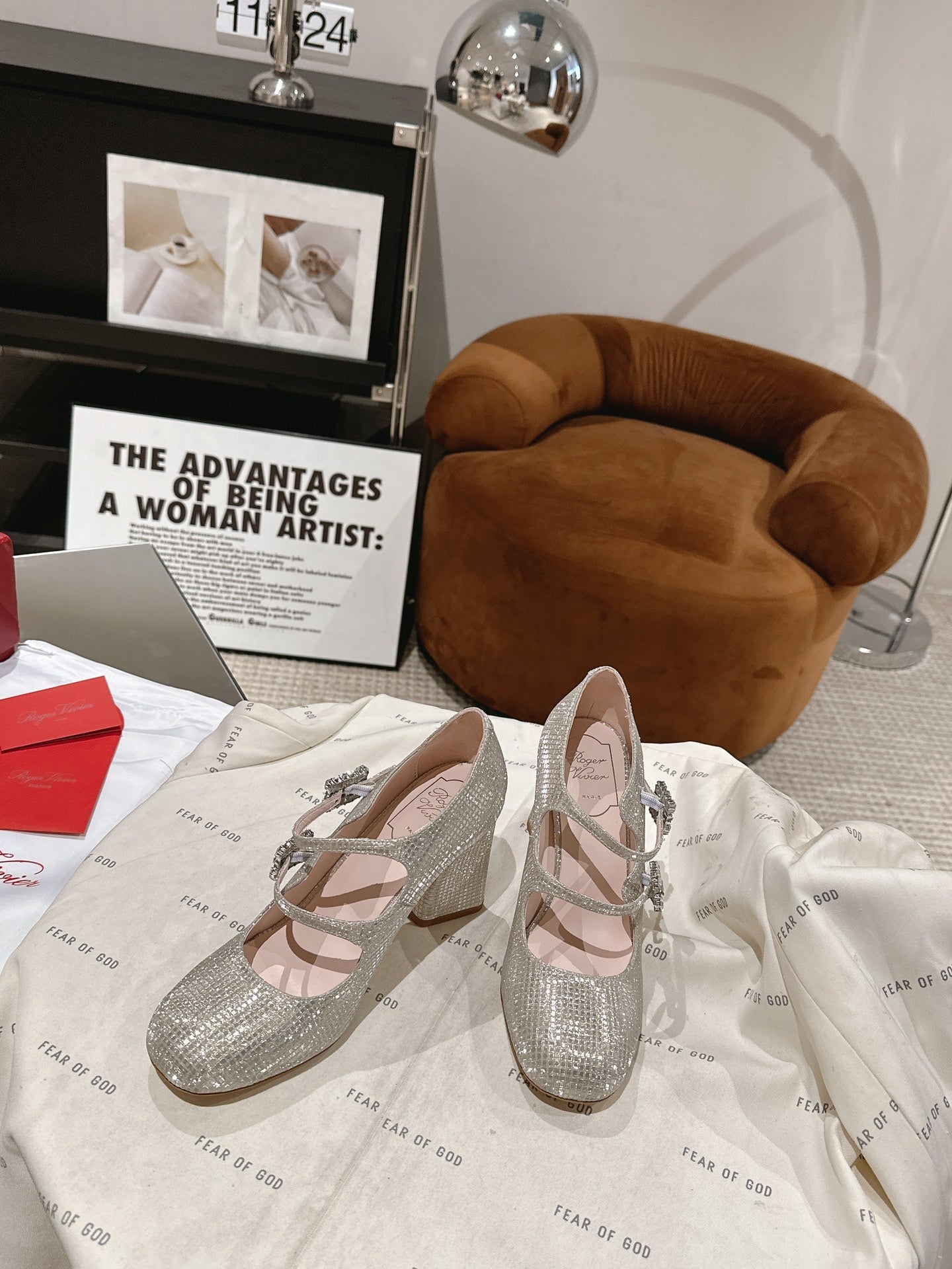 TRÈS VIVIER MARY JANE DOUBLE-STRAP PUMPS IN BEIGE CALFSKIN FULLY EMBELLISHED CRYSTALS