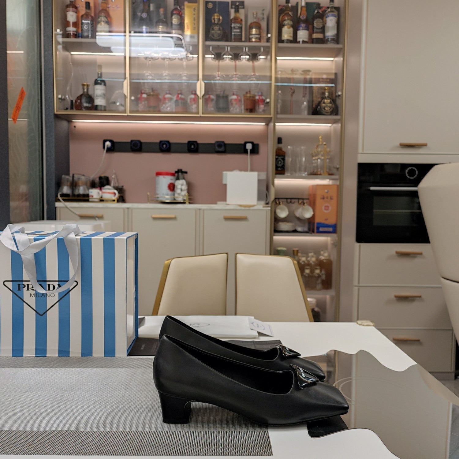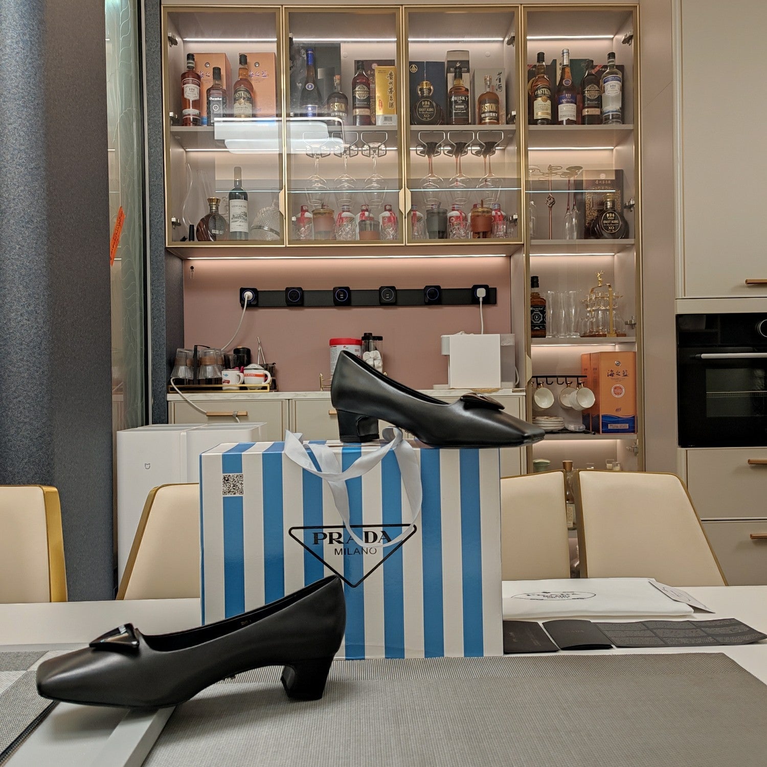 TRIANGLE LOGO PUMPS IN BLACK CALFSKIN
