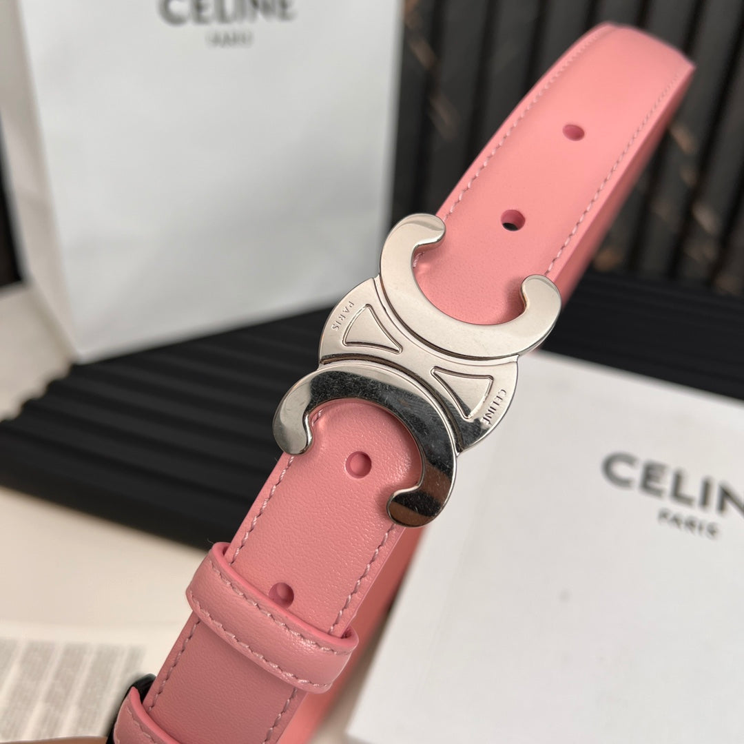 TRIOMPHE 25 MM BELT IN BLUSH PINK CALFSKIN SILVER HARDWARE