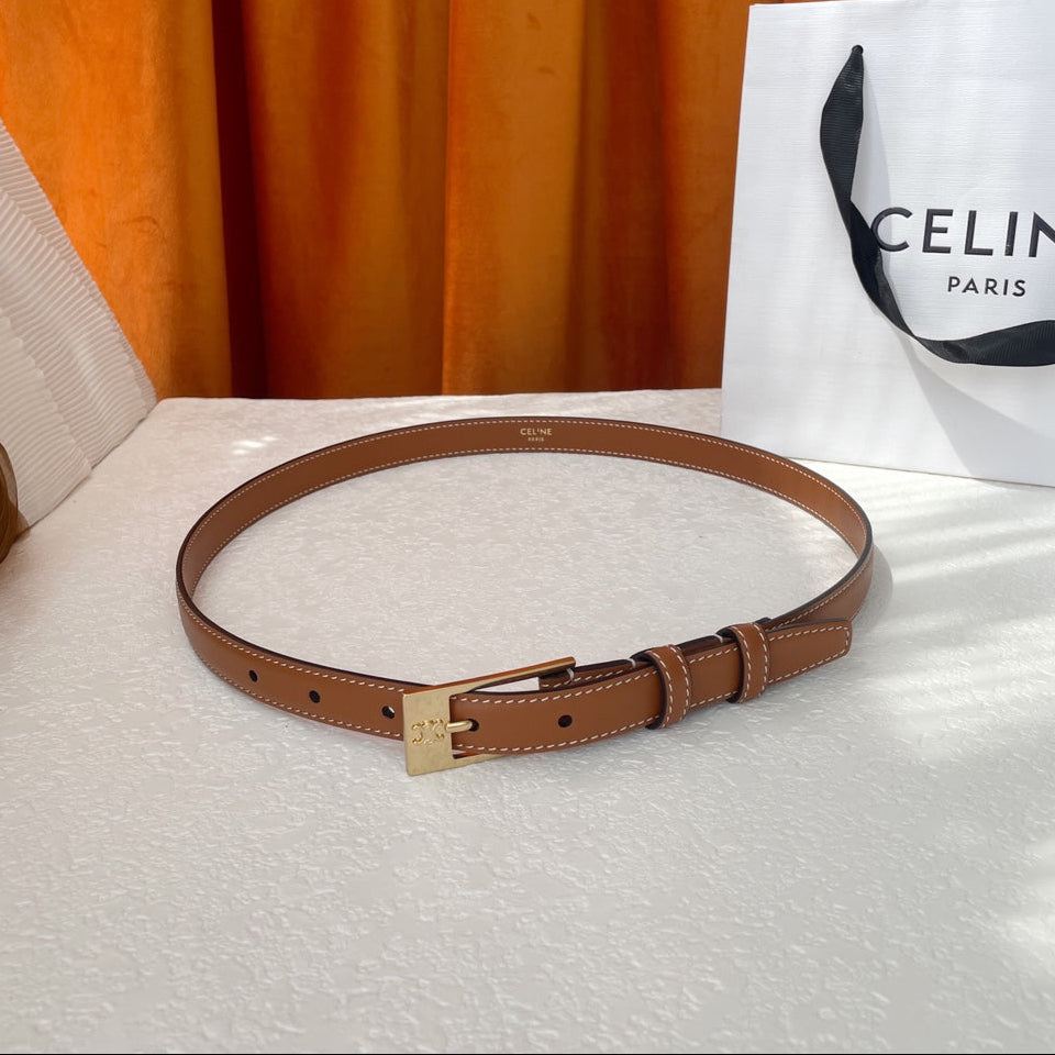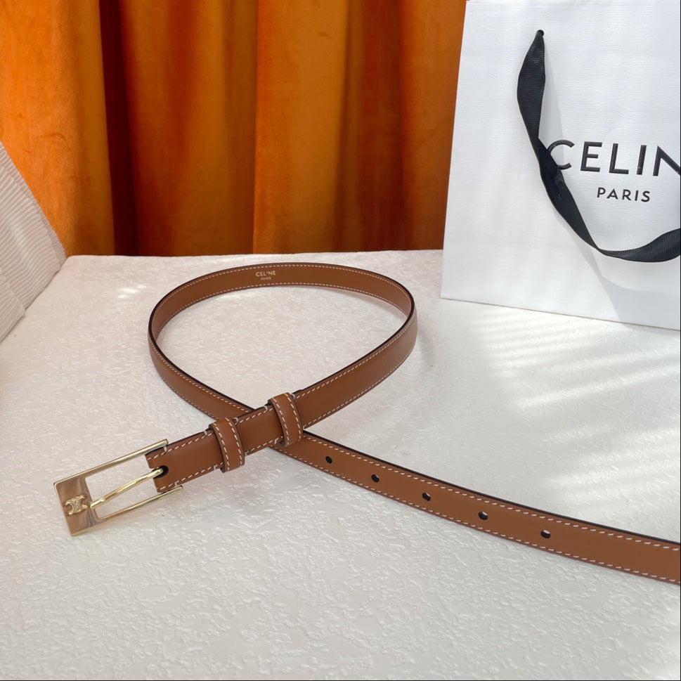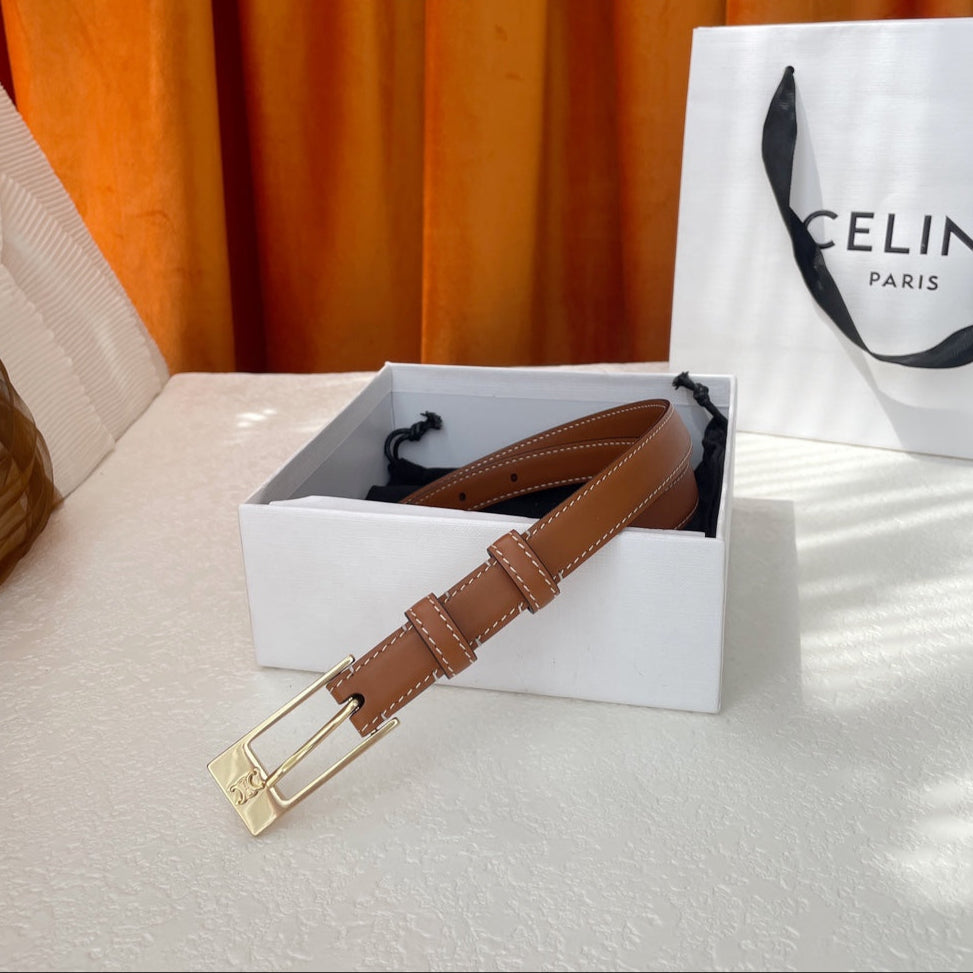 TRIOMPHE BELT 18MM IN BROWN CALFSKIN WITH RECTANGULAR BUCKLE EMBOSSED LOGO AND WHITE STITCHING