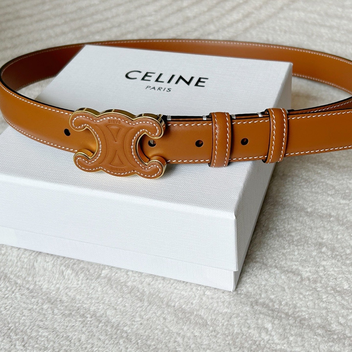 TRIOMPHE BELT 24MM IN BROWN CALFSKIN WITH LEATHER BUCKLE