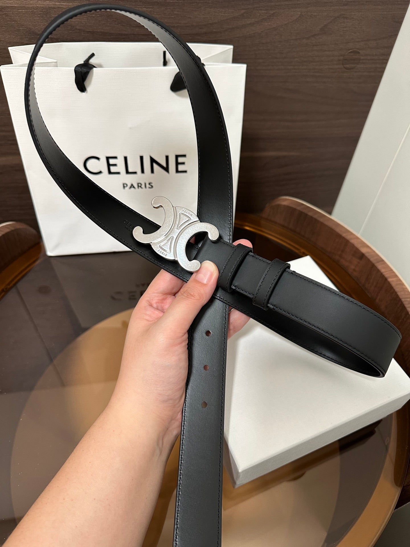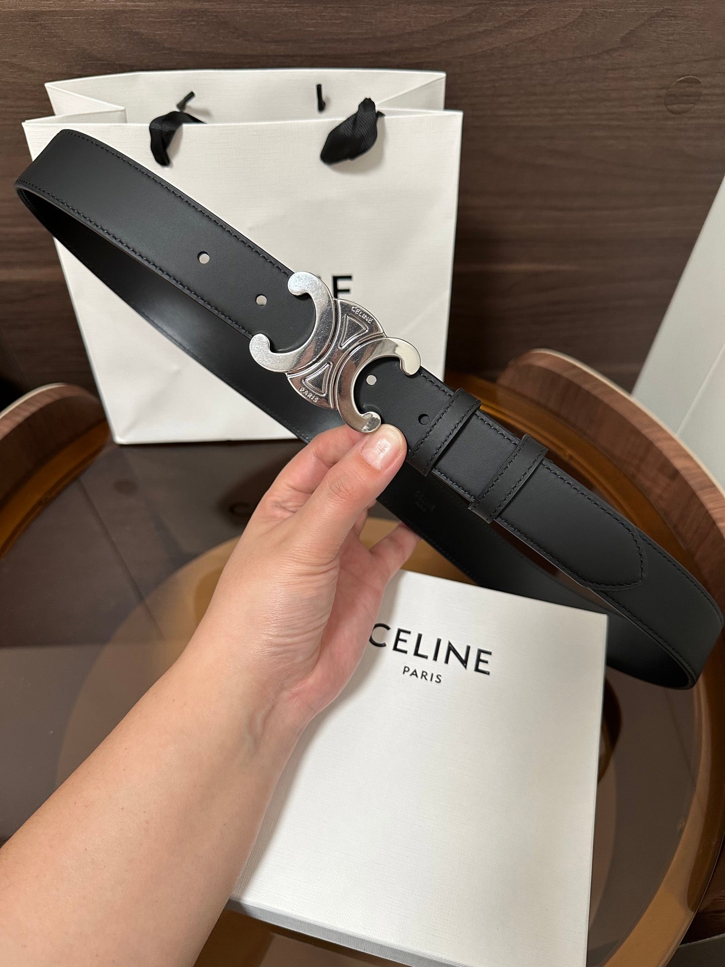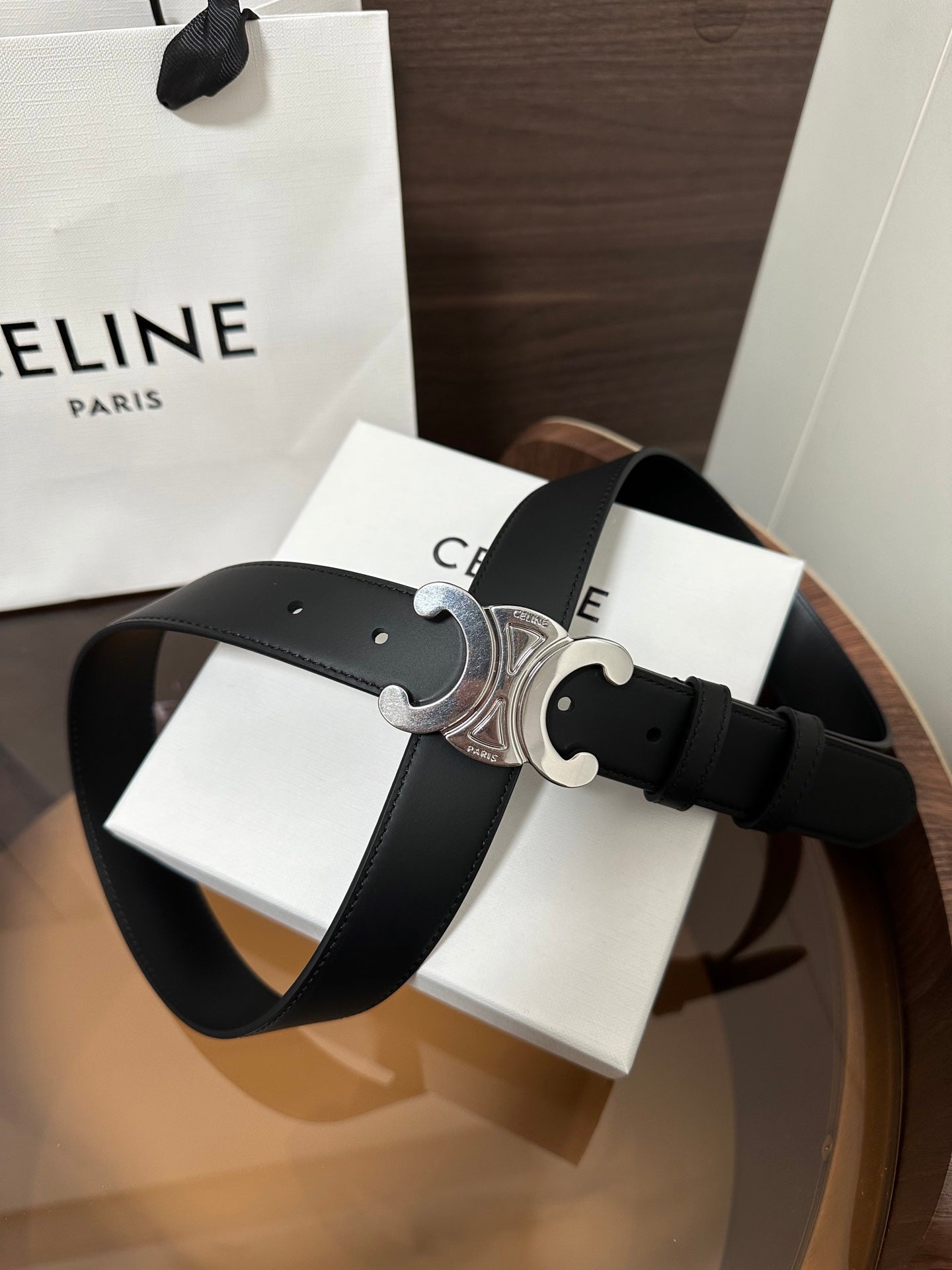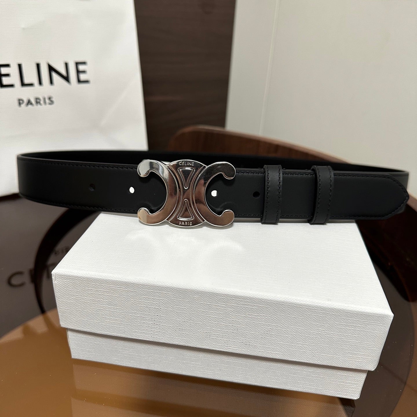 TRIOMPHE BELT 30MM IN BLACK CALFSKIN WITH SILVER BUCKLE