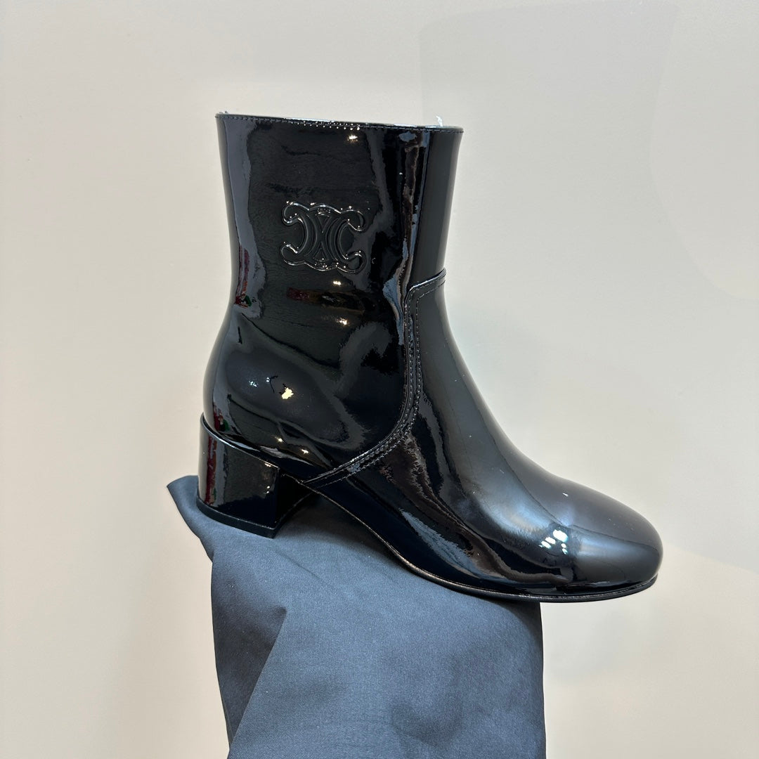 TRIPHOME CHUNKY HEEL BOOTS IN BLACK SHEEPSKIN