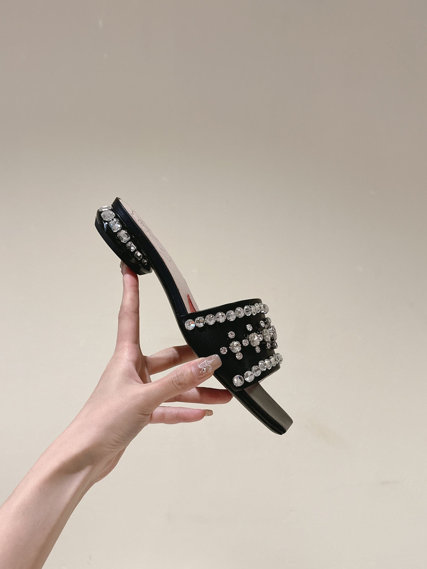 TRUMPET METALLIC MULES IN BLACK PATENT CALFSKIN WITH EMBELLISHED BUCKLE