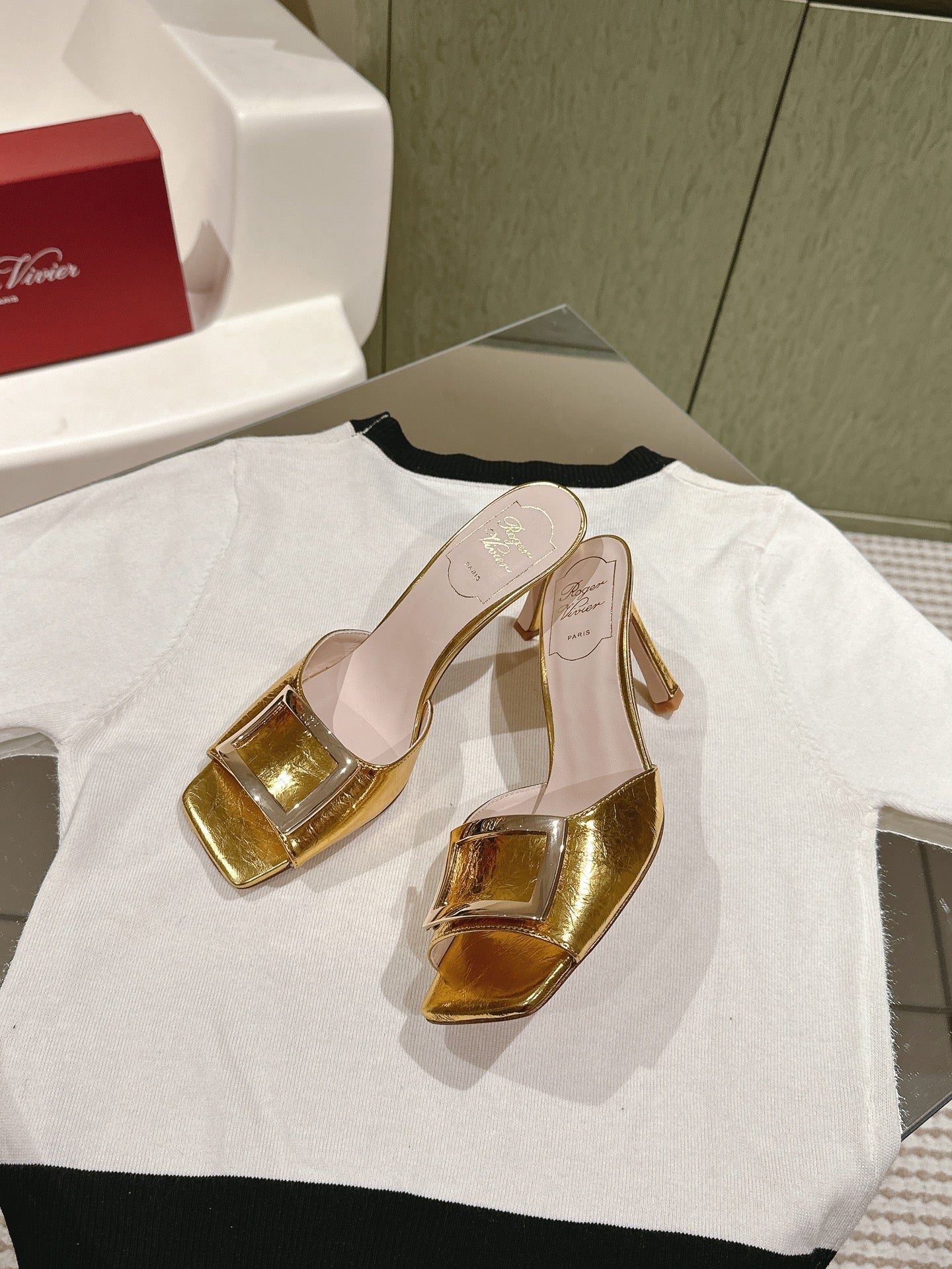 TRUMPET METALLIC MULES IN GOLD PATENT CALFSKIN