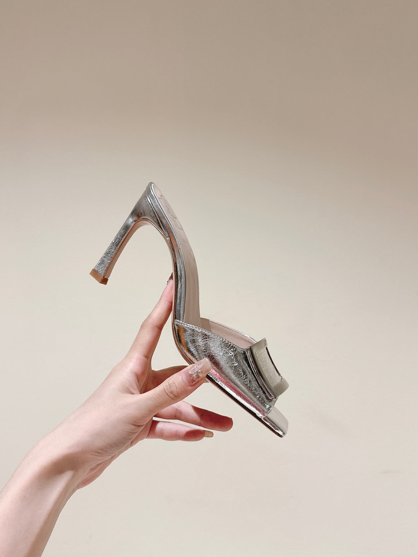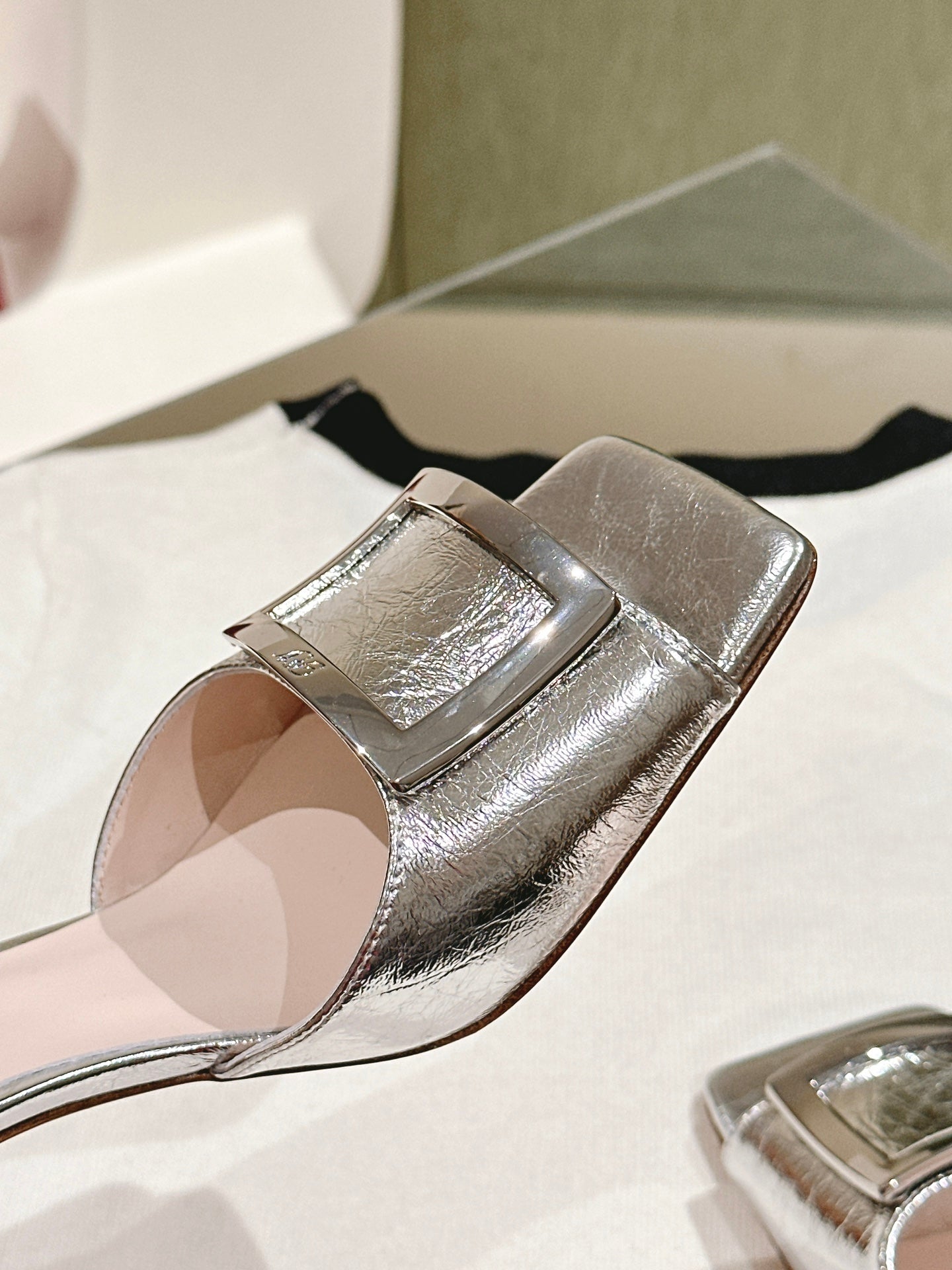 TRUMPET METALLIC MULES IN SILVER PATENT CALFSKIN