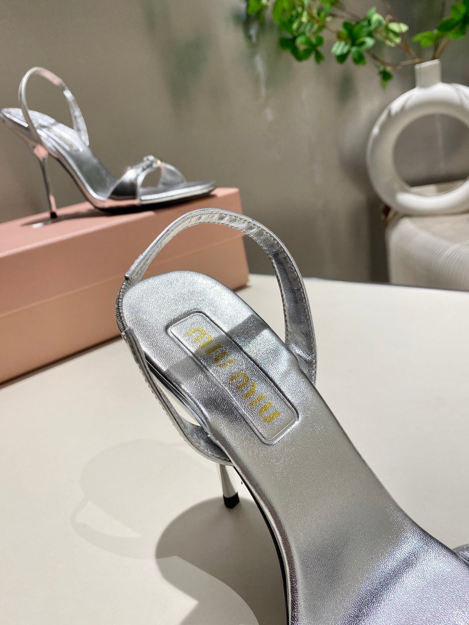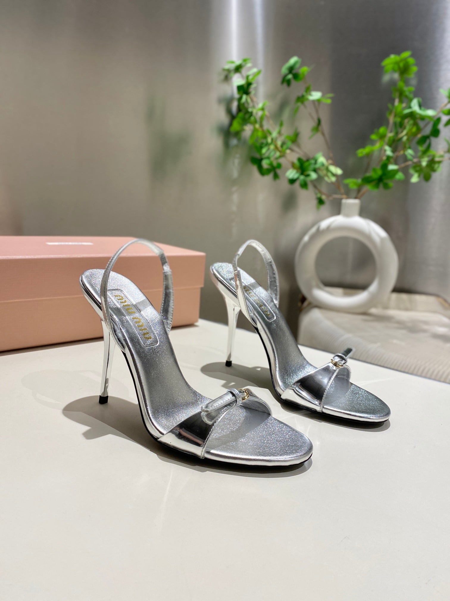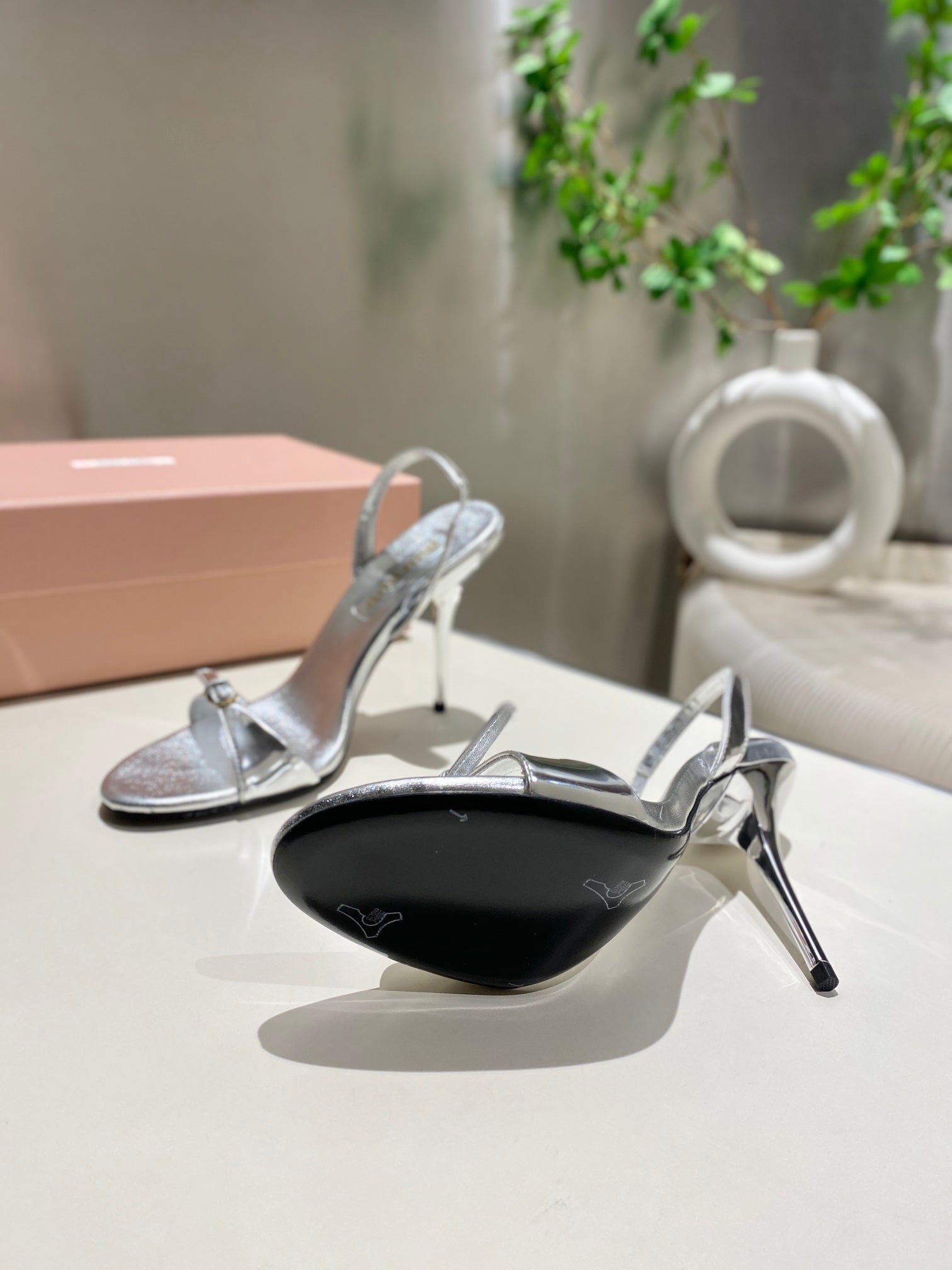 TWO STRAP HIGH HEELED SANDALS IN SILVER METALLIC GLOSSY SHEEPSKIN