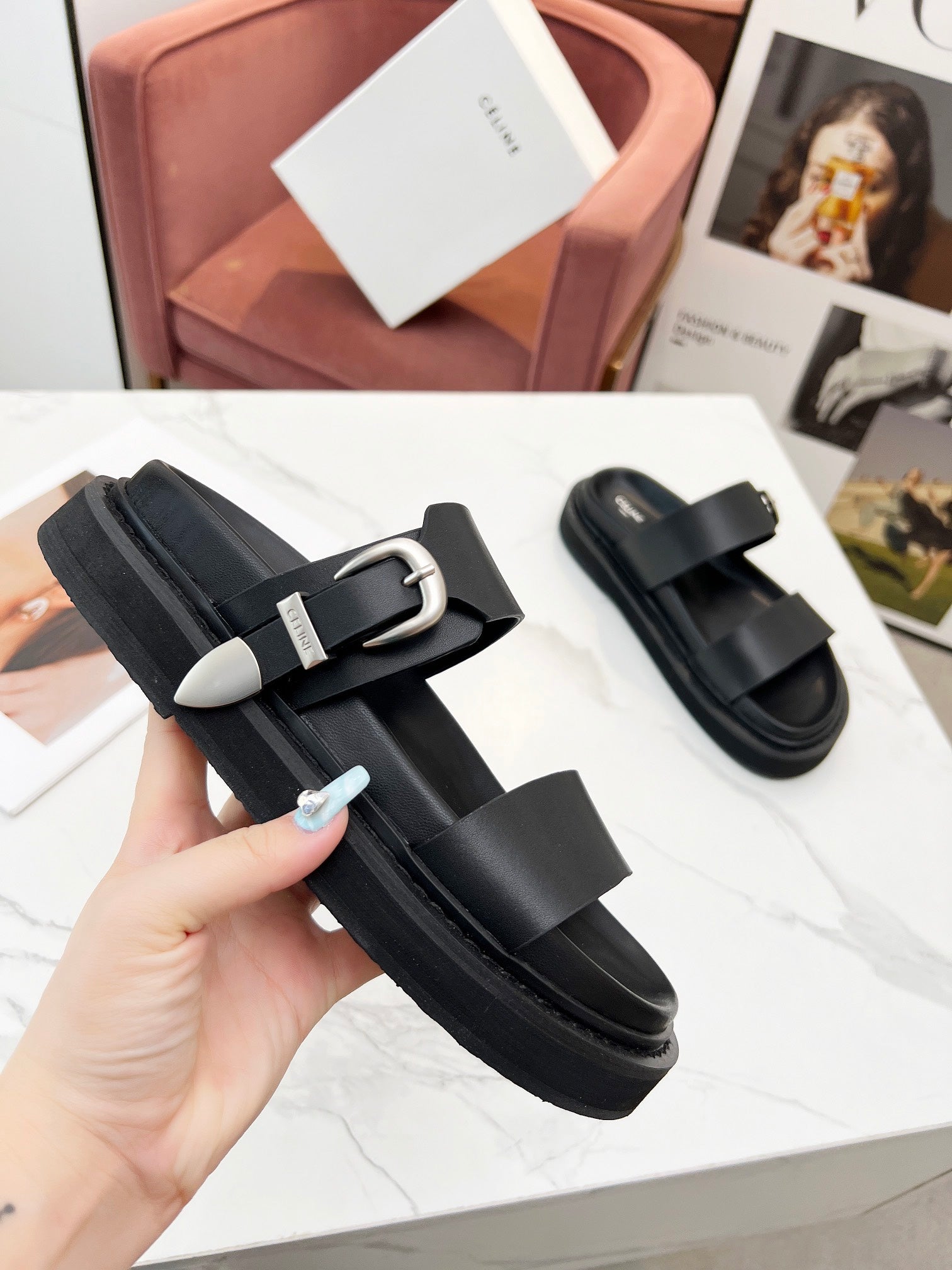 TWO-STRAP SANDALS IN BLACK CALFSKIN