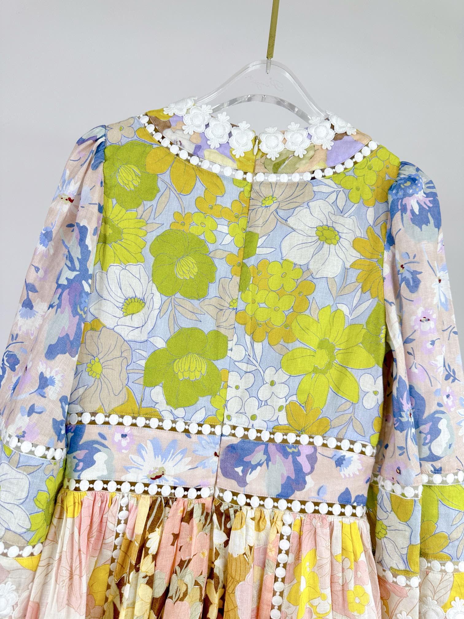 V-NECK FLORAL PRINT DRESS WITH LACE DETAIL