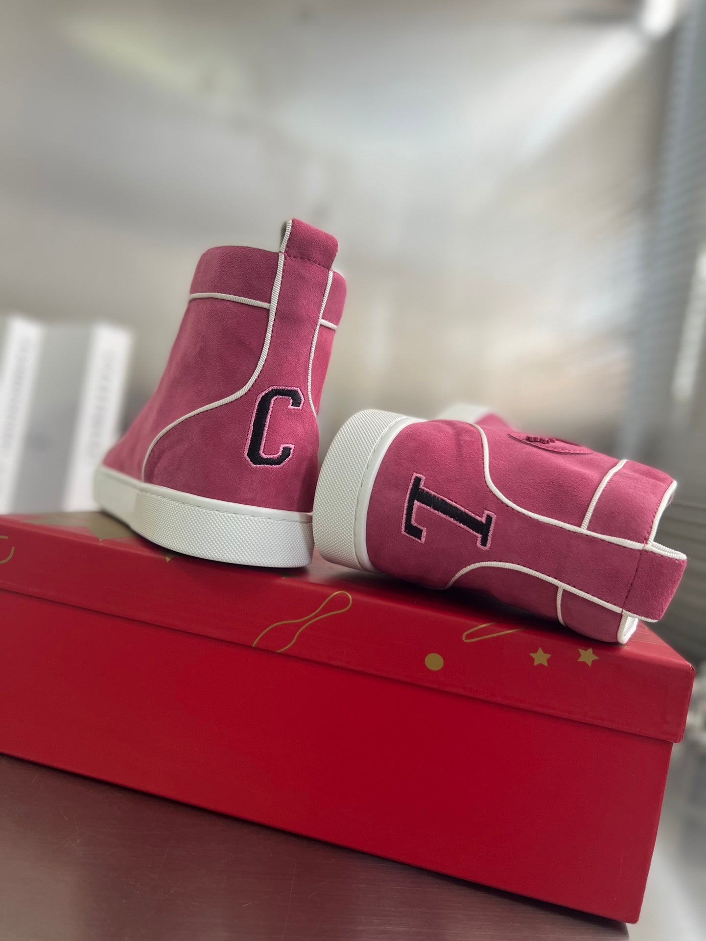 VARSILOUIS HIGH-TOP FLAT SNEAKERS IN ROSE PINK SUEDE
