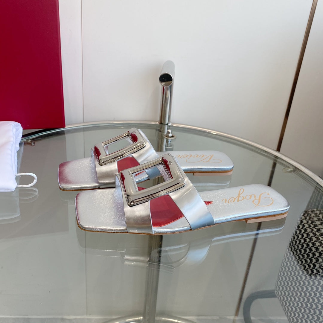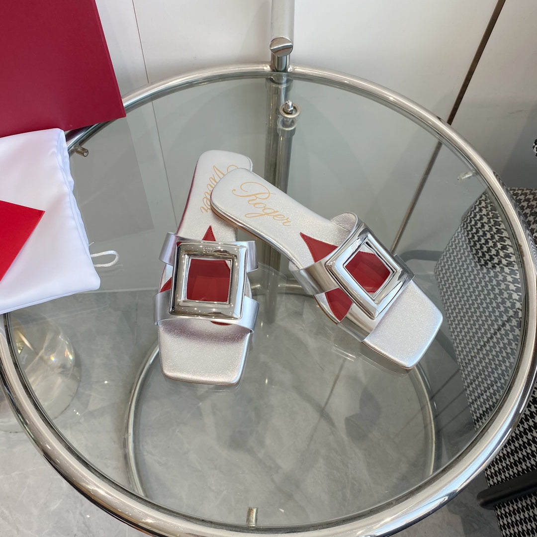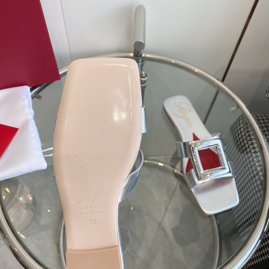 VIV' BY THE SEA LOVE METAL MULES IN SILVER PATENT CALFSKIN