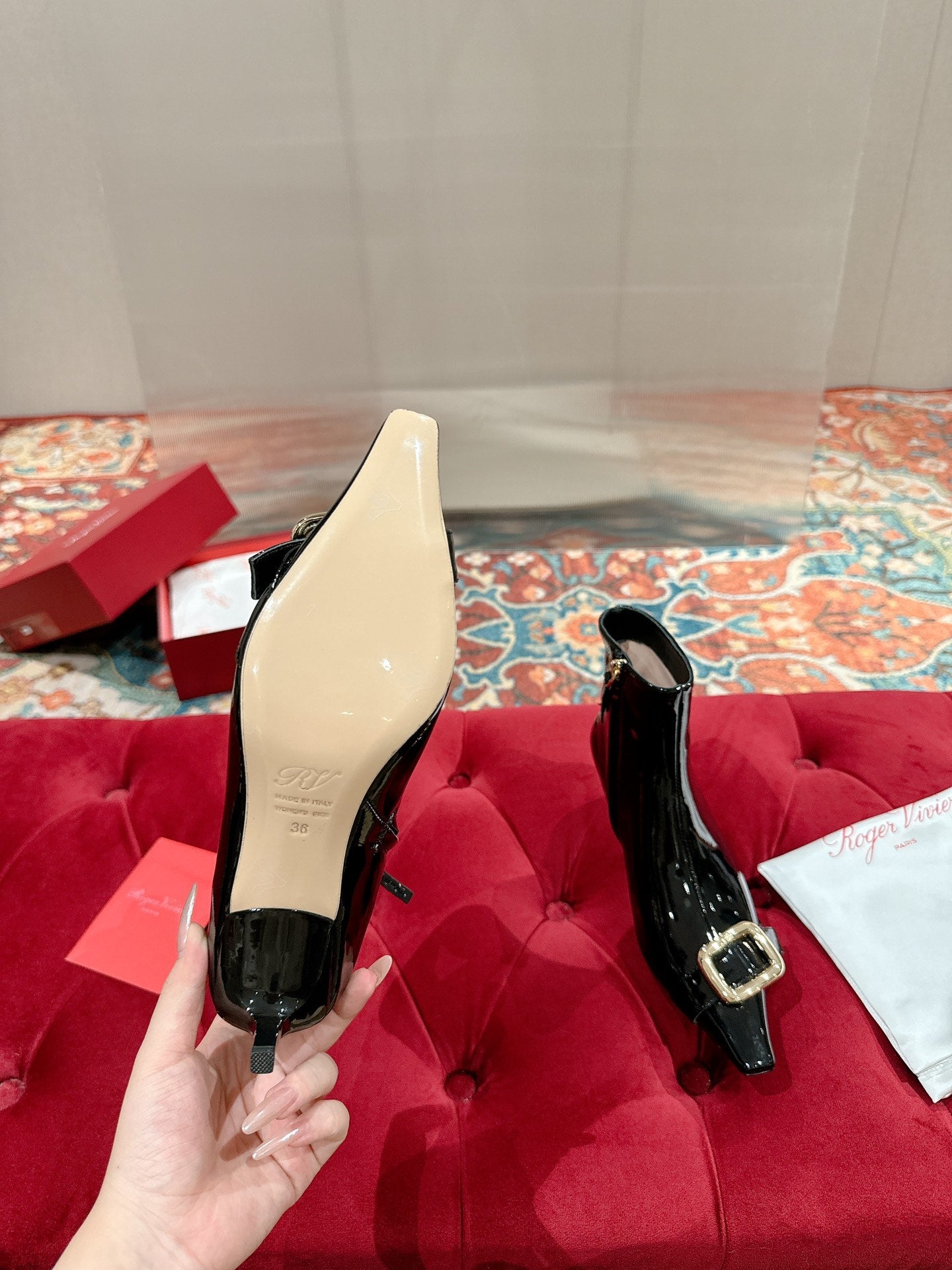 VIV CANARD ANKLE BOOTS IN BLACK PATENT CALFSKIN