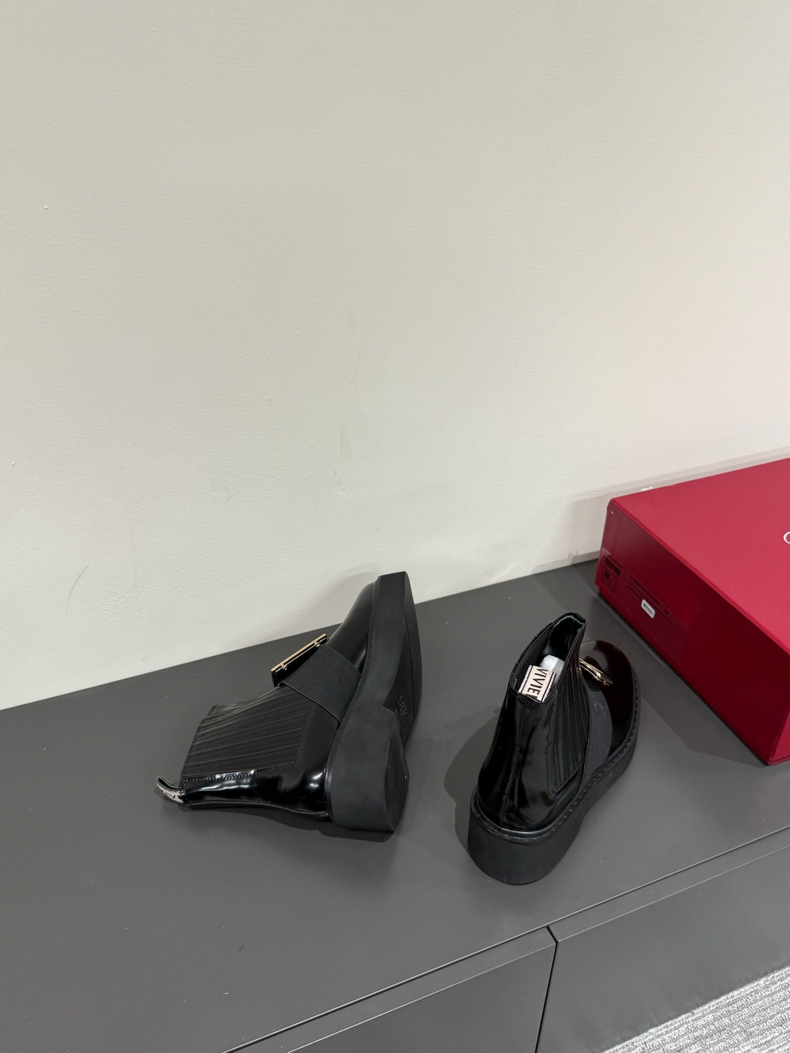 VIV' RANGERS CHELSEA BOOTIES IN BLACK CALFSKIN GOLD BUCKLE