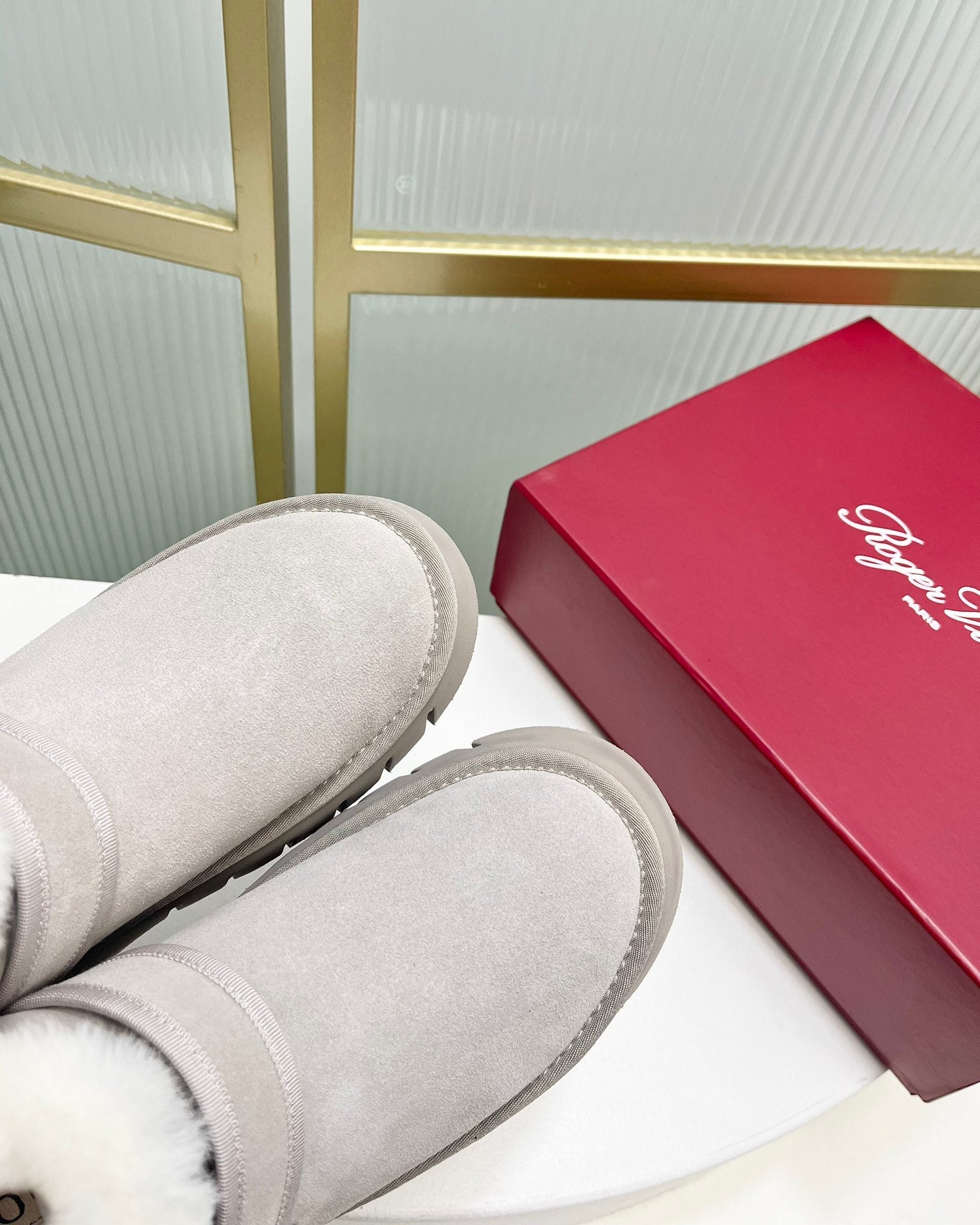 VIV’ WINTER FUR STRASS BUCKLE ANKLE BOOTS IN LIGHT GREY SUEDE