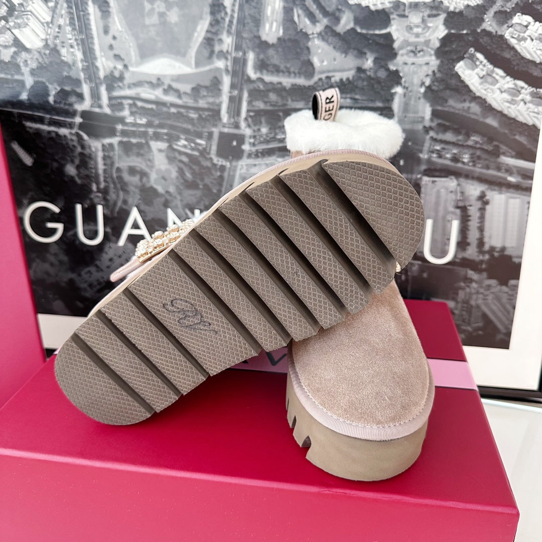 VIV' WINTER FUR STRASS BUCKLE ANKLE BOOTS IN TAUPE SUEDE