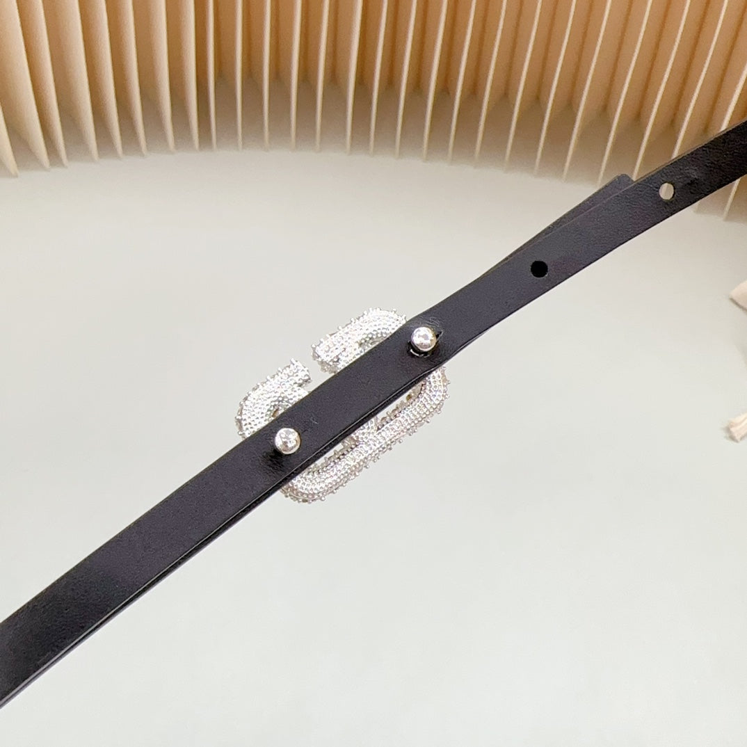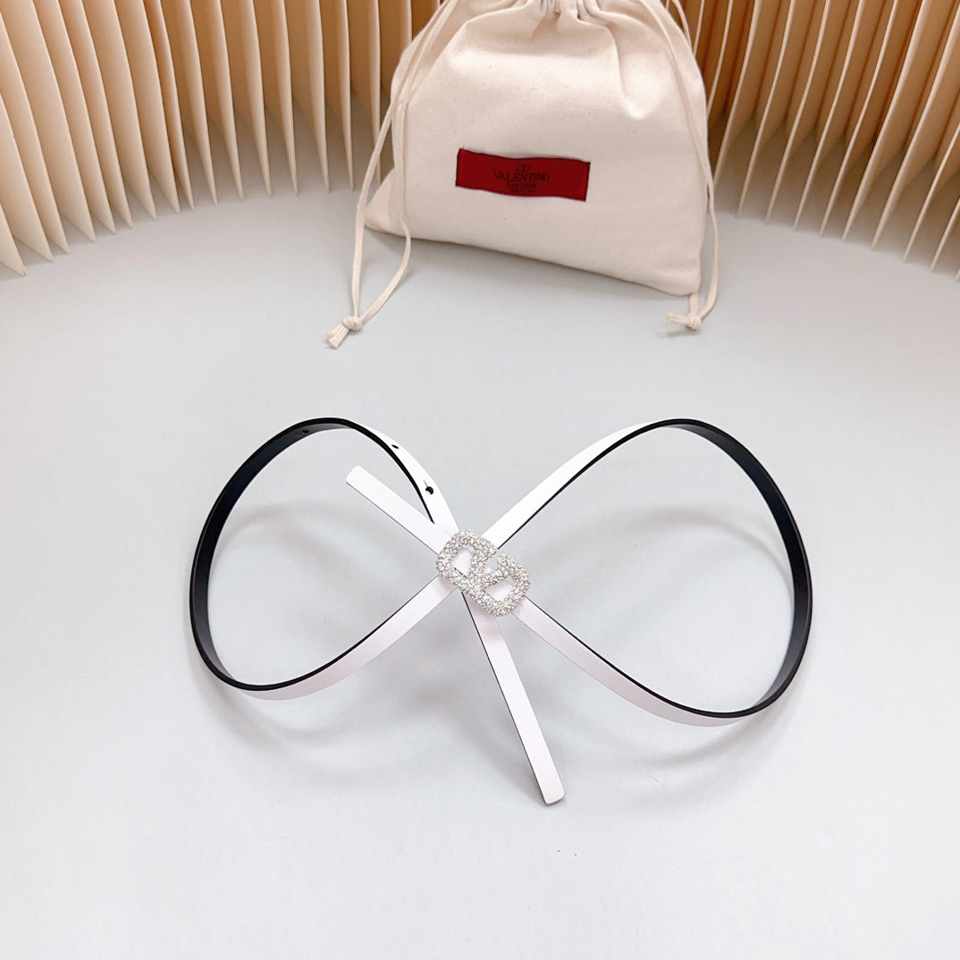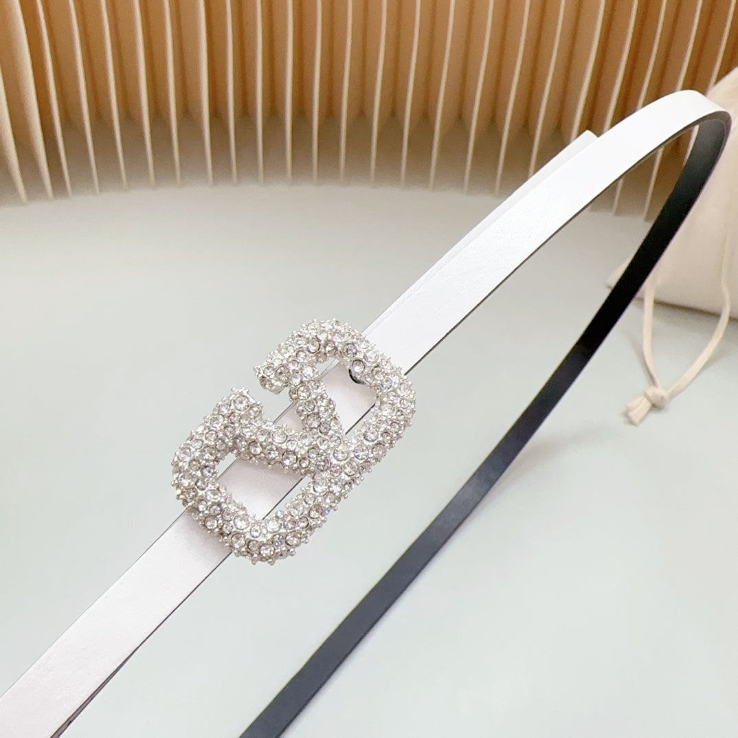 VL Belt 8mm Buckle Silver Diamond Leather White Black
