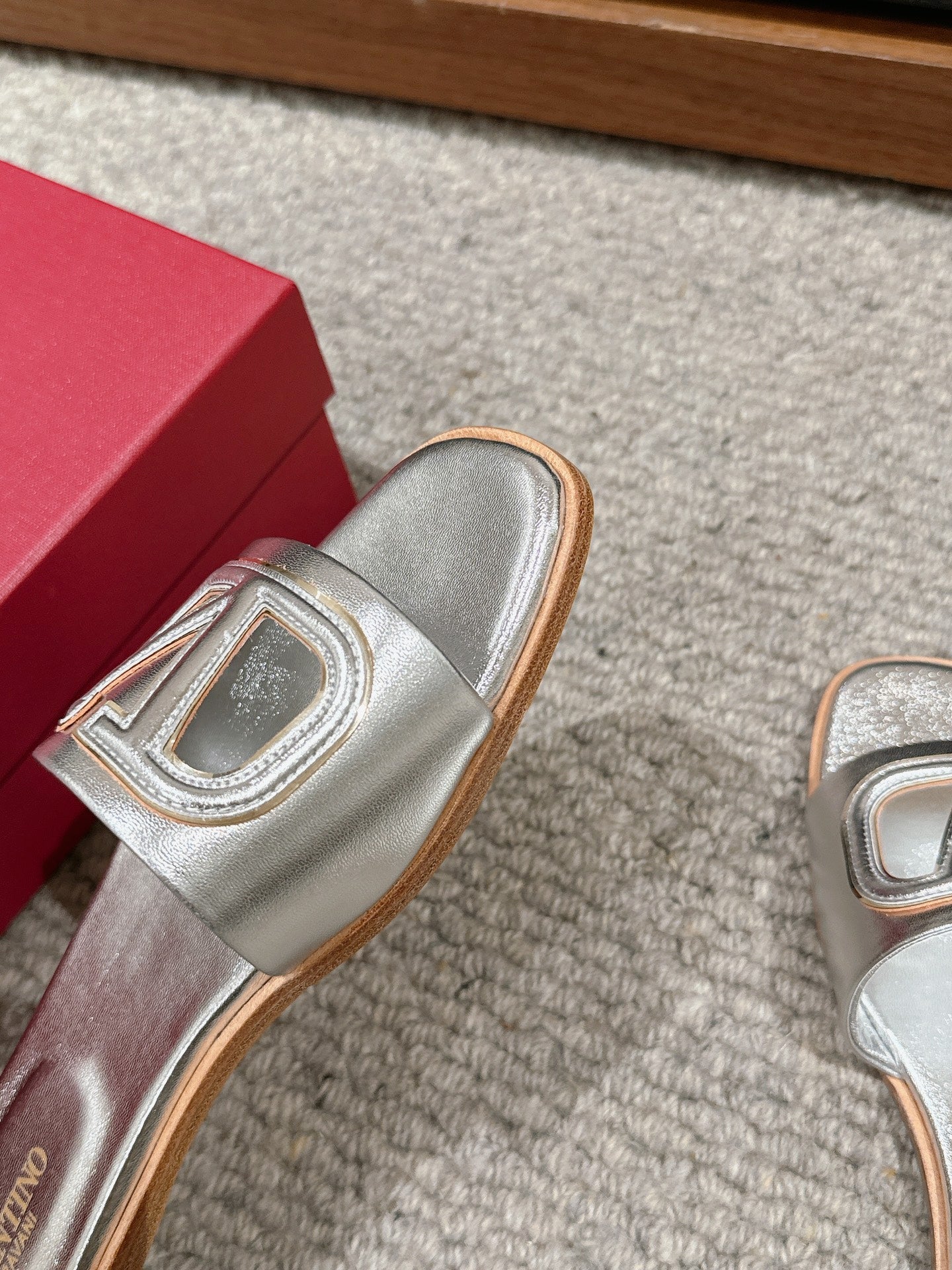 VLOGO CUT-OUT SILVER CALFSKIN SLIDE SANDAL