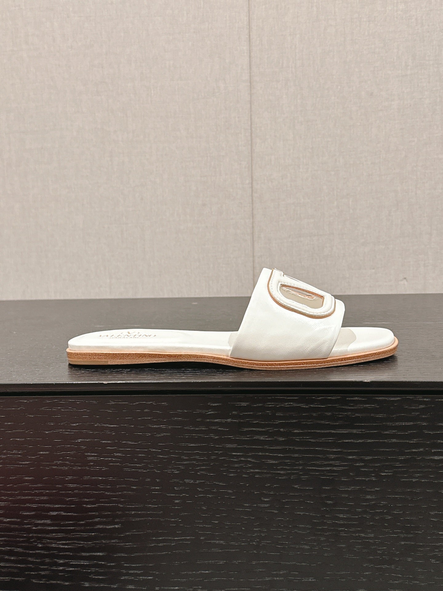VLOGO CUT-OUT WHITE CALFSKIN SLIDE SANDAL