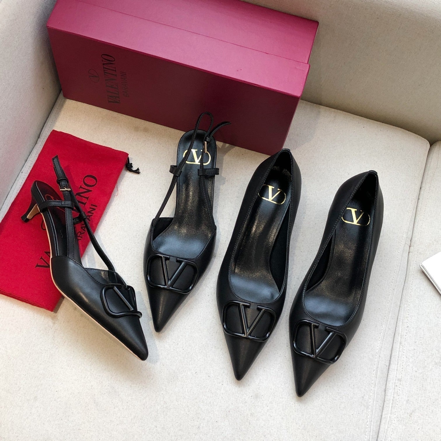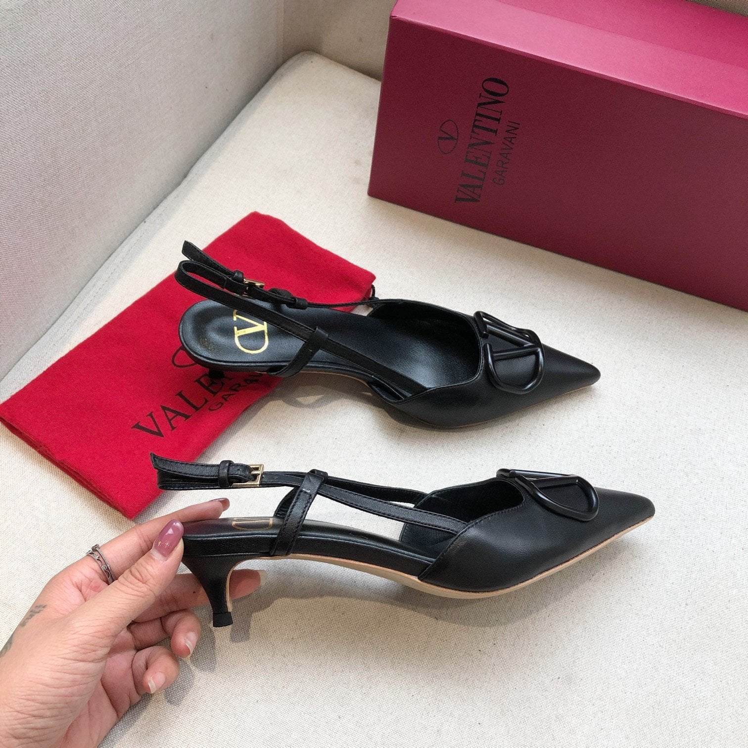 VLOGO SIGNATURE BLACK CALFSKIN HIGH SLINGBACK PUMP 4 CM
