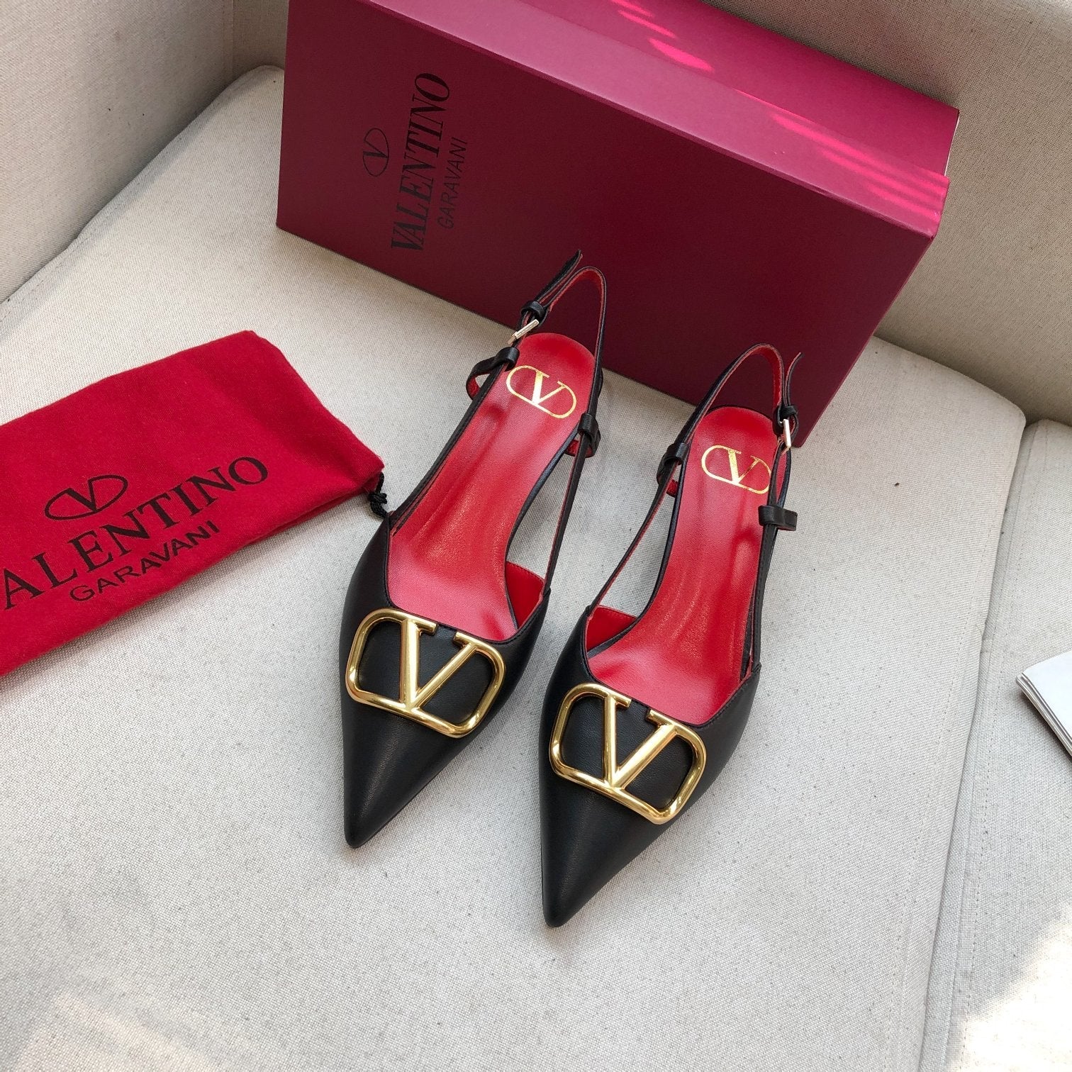 VLOGO SIGNATURE BLACK CALFSKIN HIGH SLINGBACK PUMP 4 CM WITH GOLD LOGO