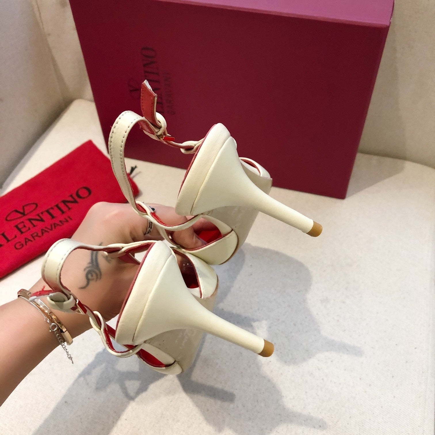 VLOGO SIGNATURE WHITE CALFSKIN HIGH SLINGBACK PUMP 7 CM WITH GOLD LOGO