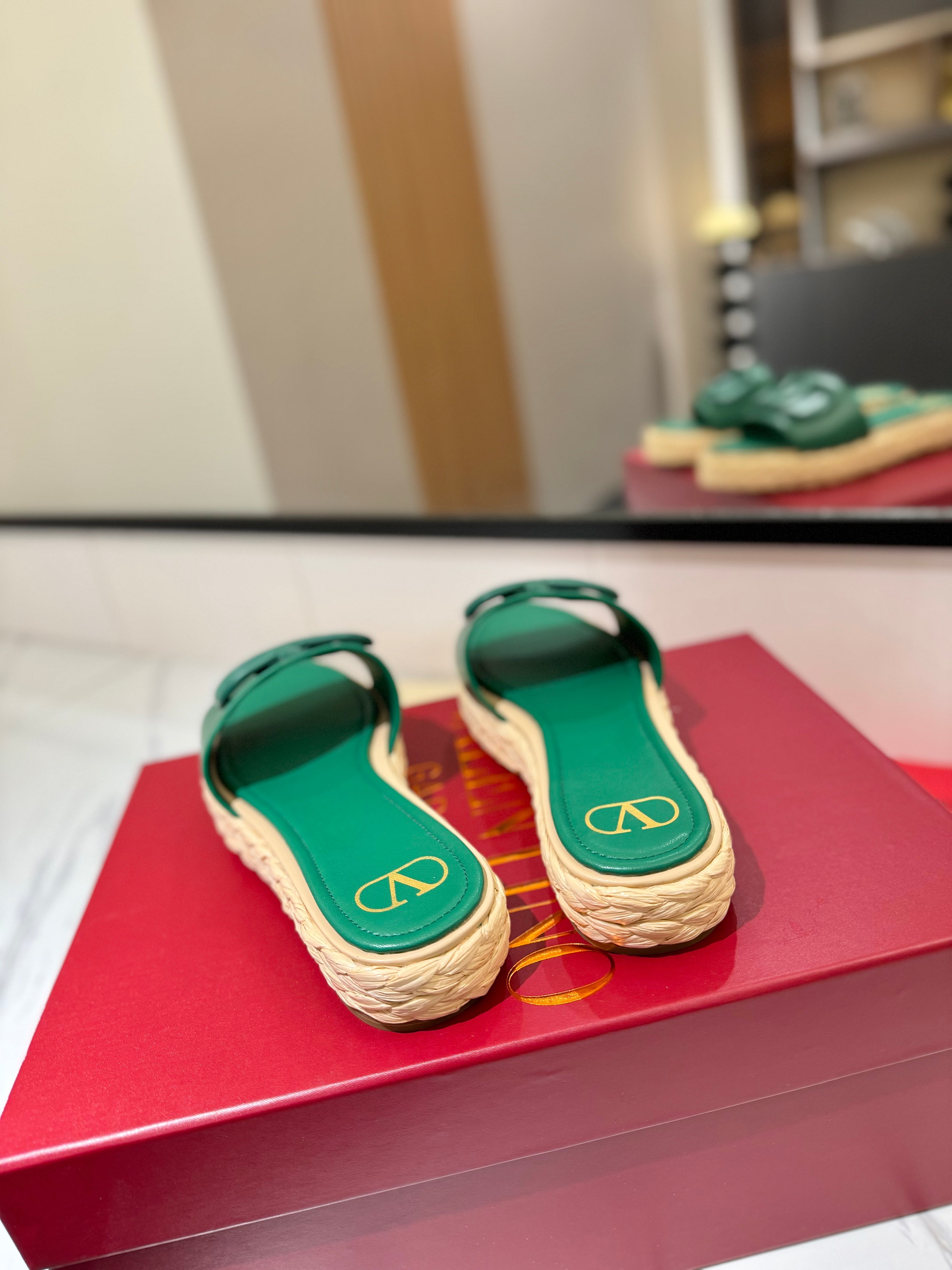 VLTN ESPADRILLE SLIDES 25S IN DARK GREEN LAMBSKIN STYLE 9