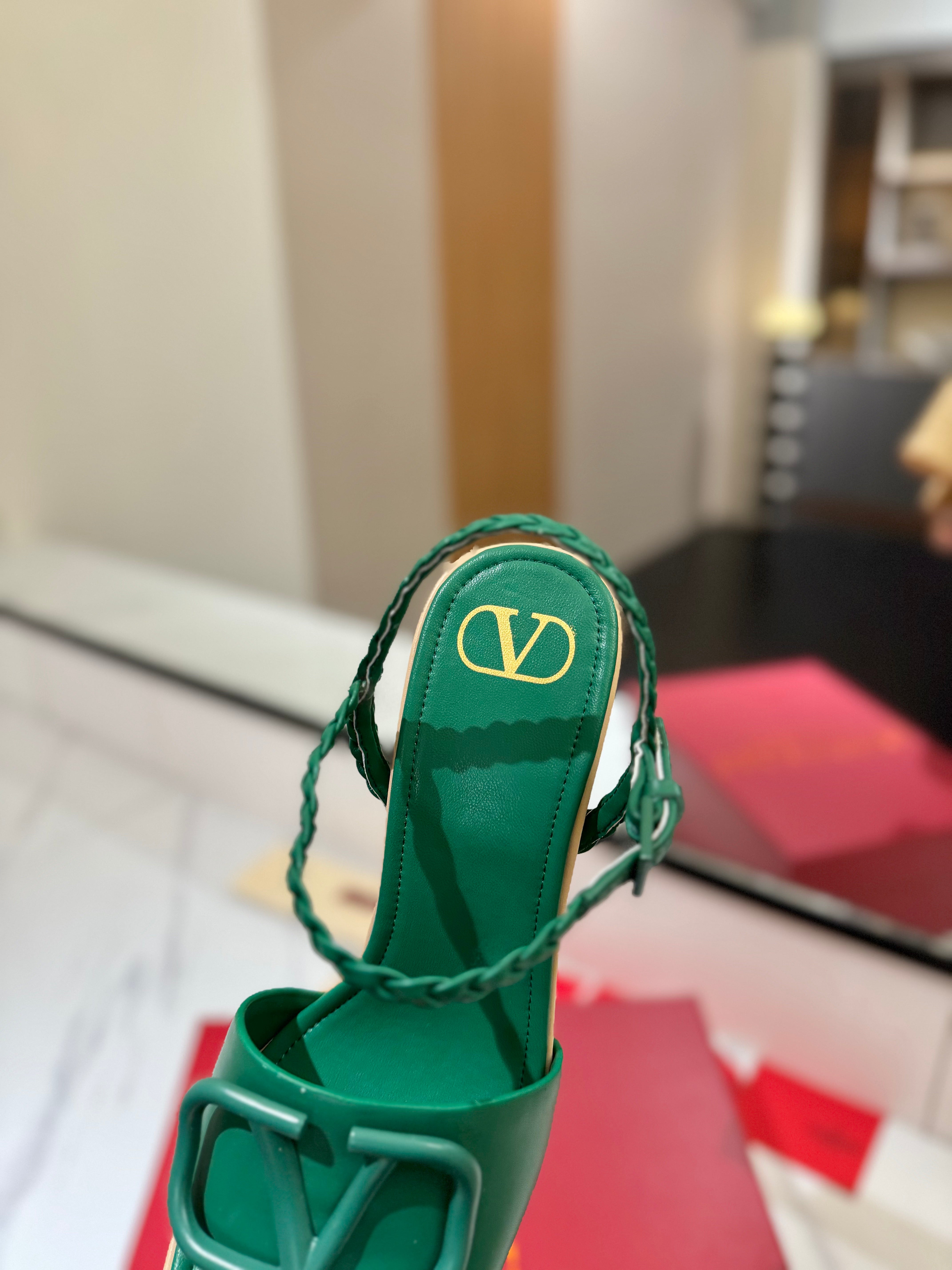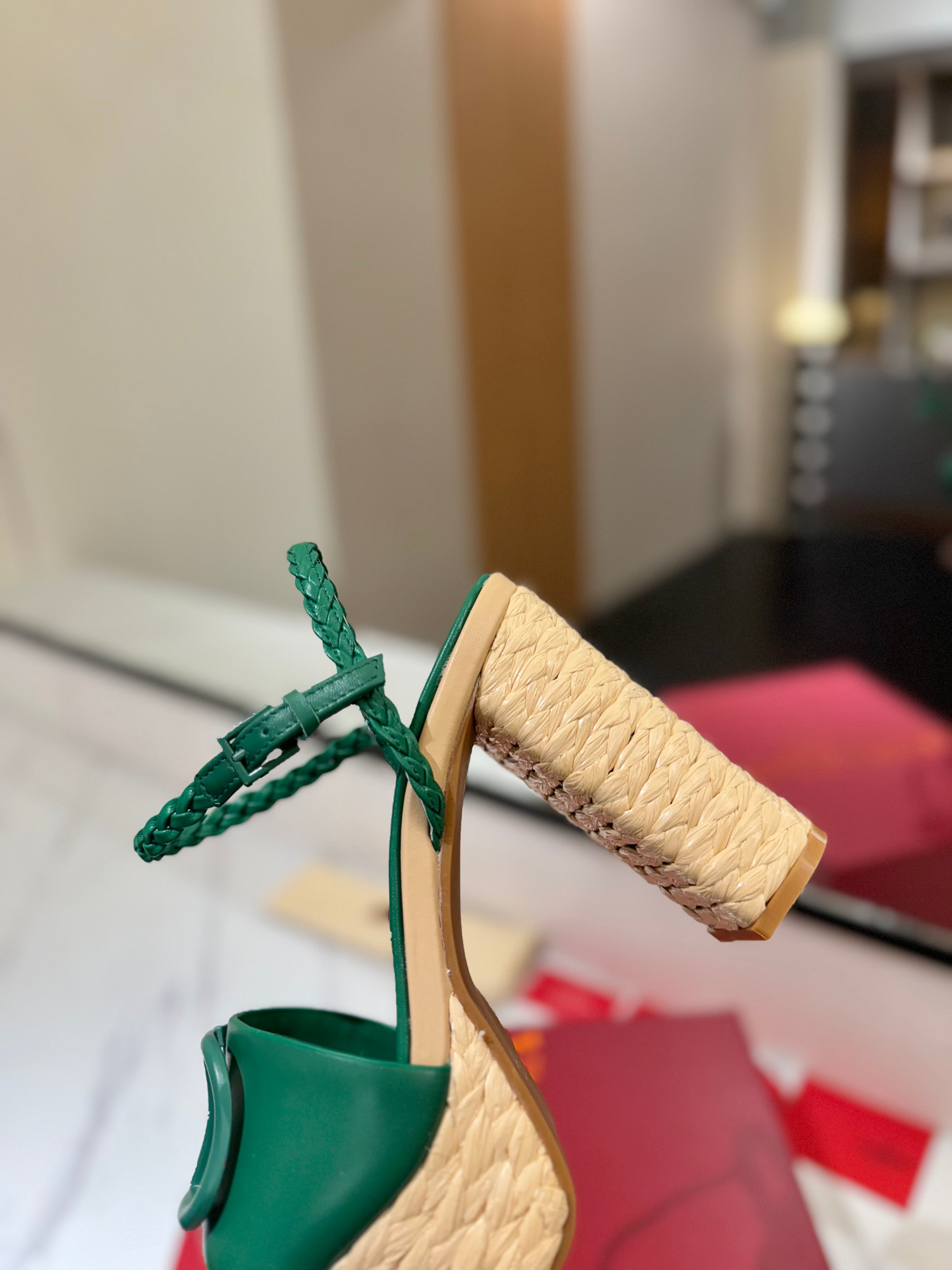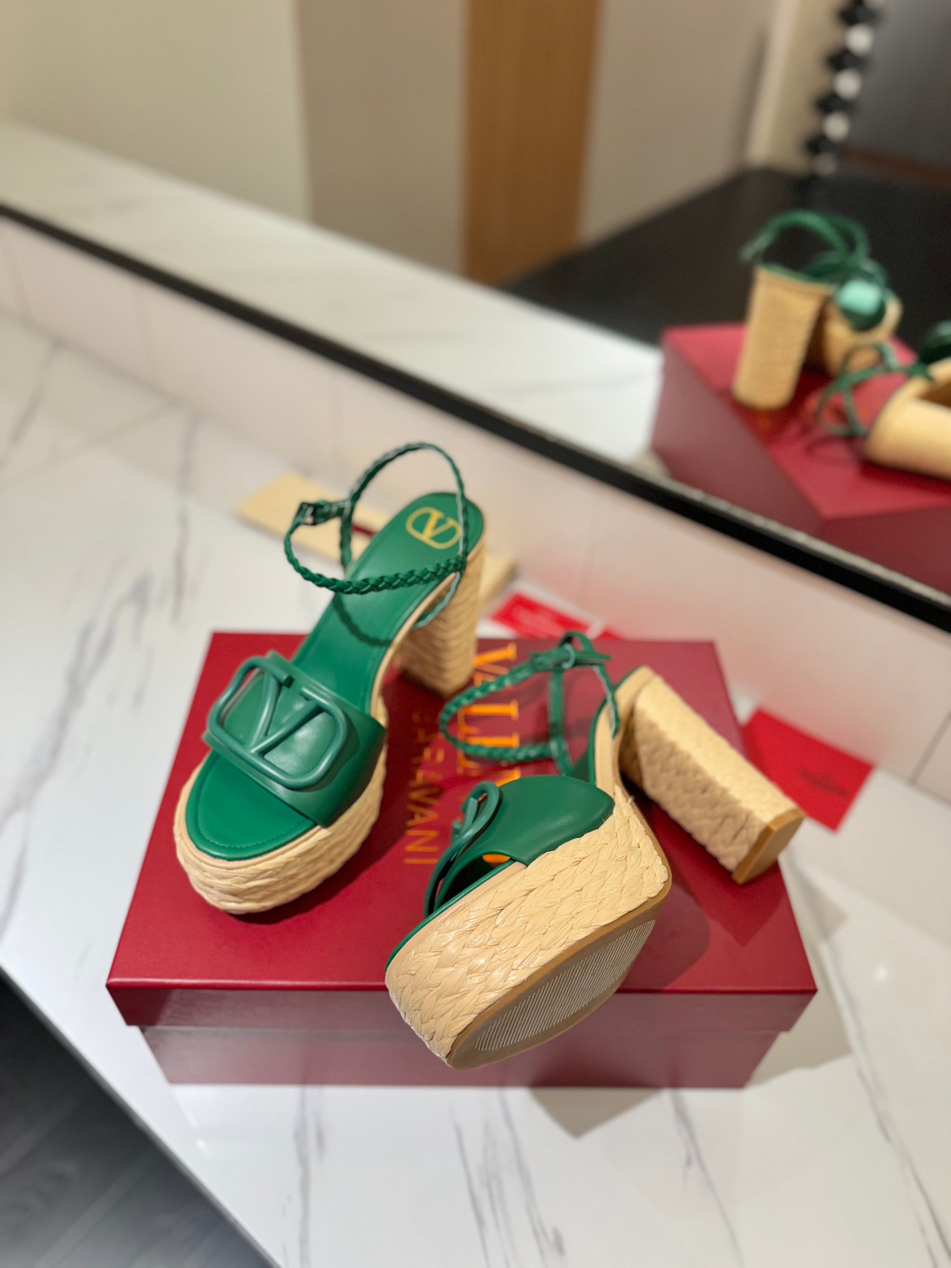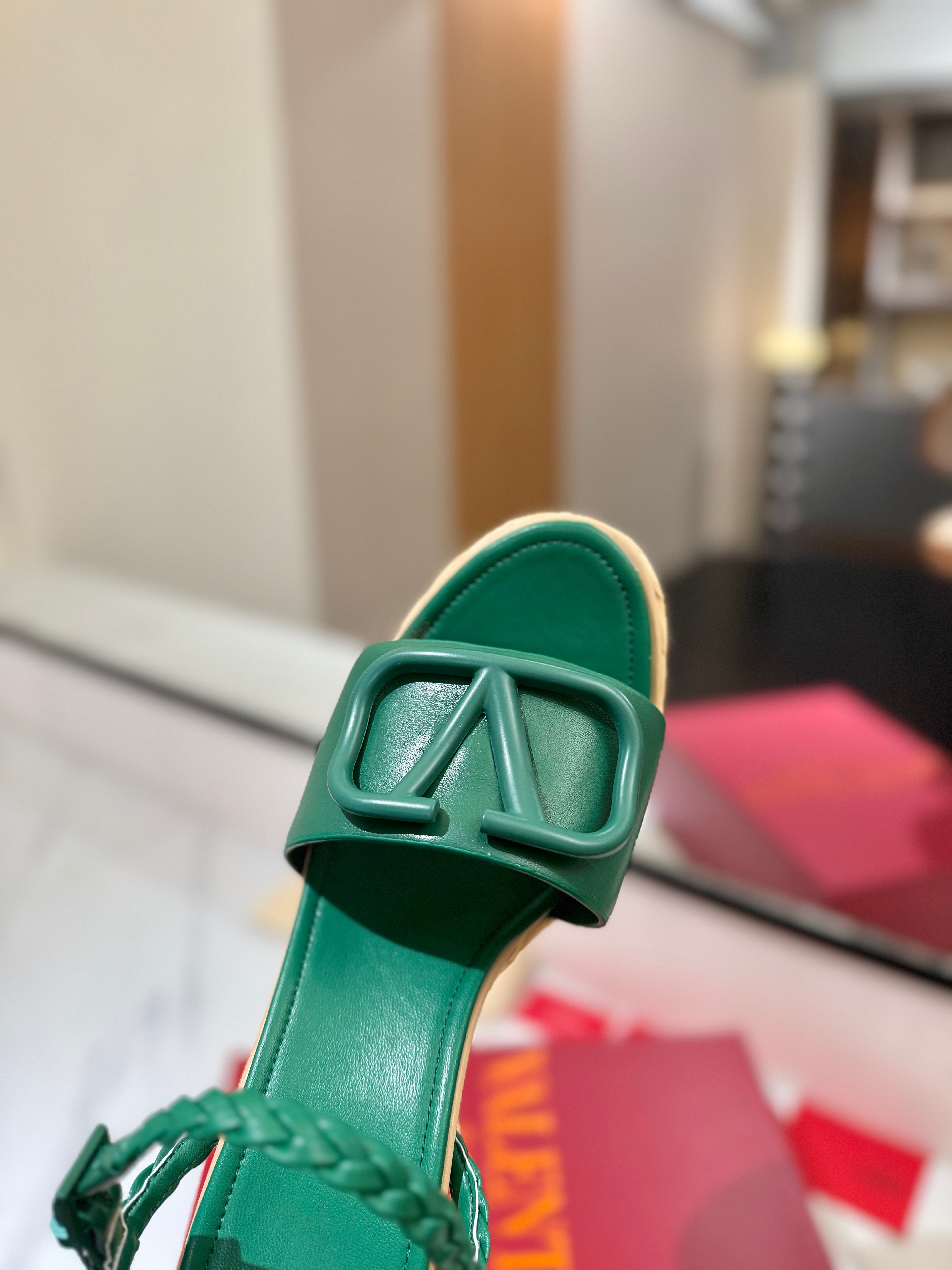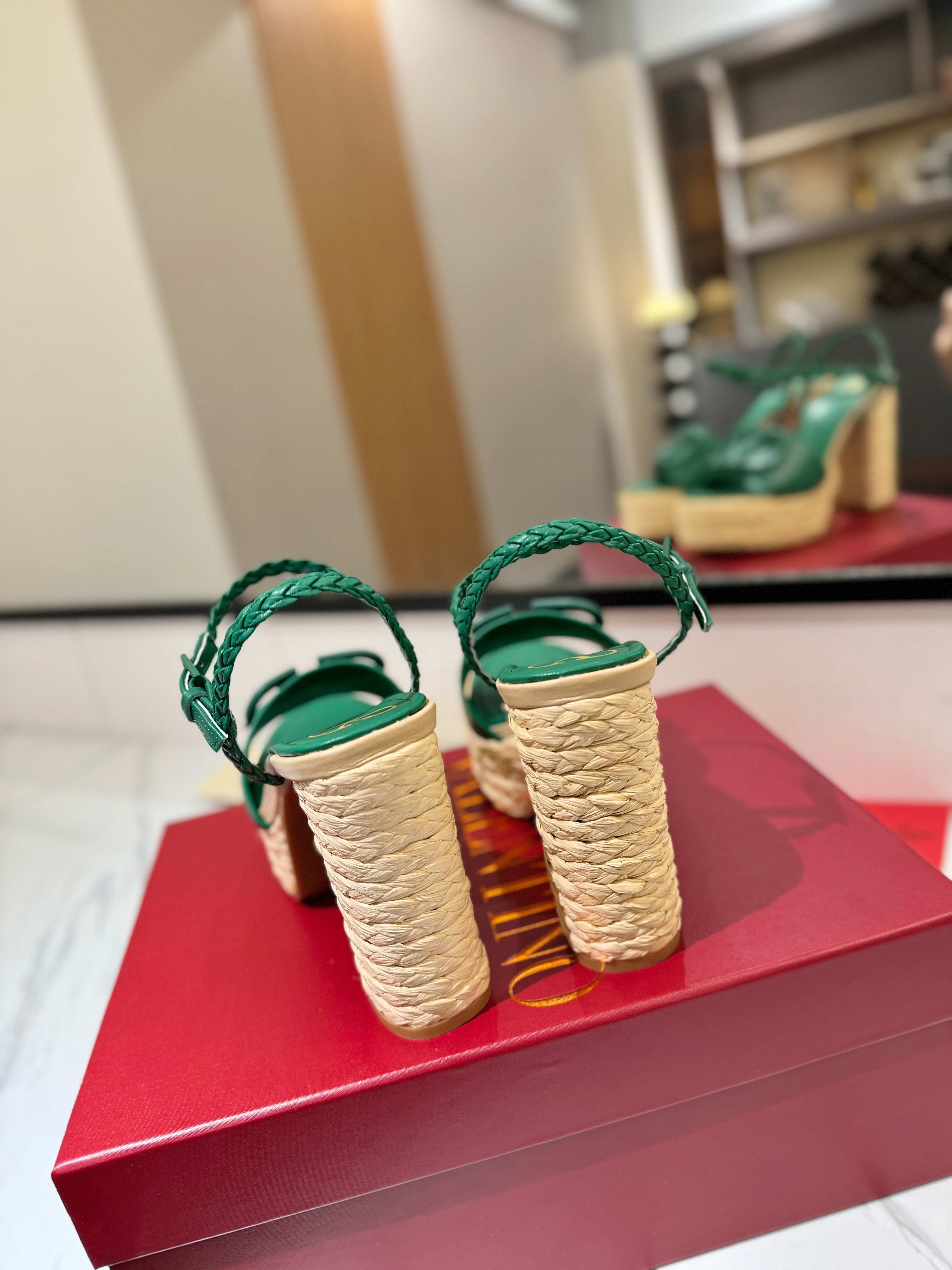 VLTN ESPADRILLE WEDGE SANDALS 25S 115 MM IN DARK GREEN LAMBSKIN