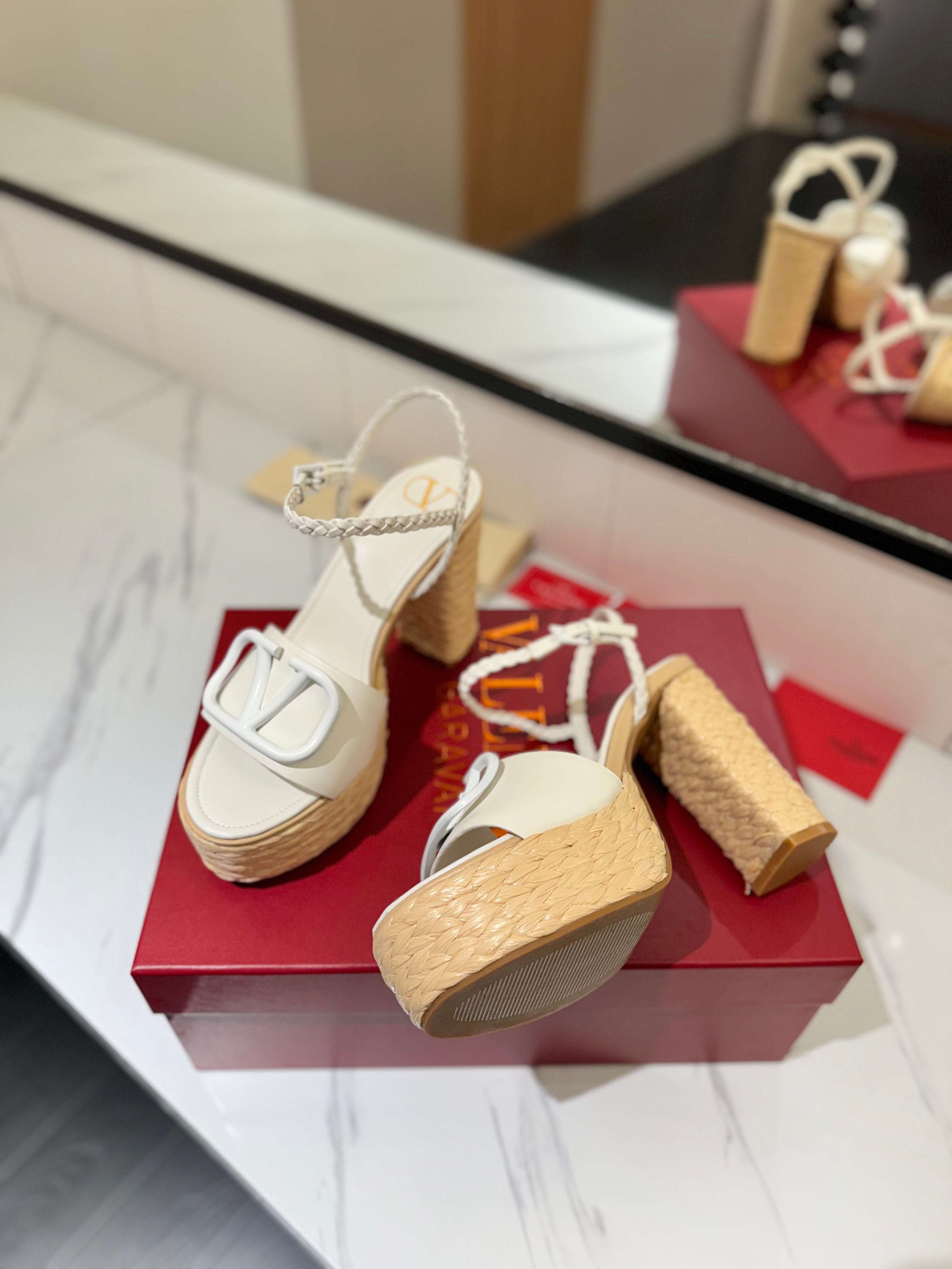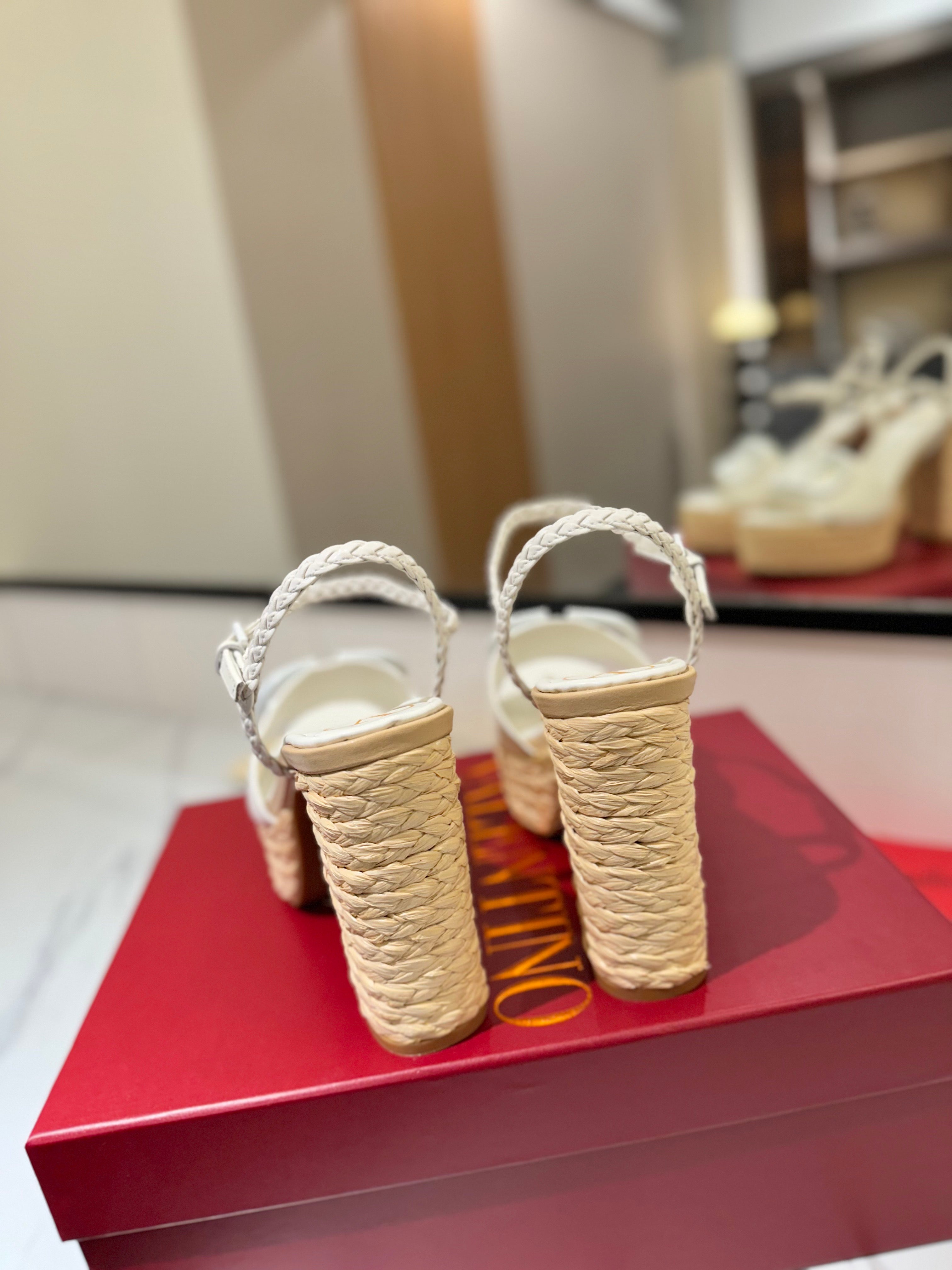 VLTN ESPADRILLE WEDGE SANDALS 25S 115 MM IN WHITE LAMBSKIN