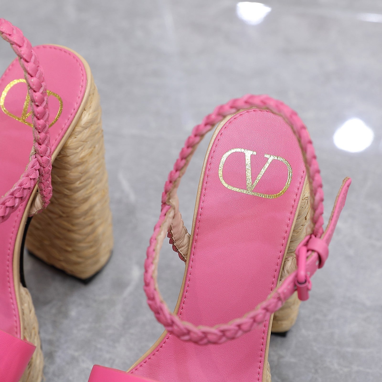 VLTN ESPADRILLE WEDGE SANDALS 25S 130 MM IN PINK LAMBSKIN