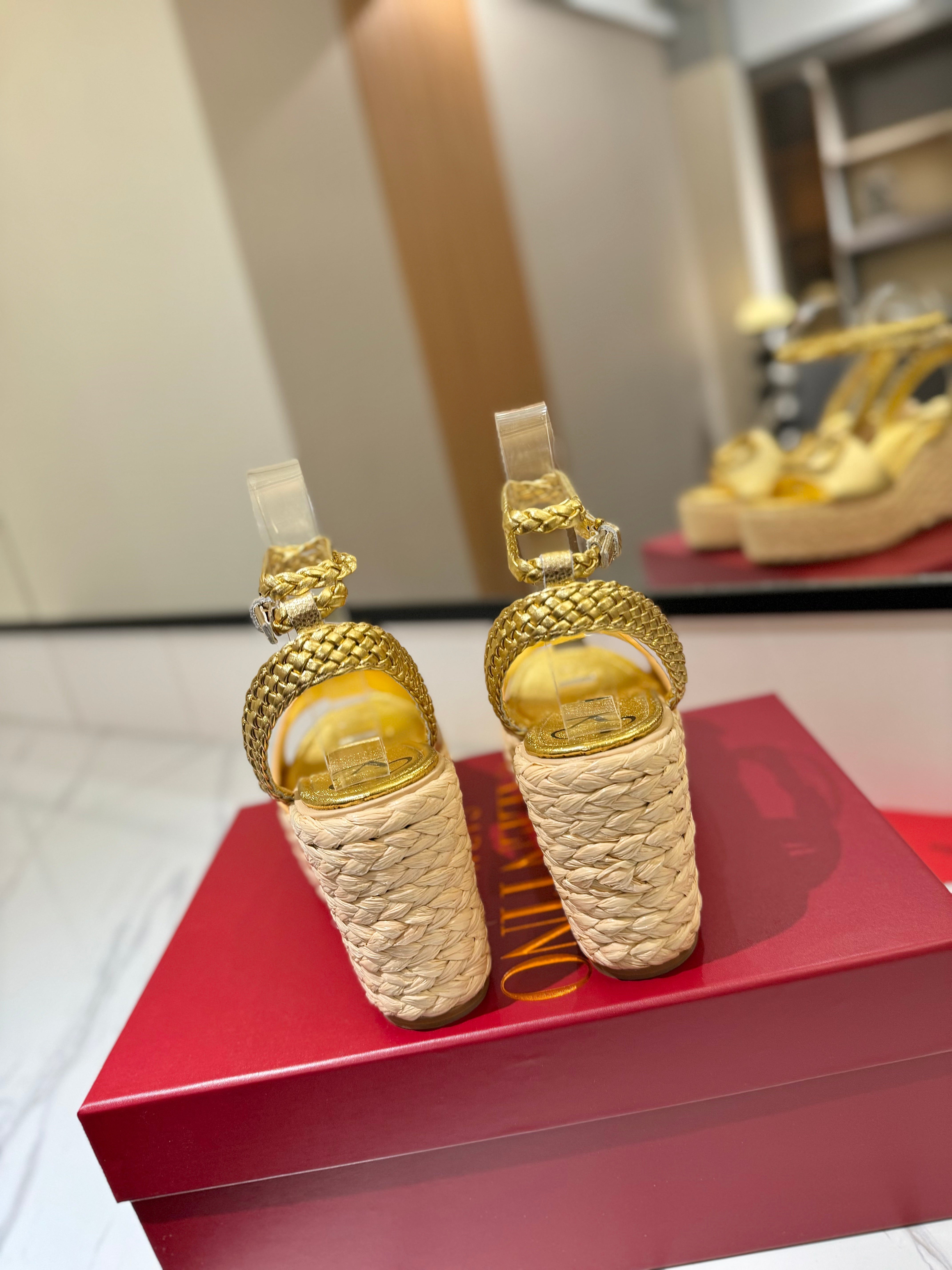 VLTN ESPADRILLE WEDGE SANDALS 25S 90 MM IN GOLD LAMBSKIN STYLE 1
