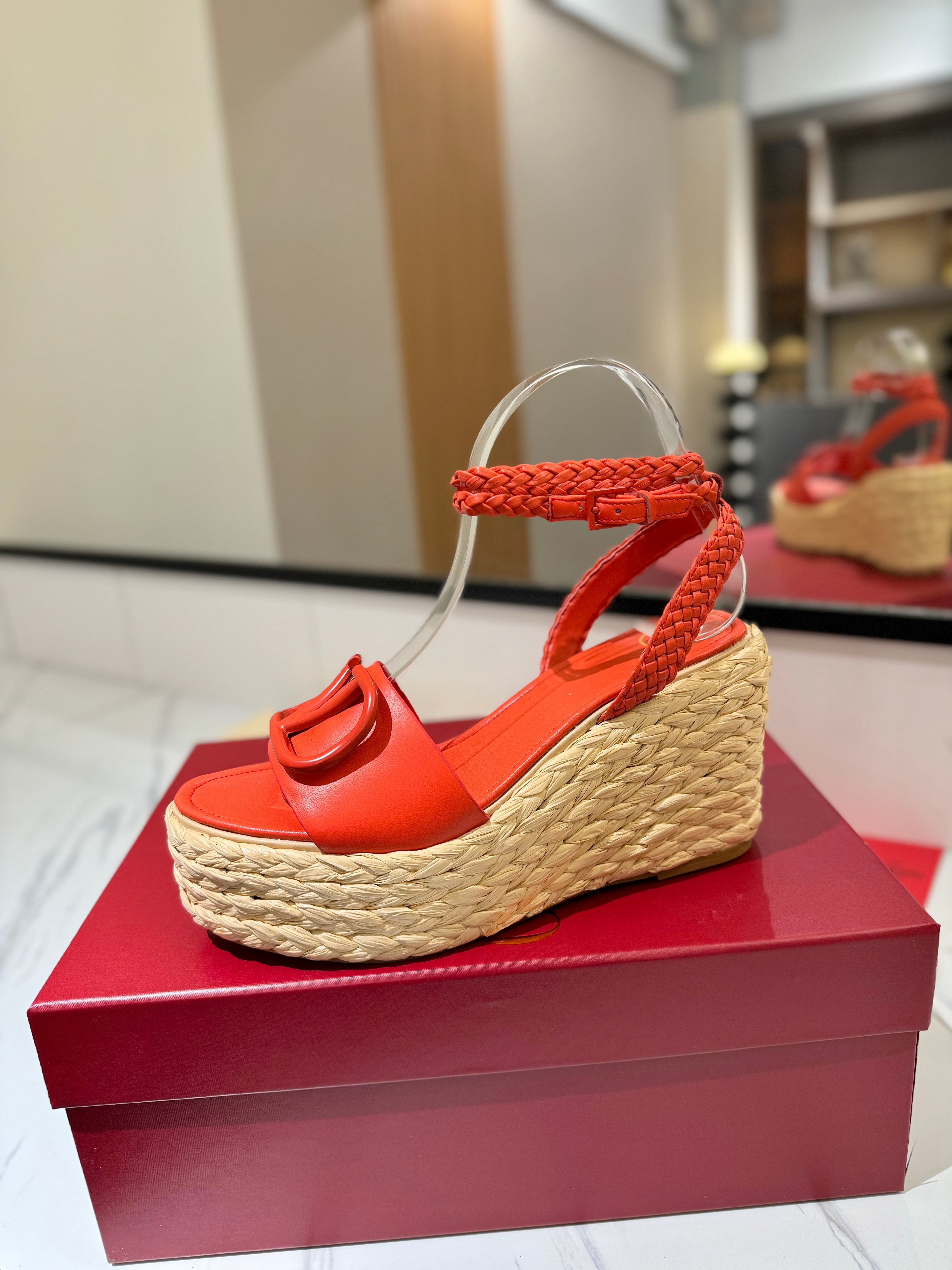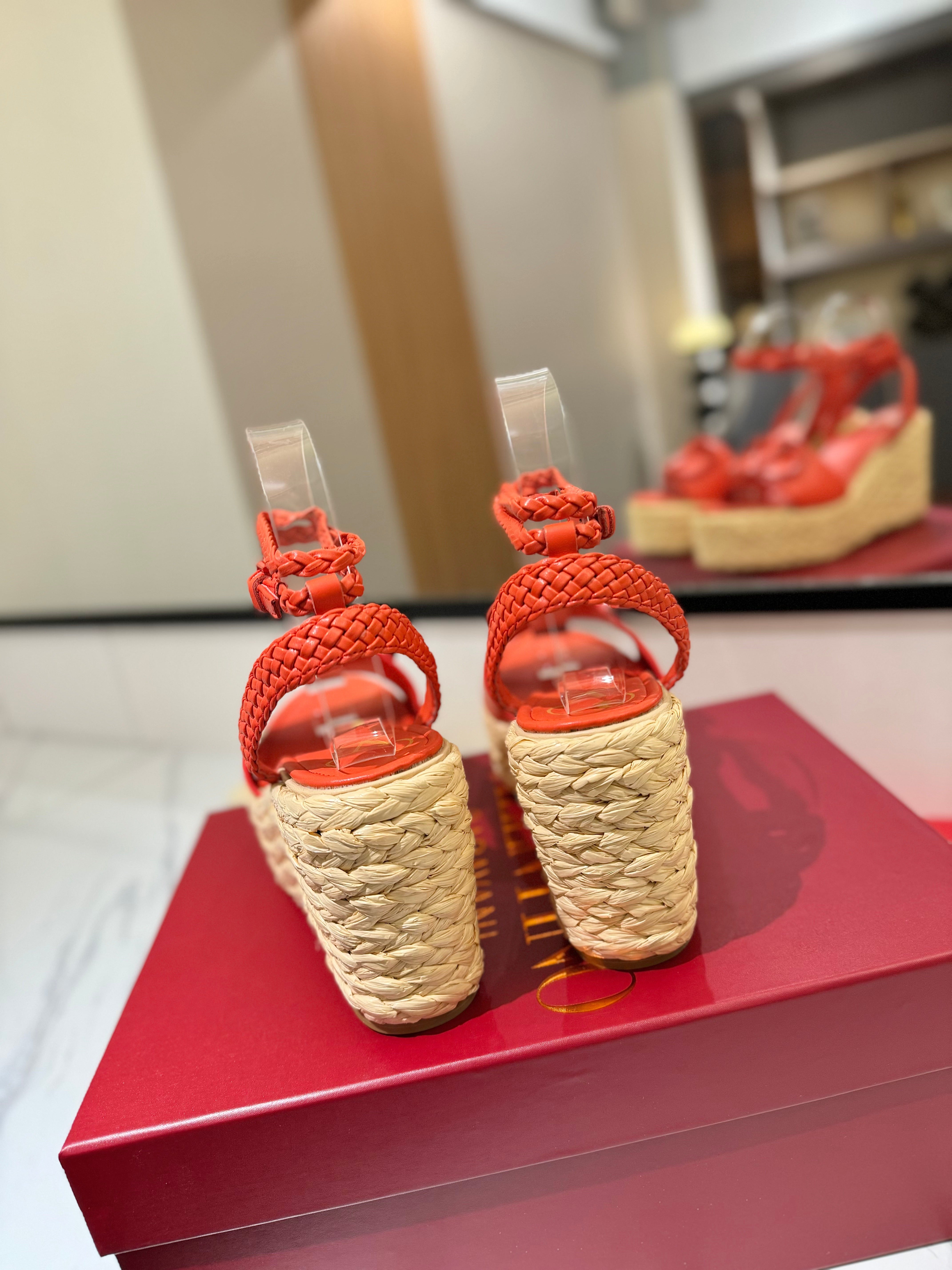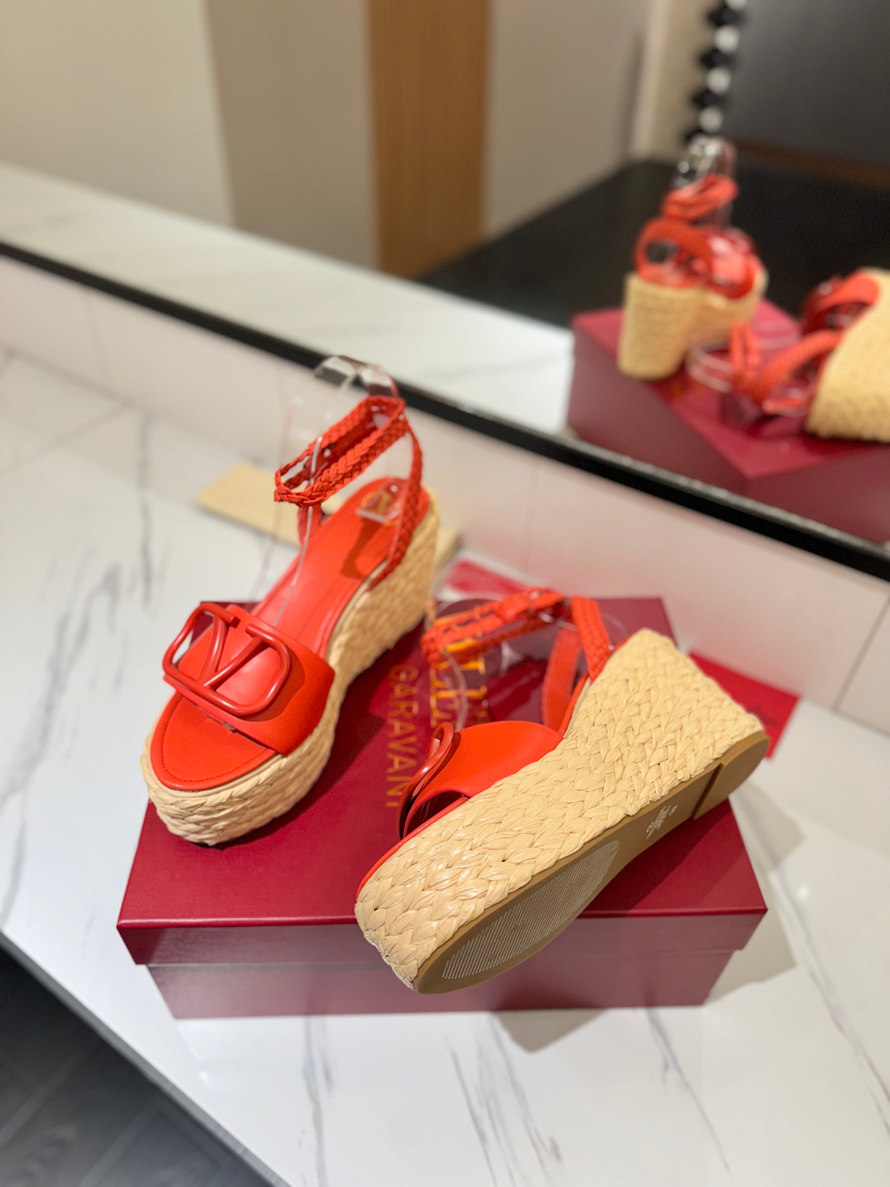 VLTN ESPADRILLE WEDGE SANDALS 25S 90 MM IN ORANGE LAMBSKIN STYLE 8