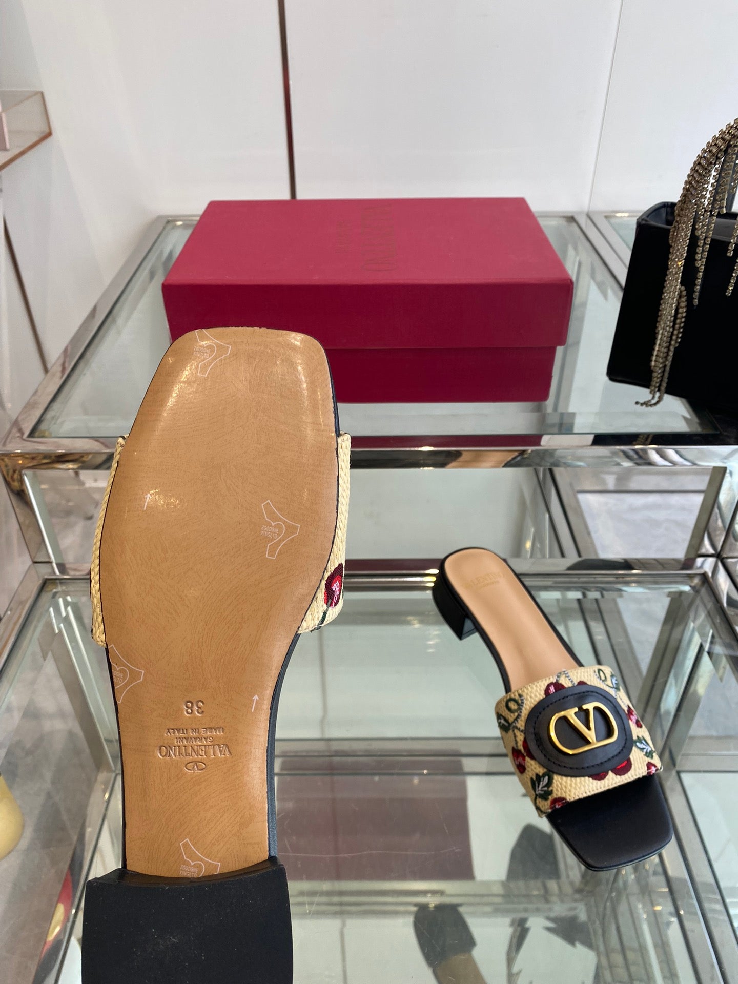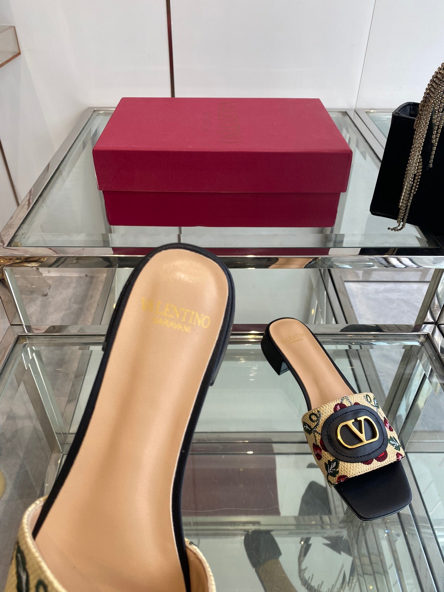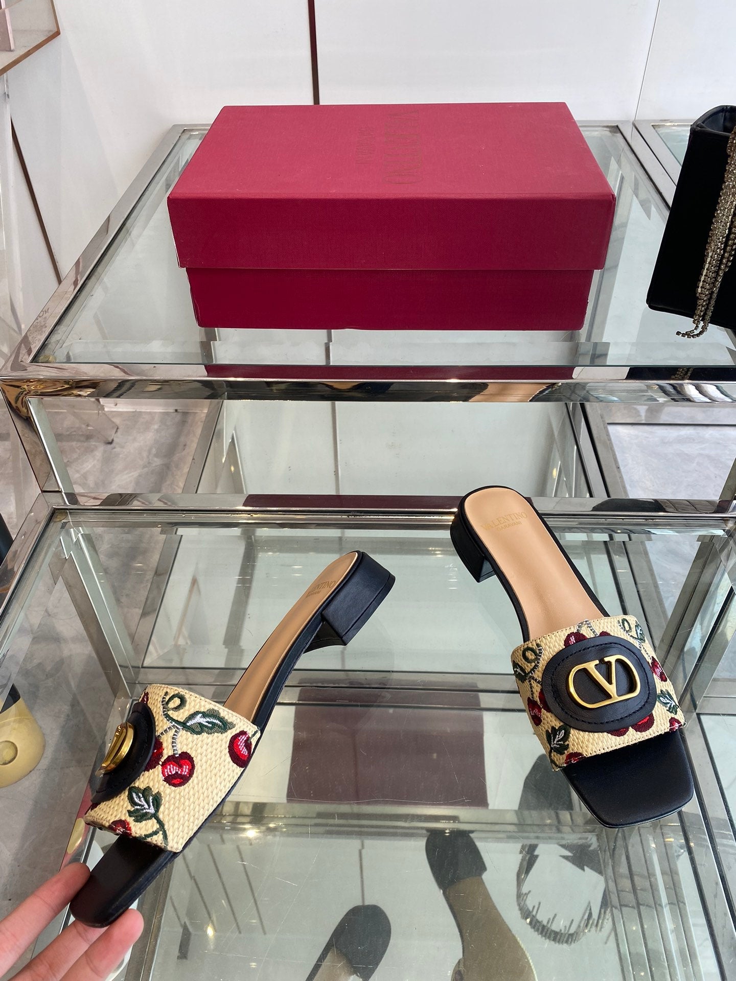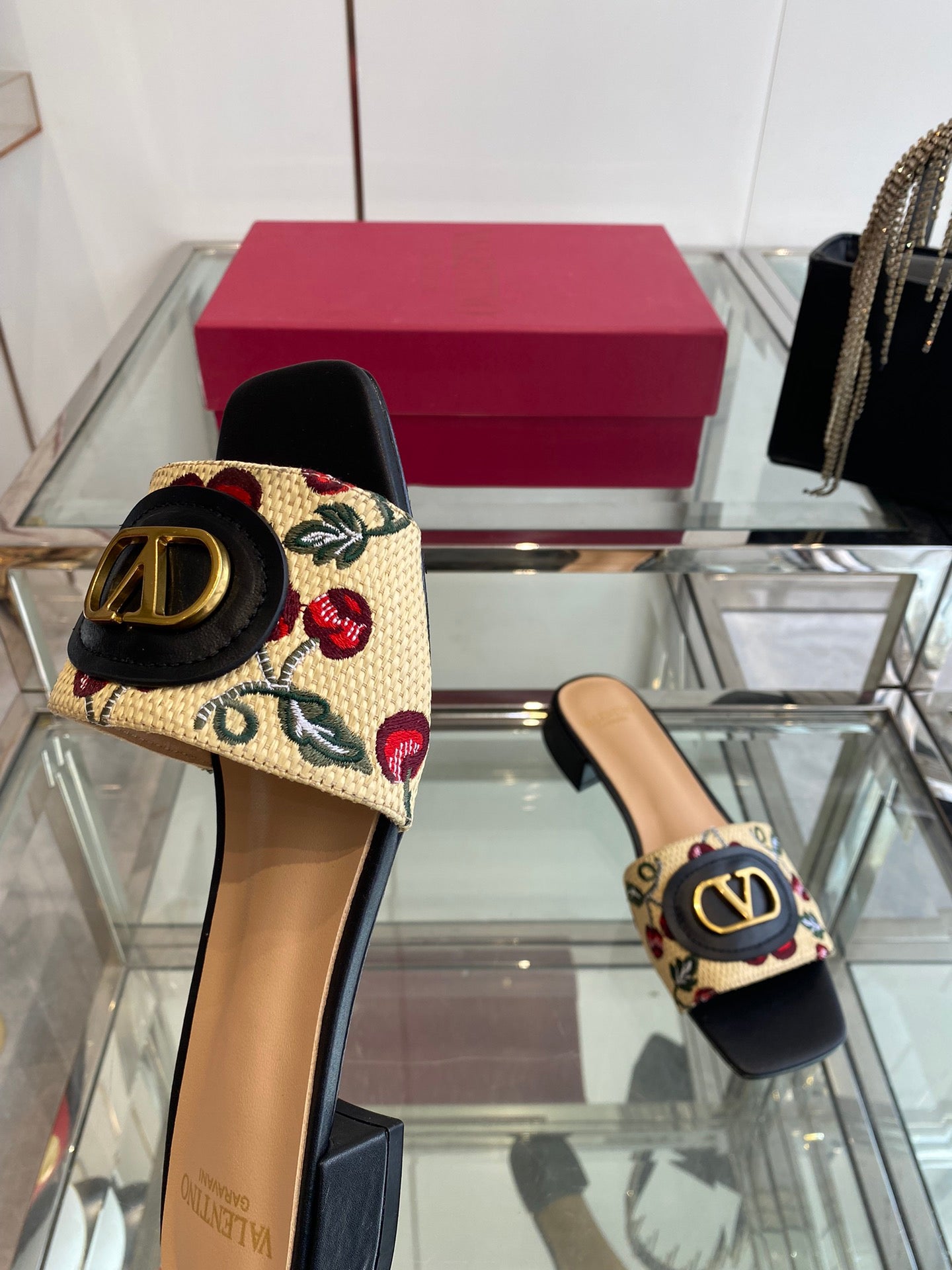 VLTN HIGH HEEL 25S 30 MM IN BEIGE FABRIC AND BLACK LAMBSKIN WITH EMBROIDERED CHERRY MOTIF