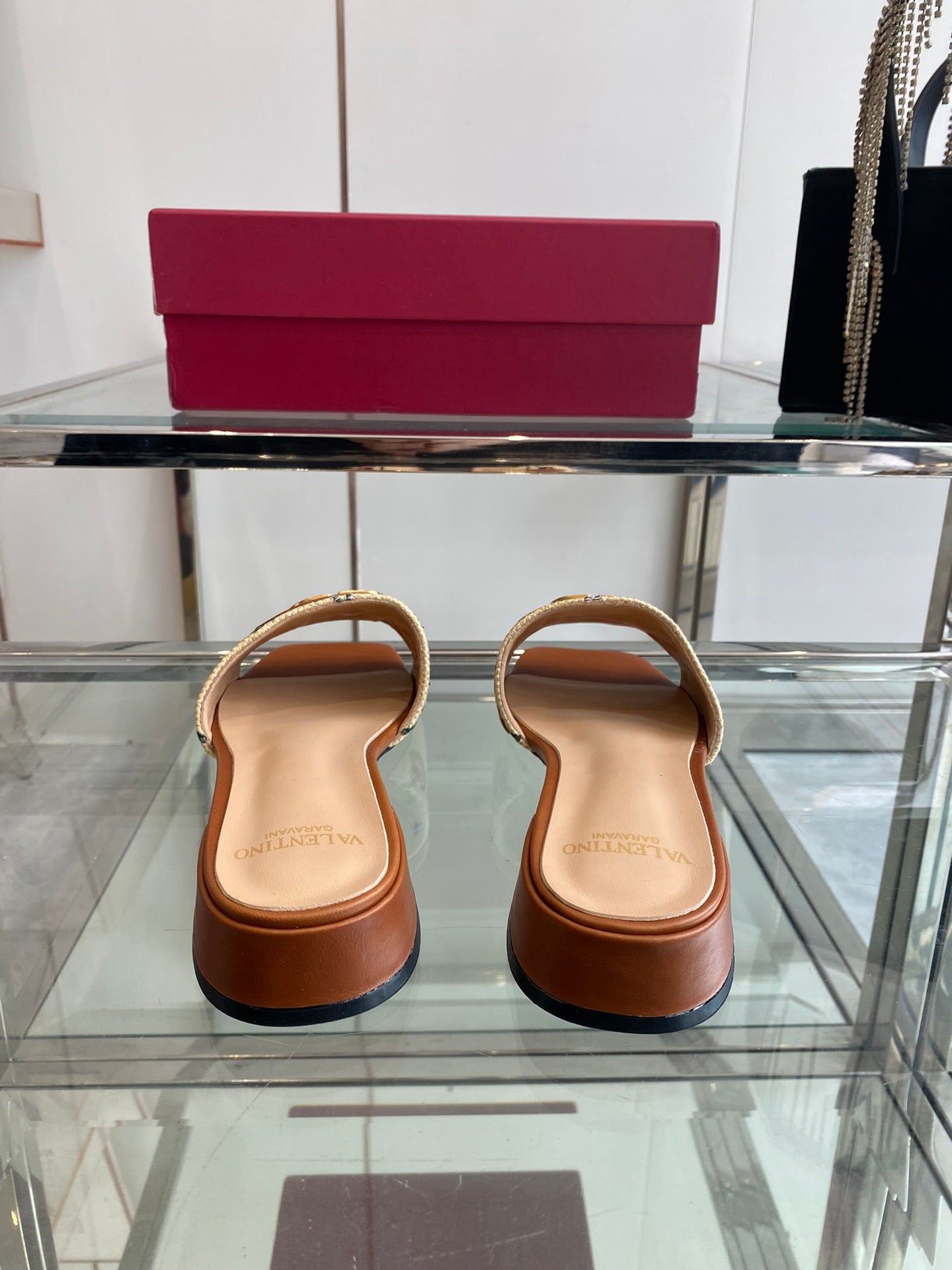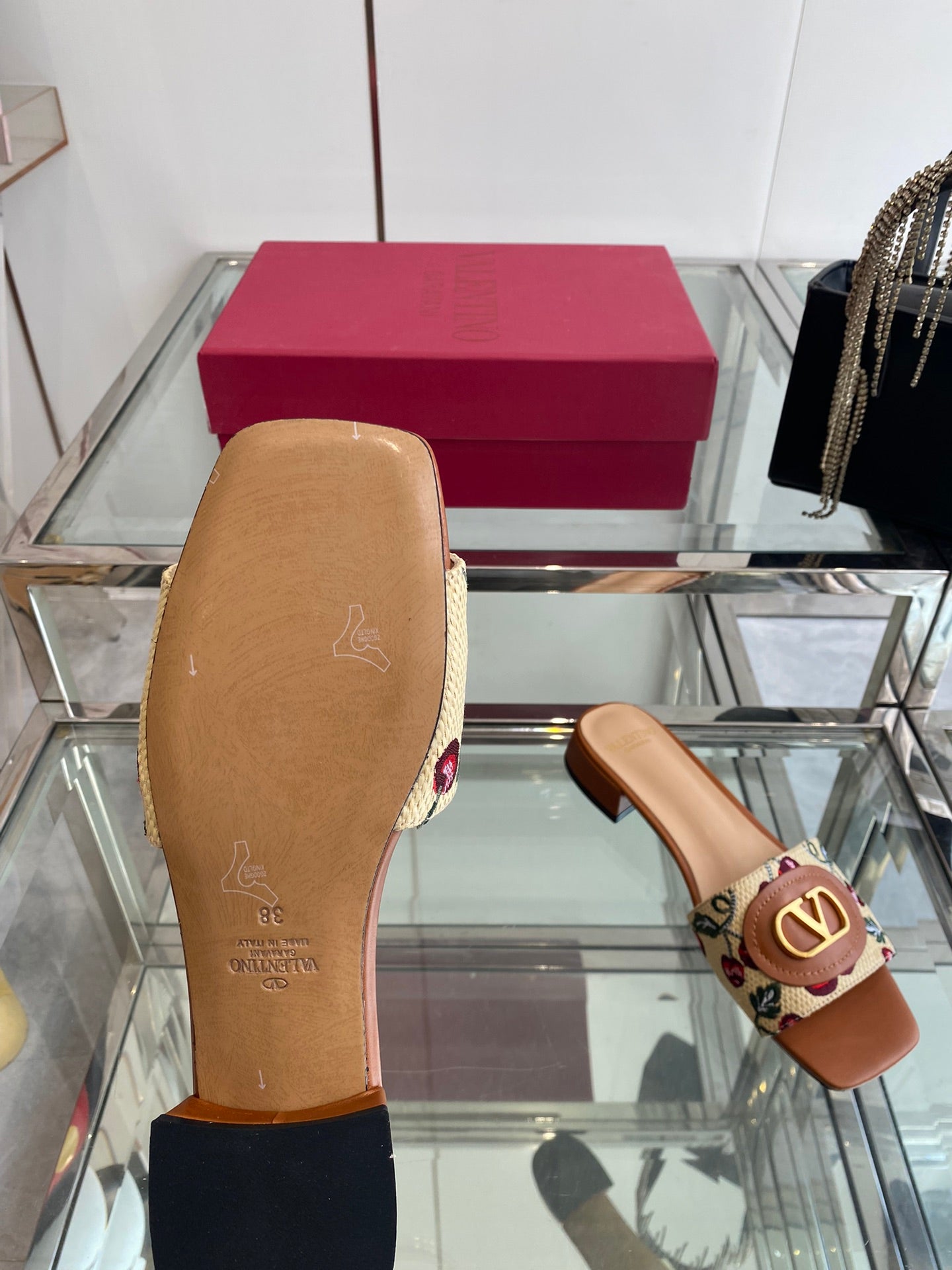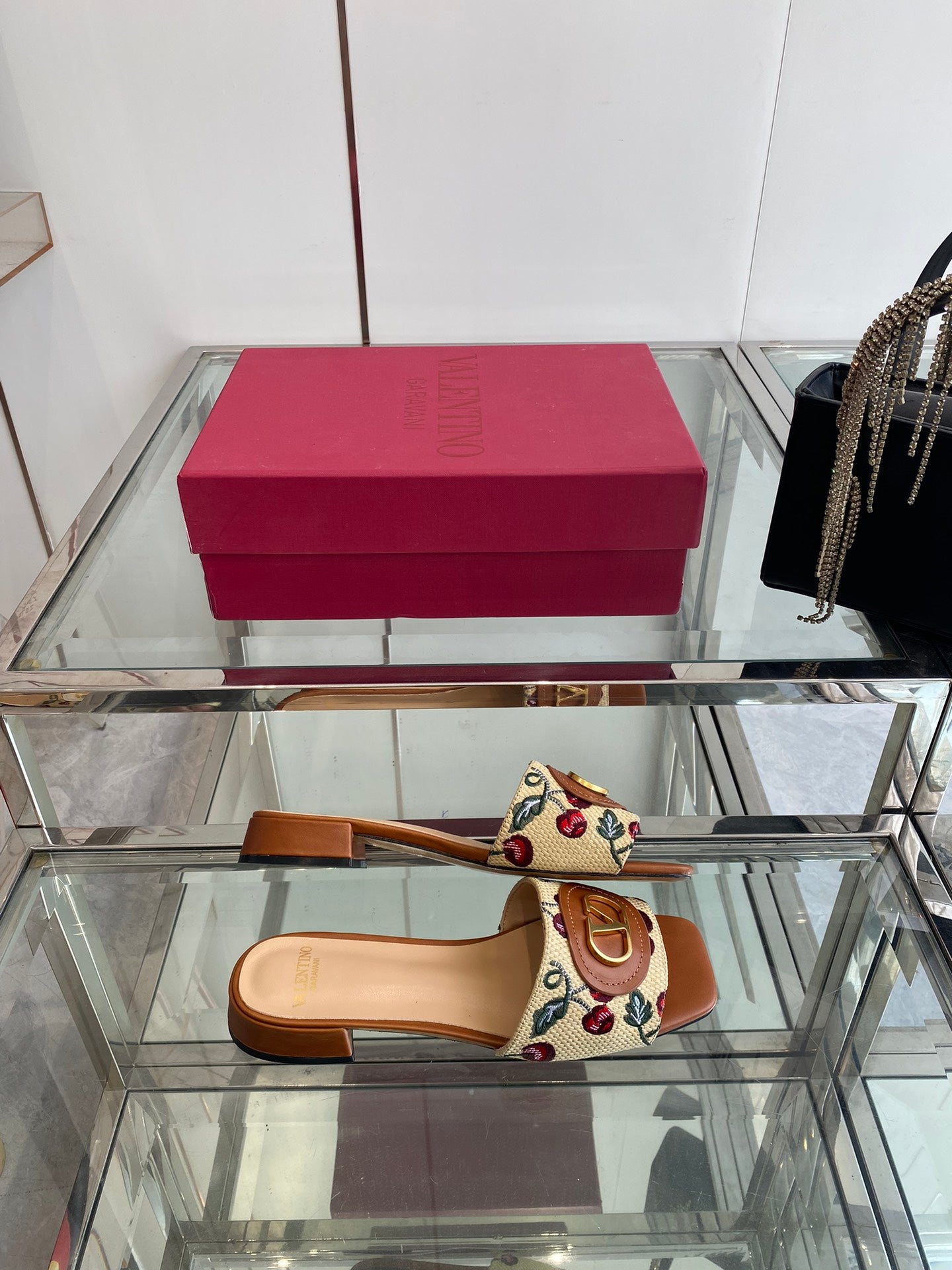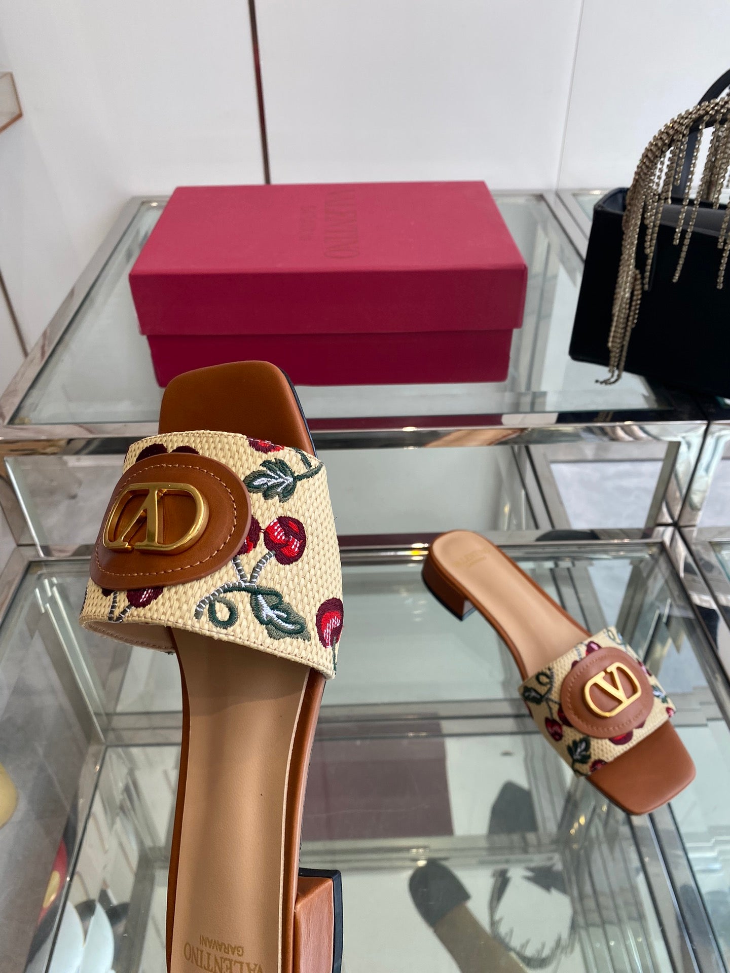 VLTN HIGH HEEL 25S 30 MM IN BEIGE FABRIC AND BROWN LAMBSKIN WITH EMBROIDERED CHERRY MOTIF
