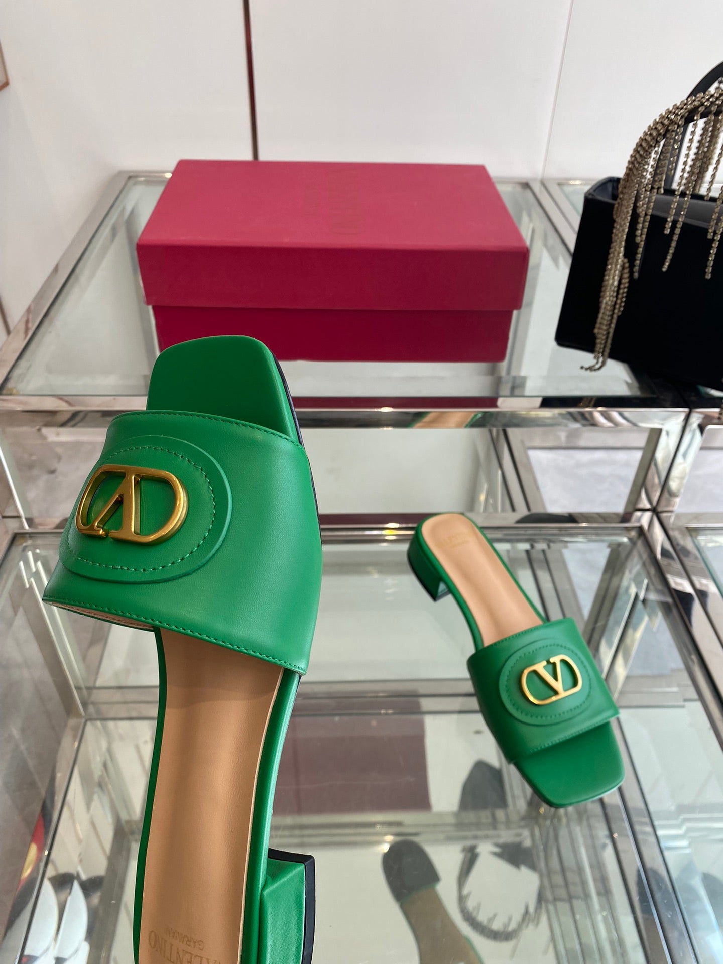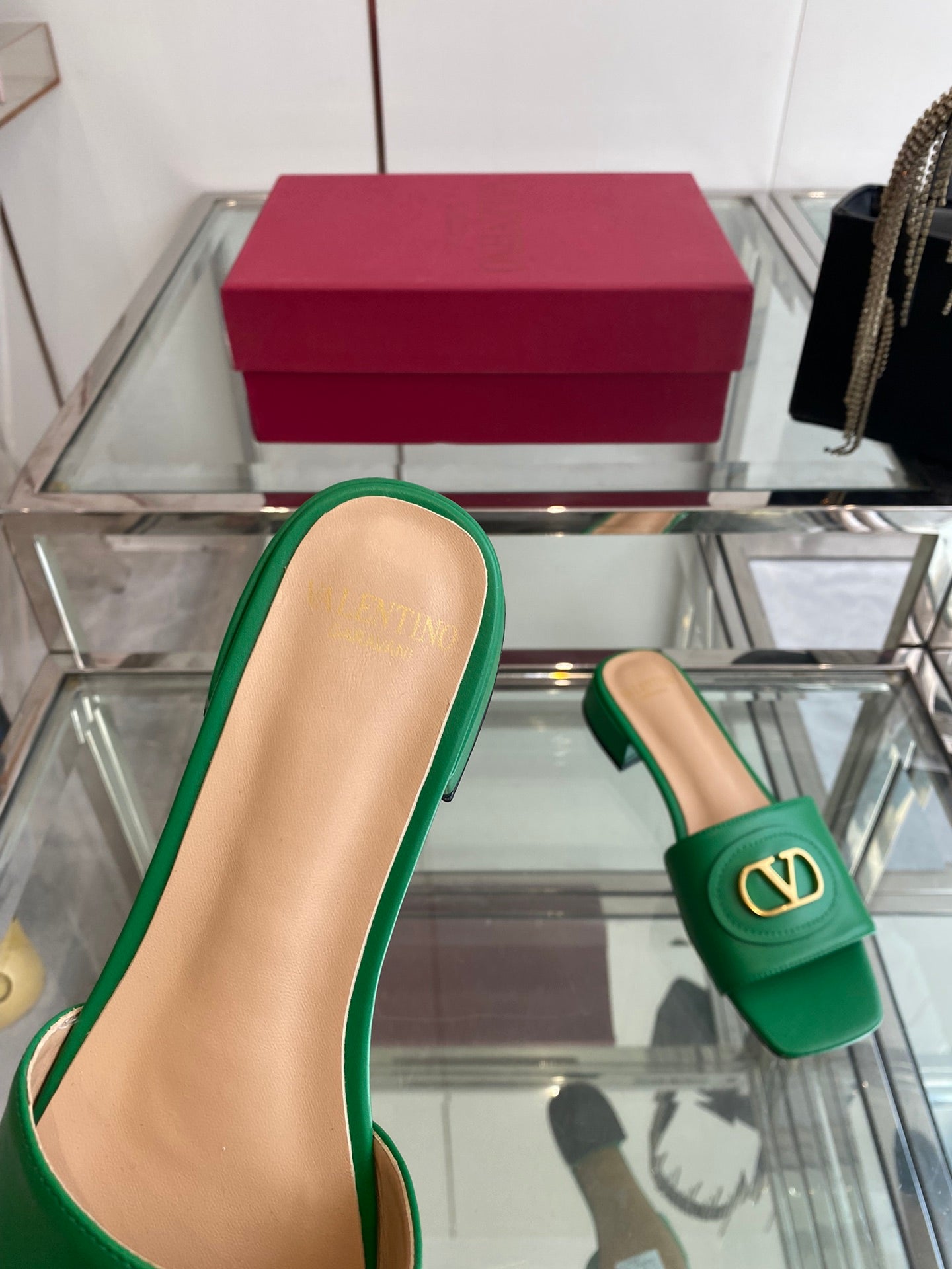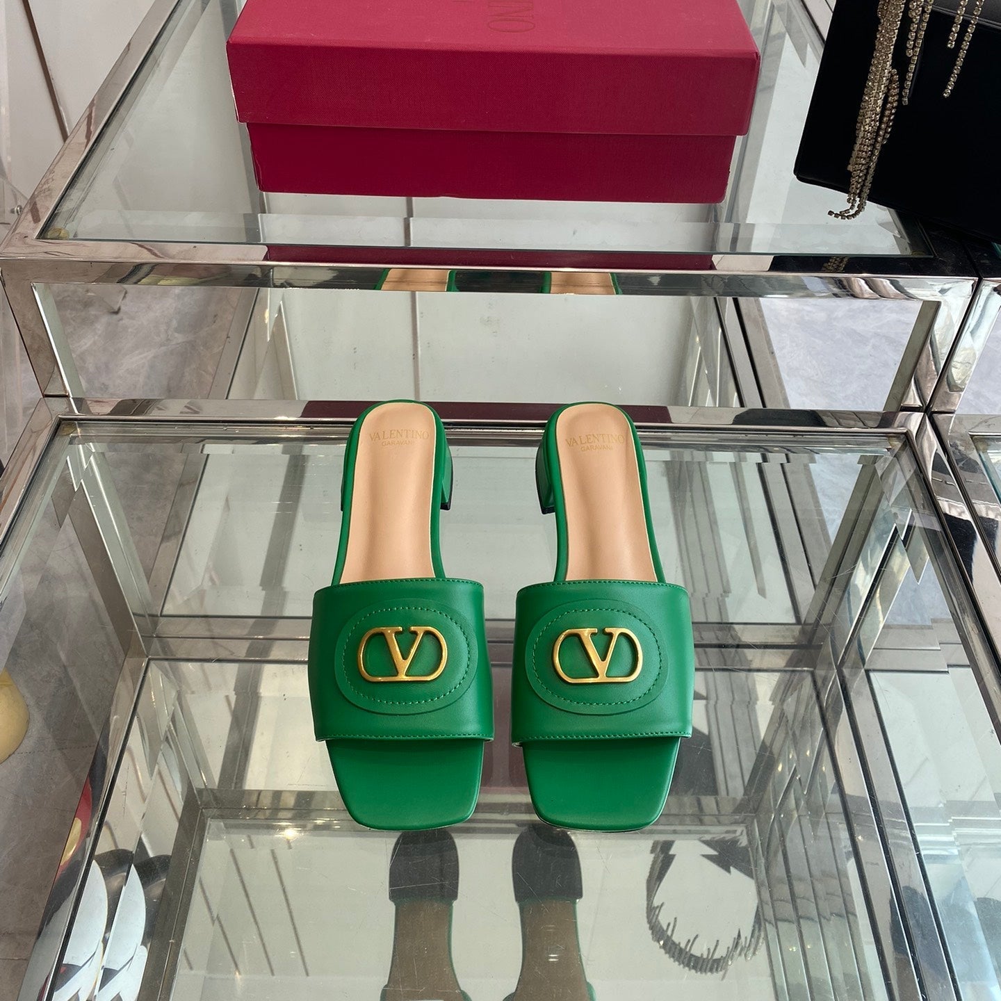 VLTN HIGH HEEL 25S 30 MM IN GREEN LAMBSKIN WITH GOLD HARDWARE